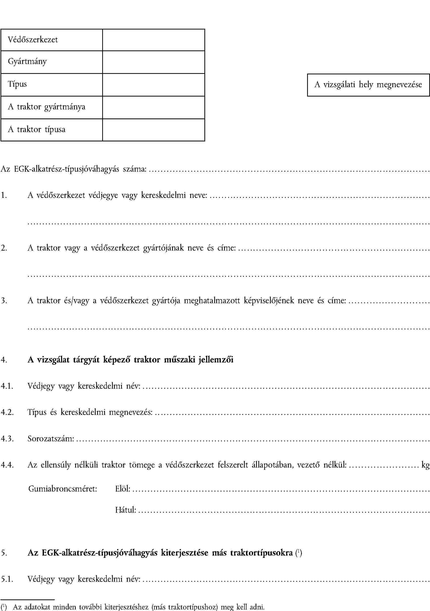 5.2. a védőszerkezetet arra a traktorra tervezték, amelyre az EGK-típusjóváhagyás kiterjesztését kérik;