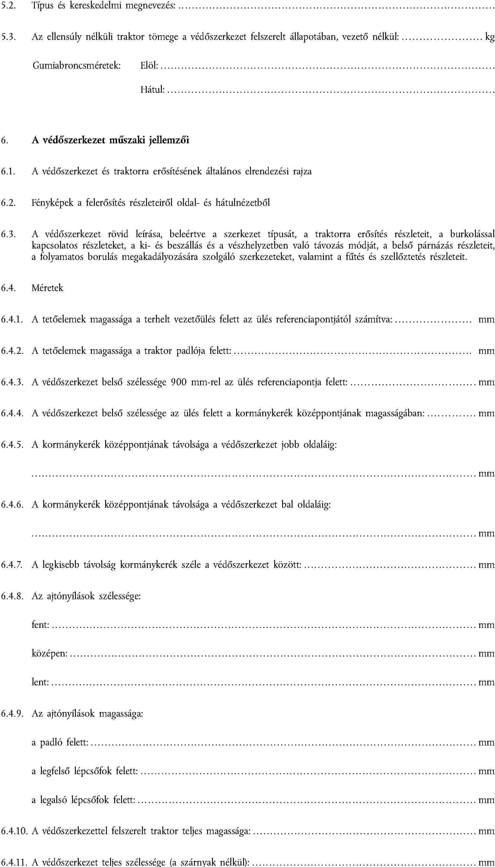 5.3. a védőszerkezet traktorra erősítése megfelel annak, amelyet az EGK-alkatrész-típusjóváhagyás megadásakor vizsgáltak.