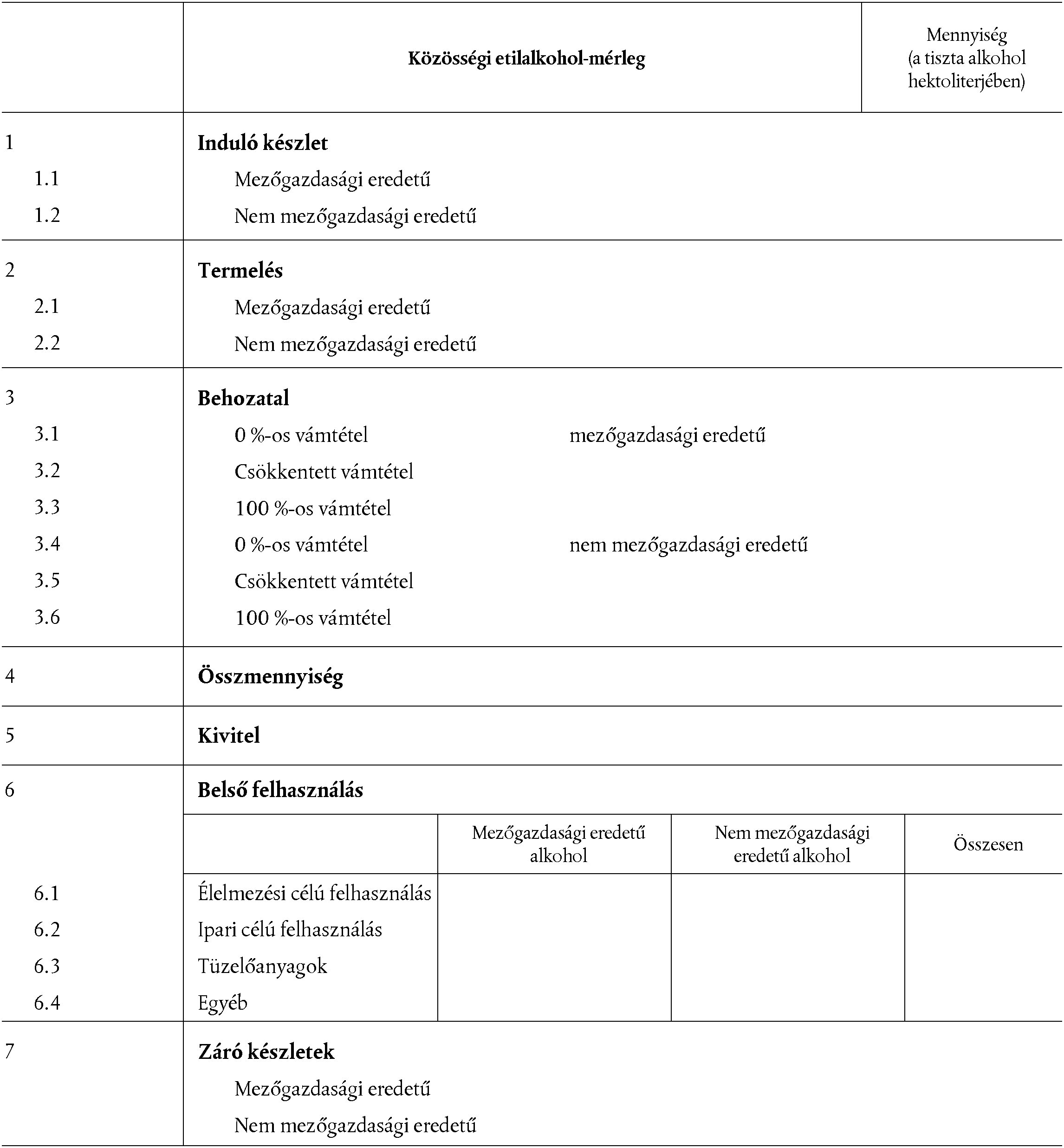 A közölt adatokat a tiszta alkohol hektoliterjében kell kifejezni.