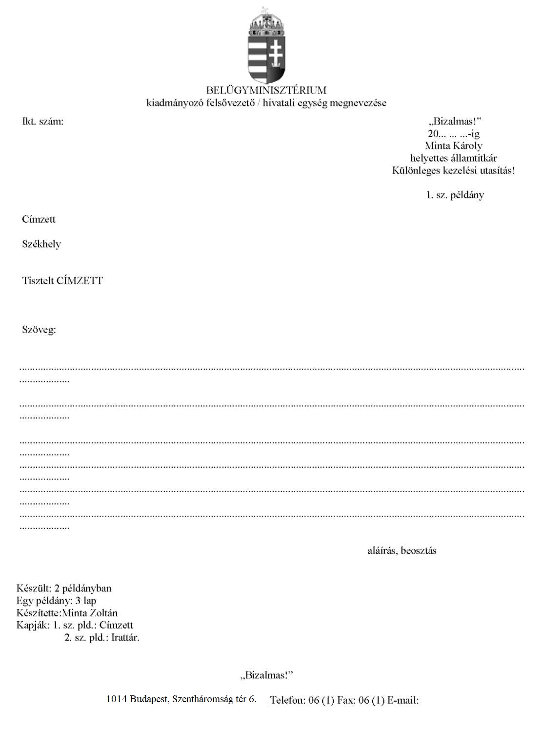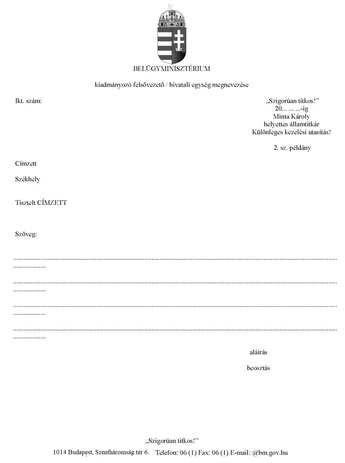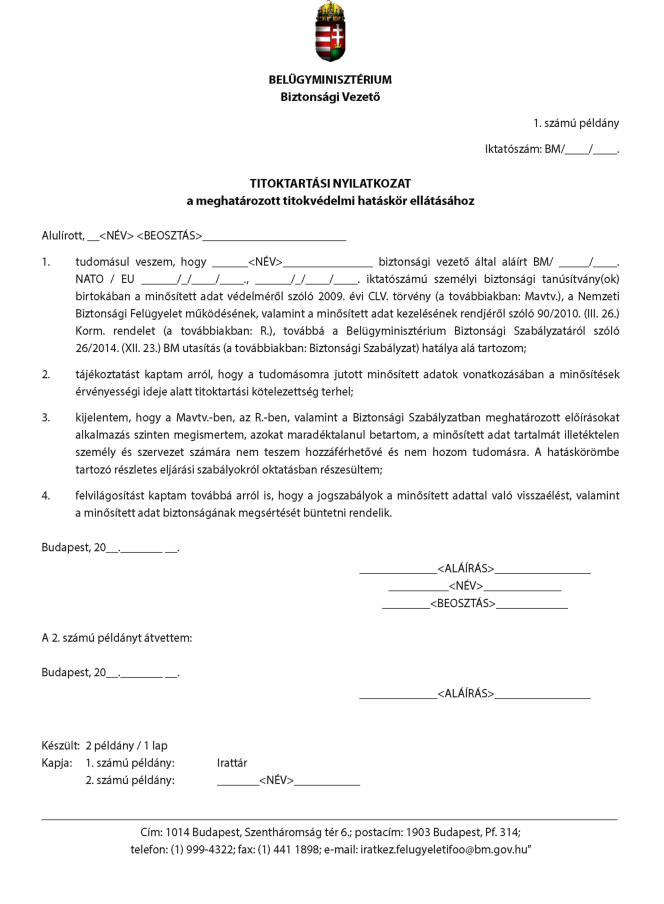 1: Az iktatószámot az Iratkezelési és Iratfelügyeleti Főosztály tölti ki.