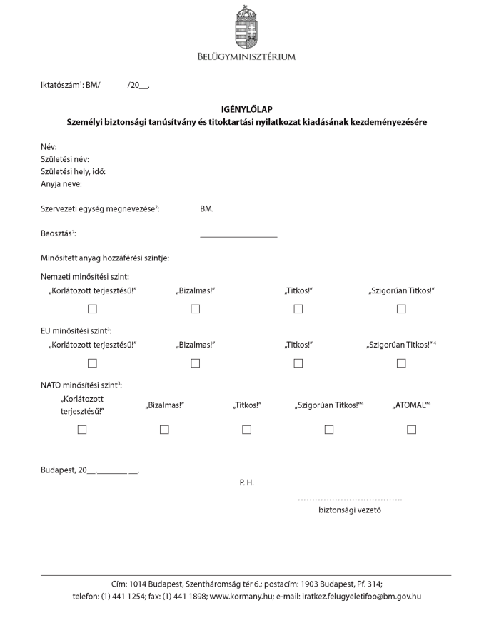 2: EU, NATO személyi biztonsági tanúsítvány igénylése esetén az angol megnevezés is szükséges.
