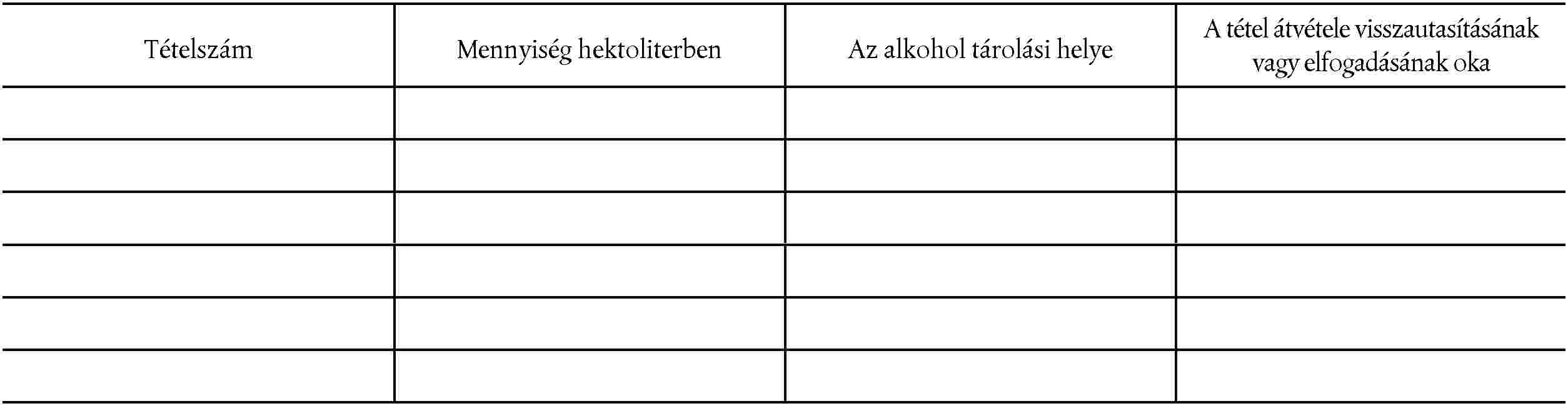 Értesítés tételek visszautasításáról vagy elfogadásáról a boralkohol exportjára vonatkozó versenytárgyalási eljárásokkal kapcsolatban