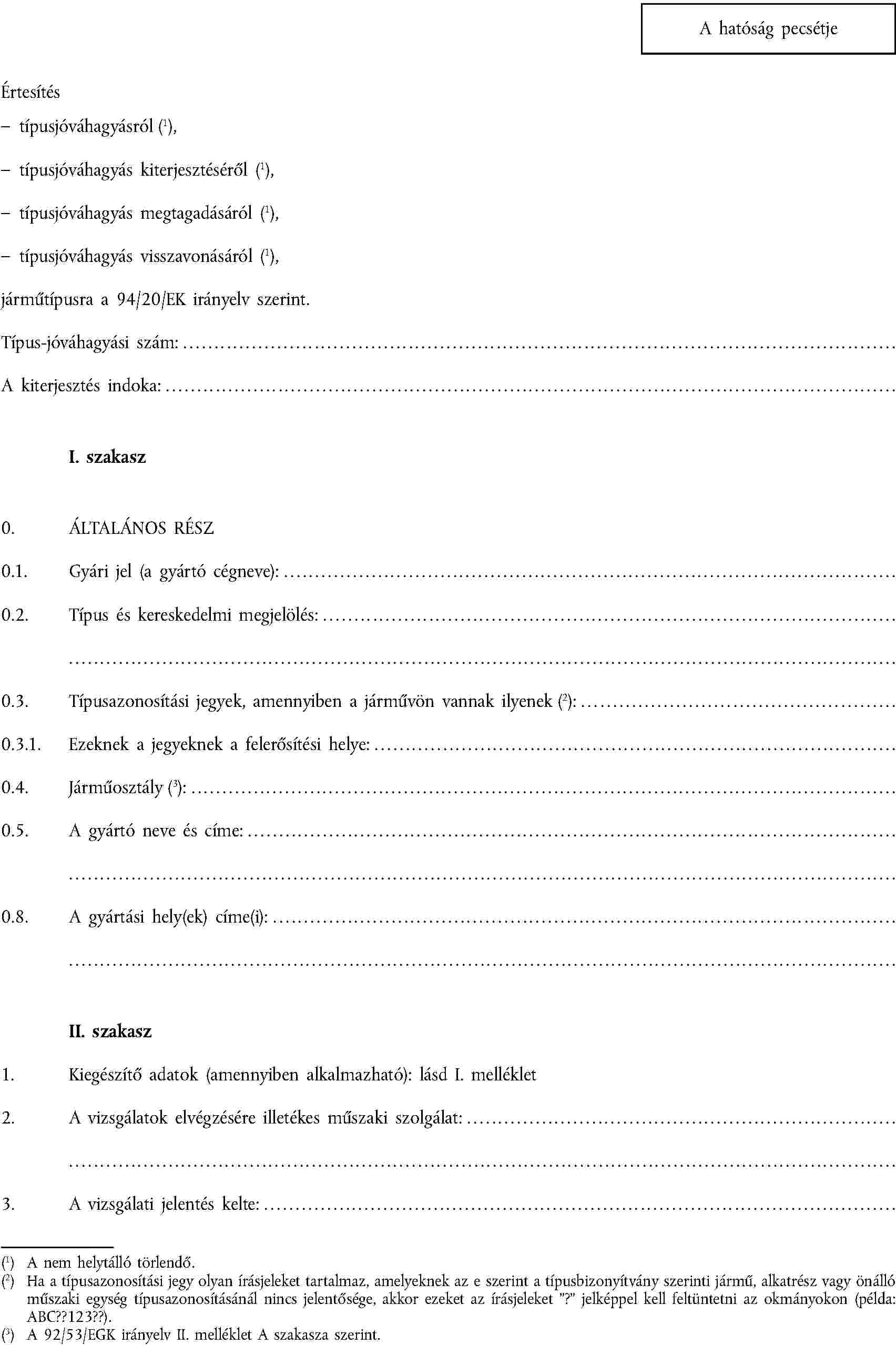 I. MELLÉKLET | Hatály, fogalommeghatározások, az EGK-típusjóváhagyás kérelmezése és megadása, az engedély kiterjesztése, megfelelő gyártás |