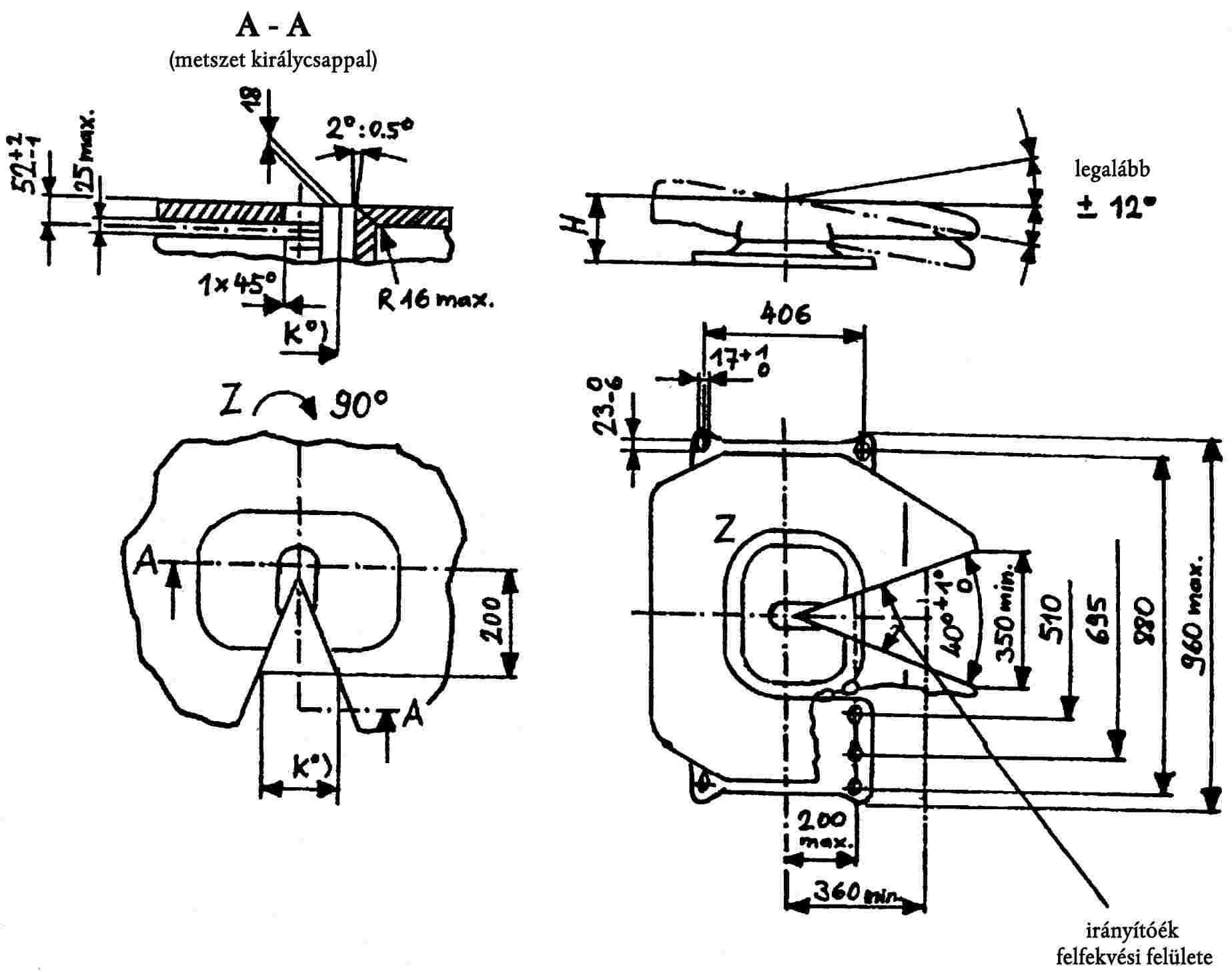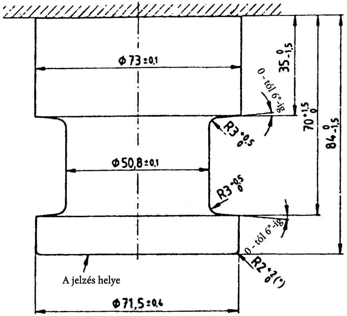 Az erő hatásvonalának keresztül kell mennie a H 50 osztályú 50,8 mm átmérőjű királycsap hengeres részének (legkisebb átmérő) a középpontján (lásd V. melléklet 16. ábra).
