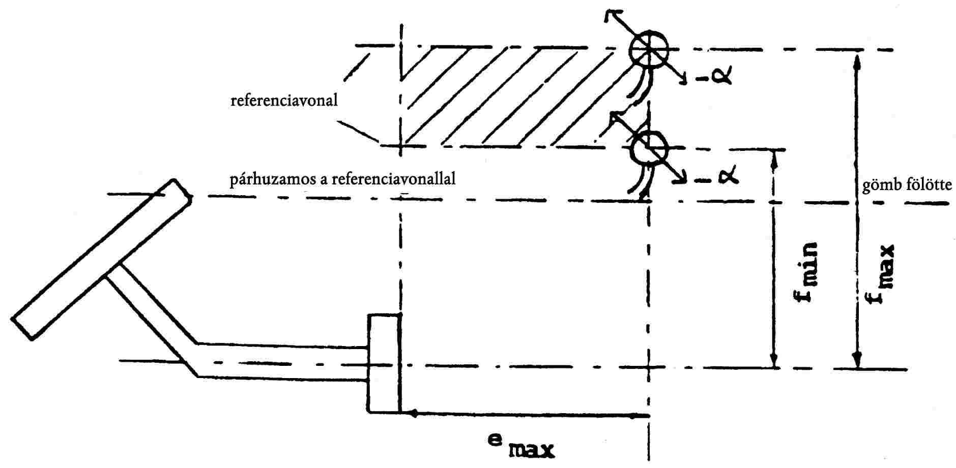 b) függőlegesen α = 10°-kal elbillent felfelé vagy lefelé (lásd 30. ábra),