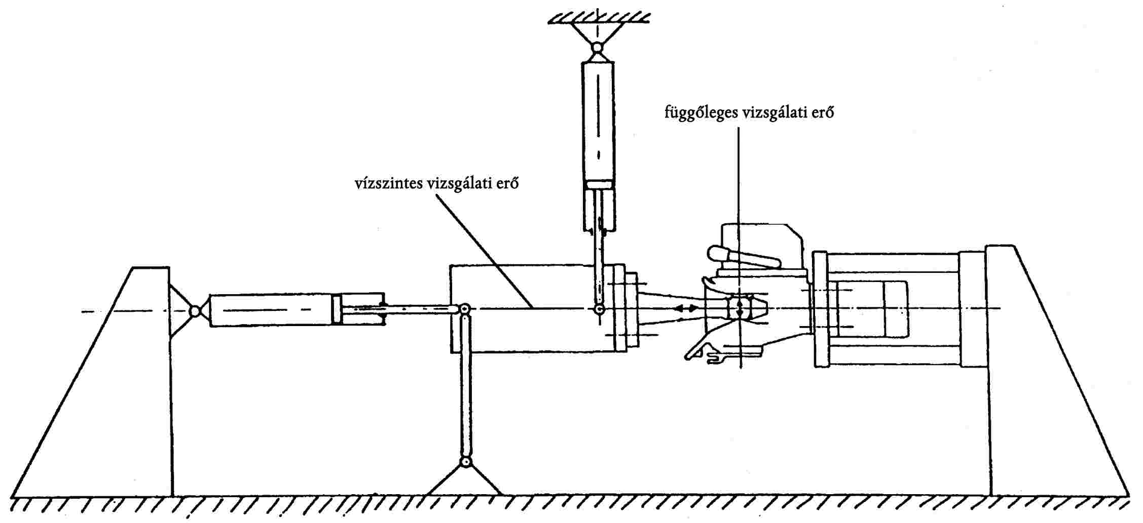 4.8.1. A vizsgálati mintán váltakozó igénybevételű dinamikai vizsgálat elvégzésére kerül sor egy vizsgálópadon. A királycsap vizsgálatának nem szabad a nyerges vonószerkezet vizsgálatával együtt történnie. A vizsgálatot úgy kell elvégezni, hogy a terhelés azokra a rögzítőelemekre is hasson, amelyek a királycsapnak a félpótkocsira való rögzítéséhez szükségesek.