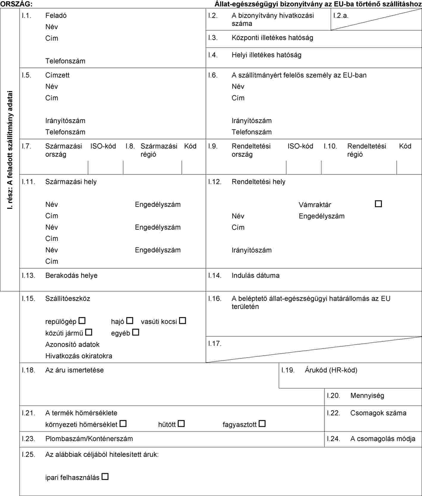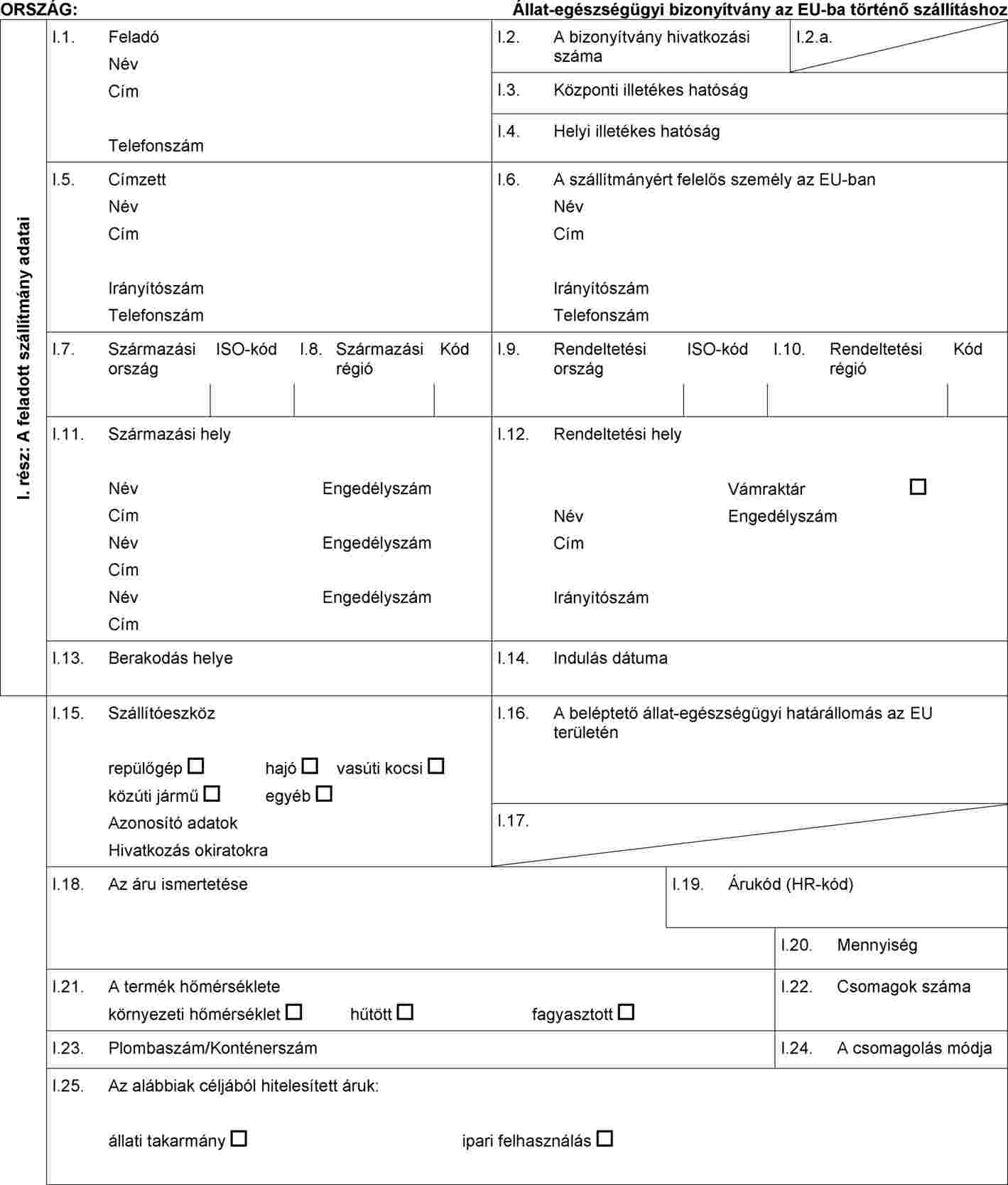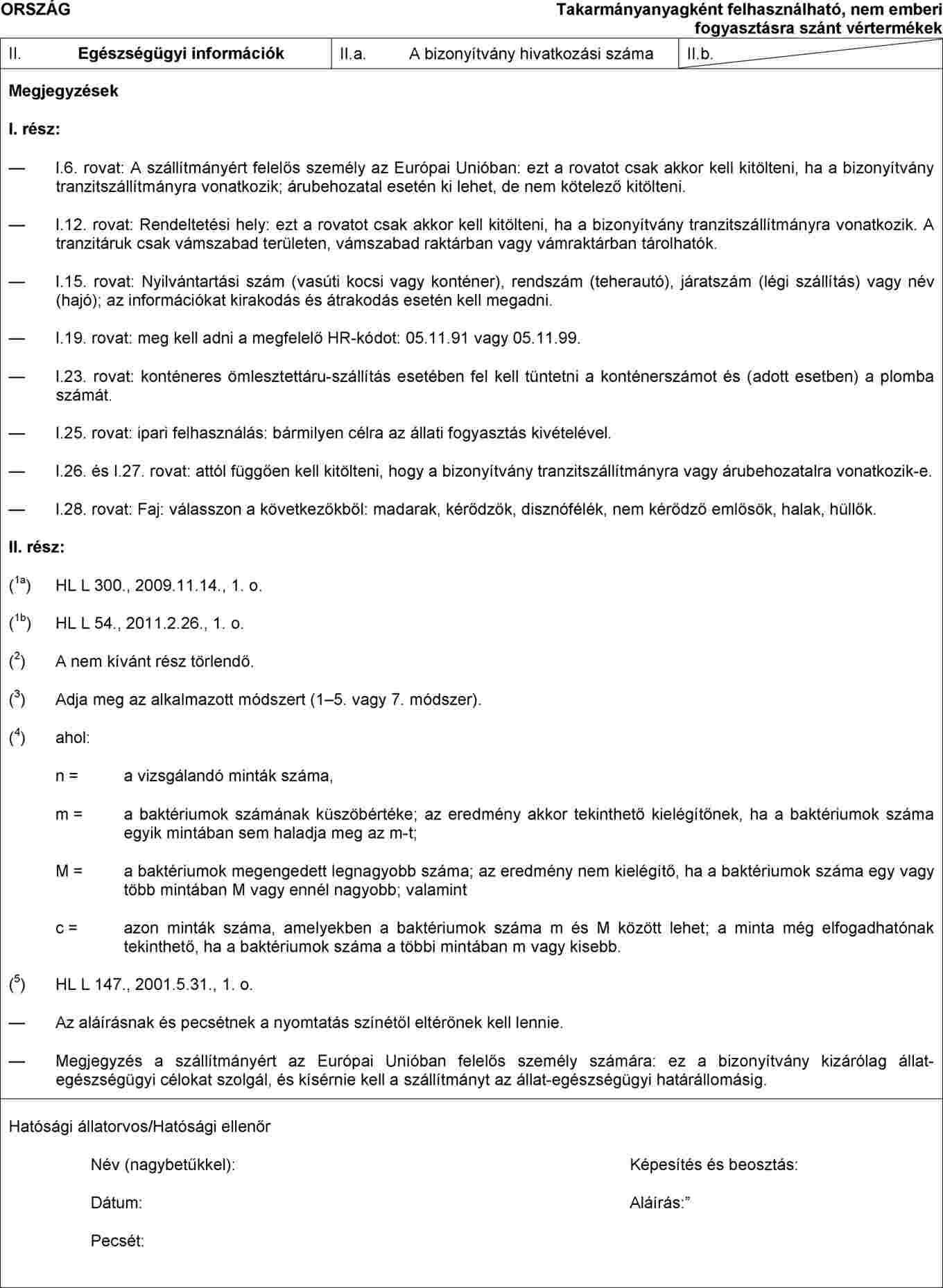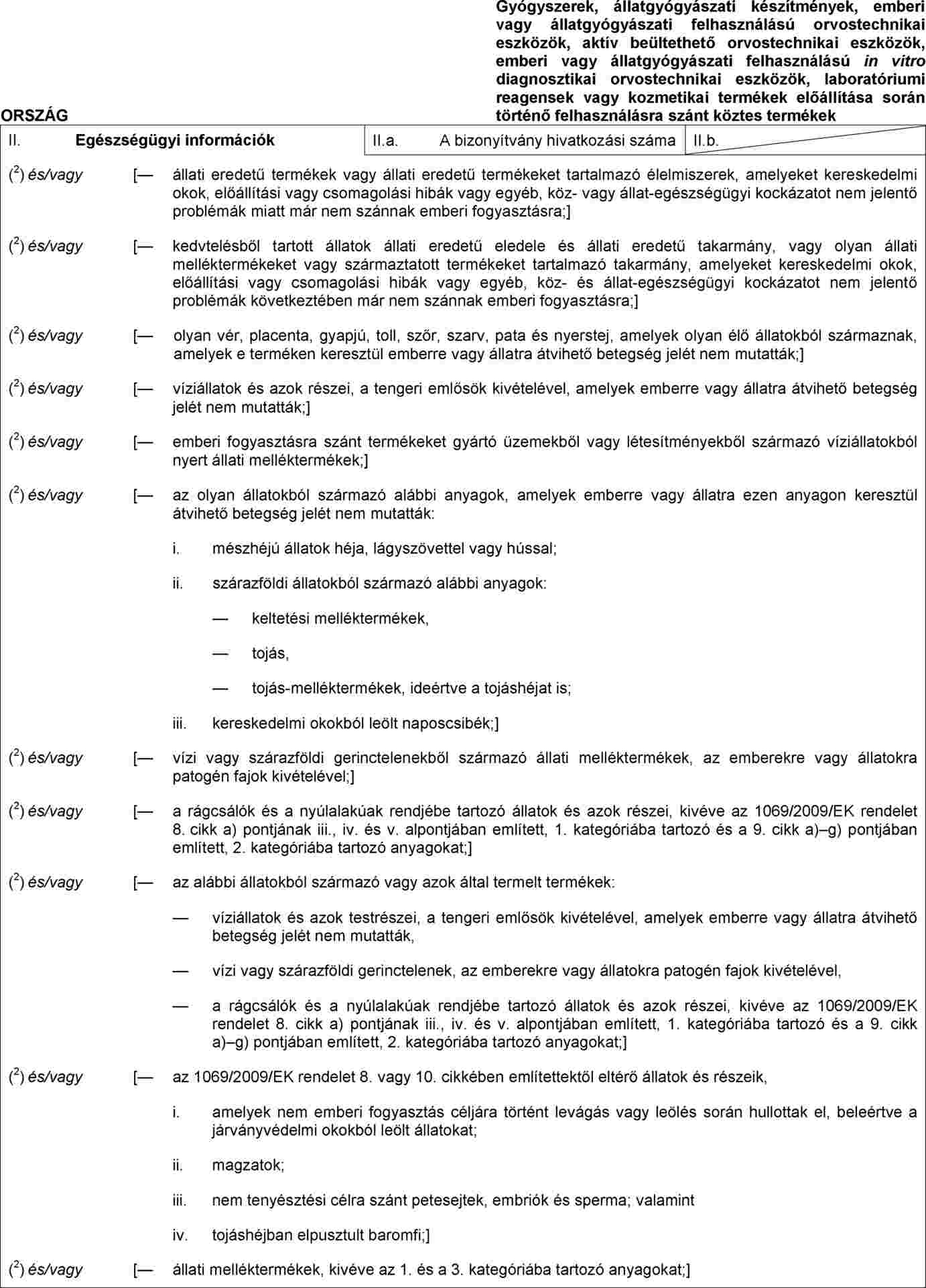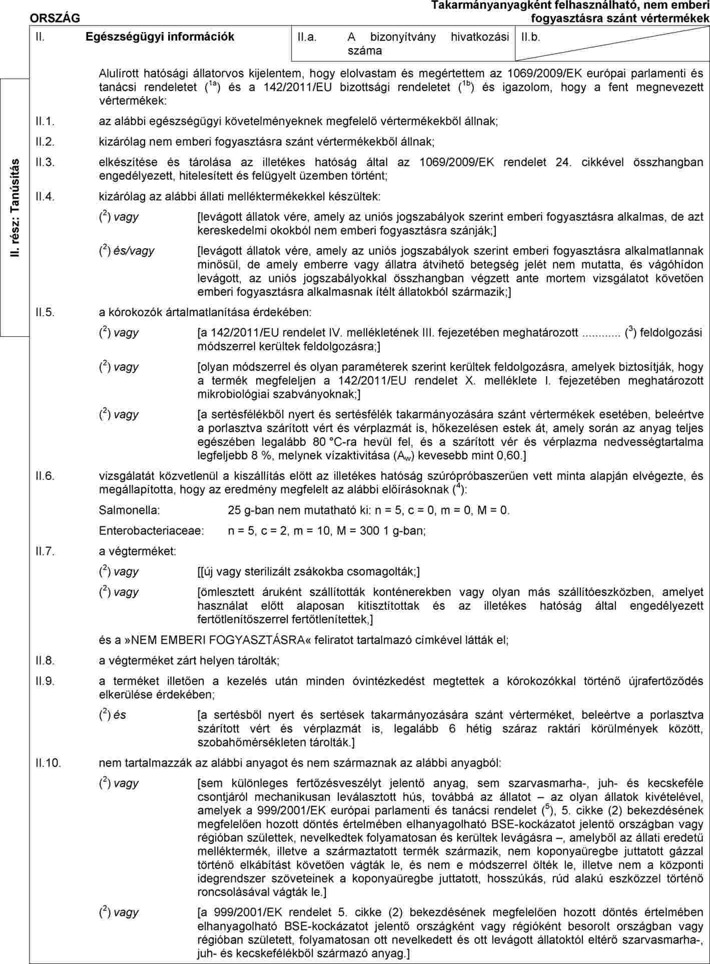 Nem emberi fogyasztásra szánt, takarmányanyagként felhasználható vértermékeknek az Európai Unióba történő szállításához vagy az Európai Unión átmenő tranzitszállításához (2)