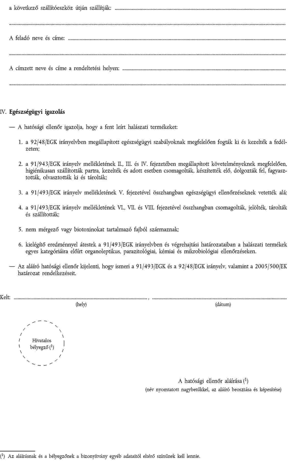 (2) Az egészségügyi bizonyítványt azon tagállam legalább egy hivatalos nyelvén kell kiállítani, ahol az ellenőrzéseket végzik.