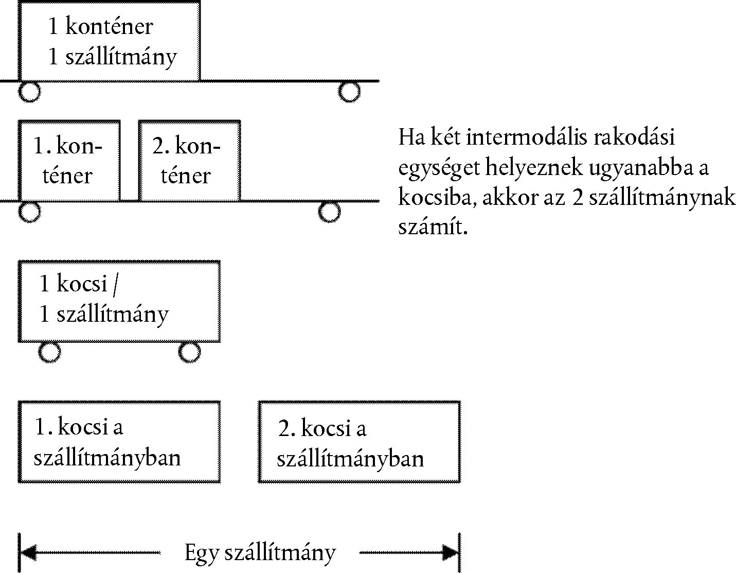 Szállítmány | A feladótól a címzettig továbbított, egy vagy több teljes intermodális rakodási egységbe vagy egy vagy több teljes kocsira rakodott árucsomag. Pl.: [Kép #1] |