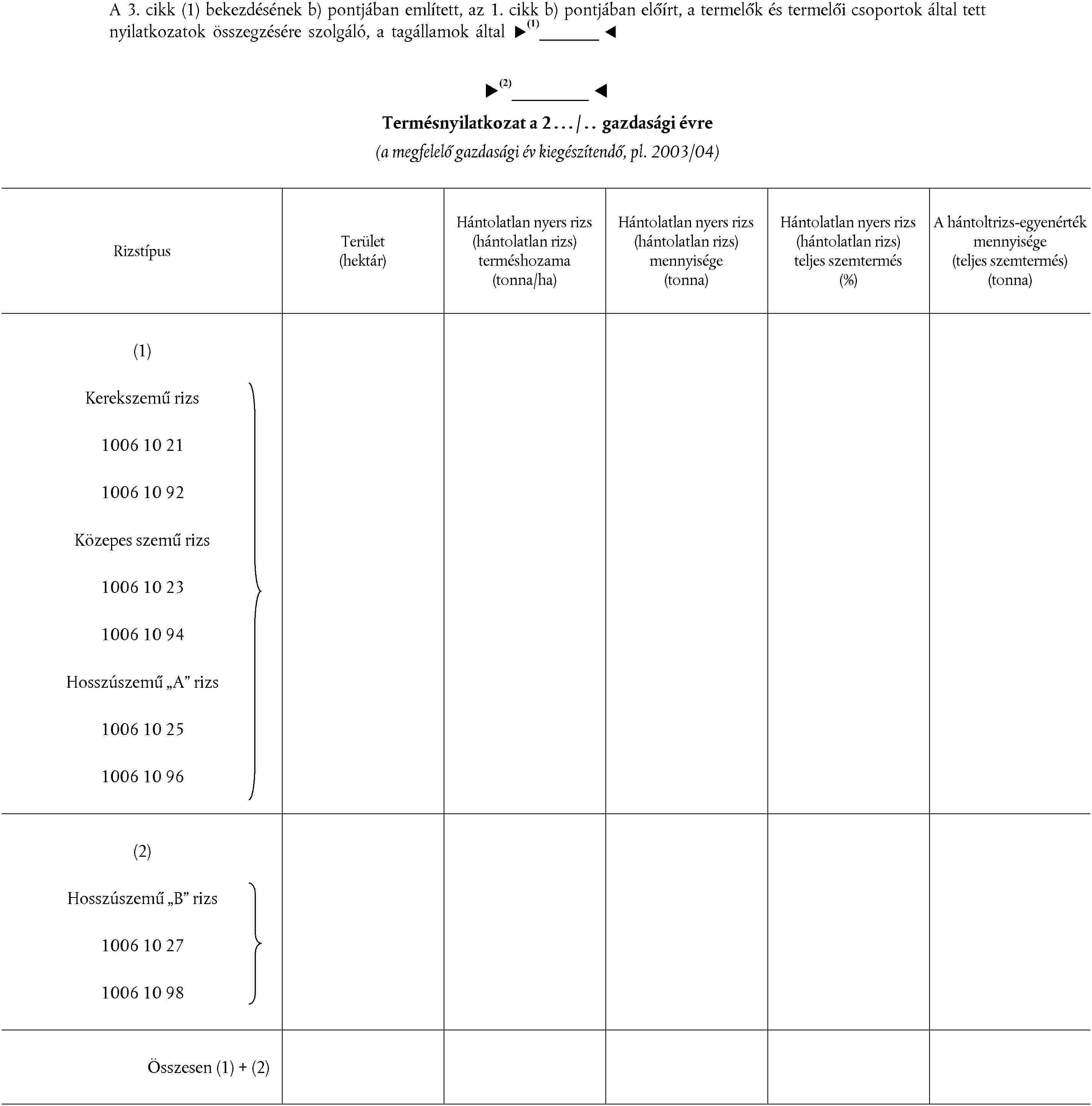 (2) A 3072/95/EK rendelet 6. cikke (5) bekezdésének harmadik albekezdése értelmében a termelőknek termés- és készletnyilatkozatot, valamint a rizshántoló malmoknak készletnyilatkozatot kell készíteniük. E nyilatkozatok alapján a tagállamoknak részletes információval kell ellátniuk a Bizottságot.