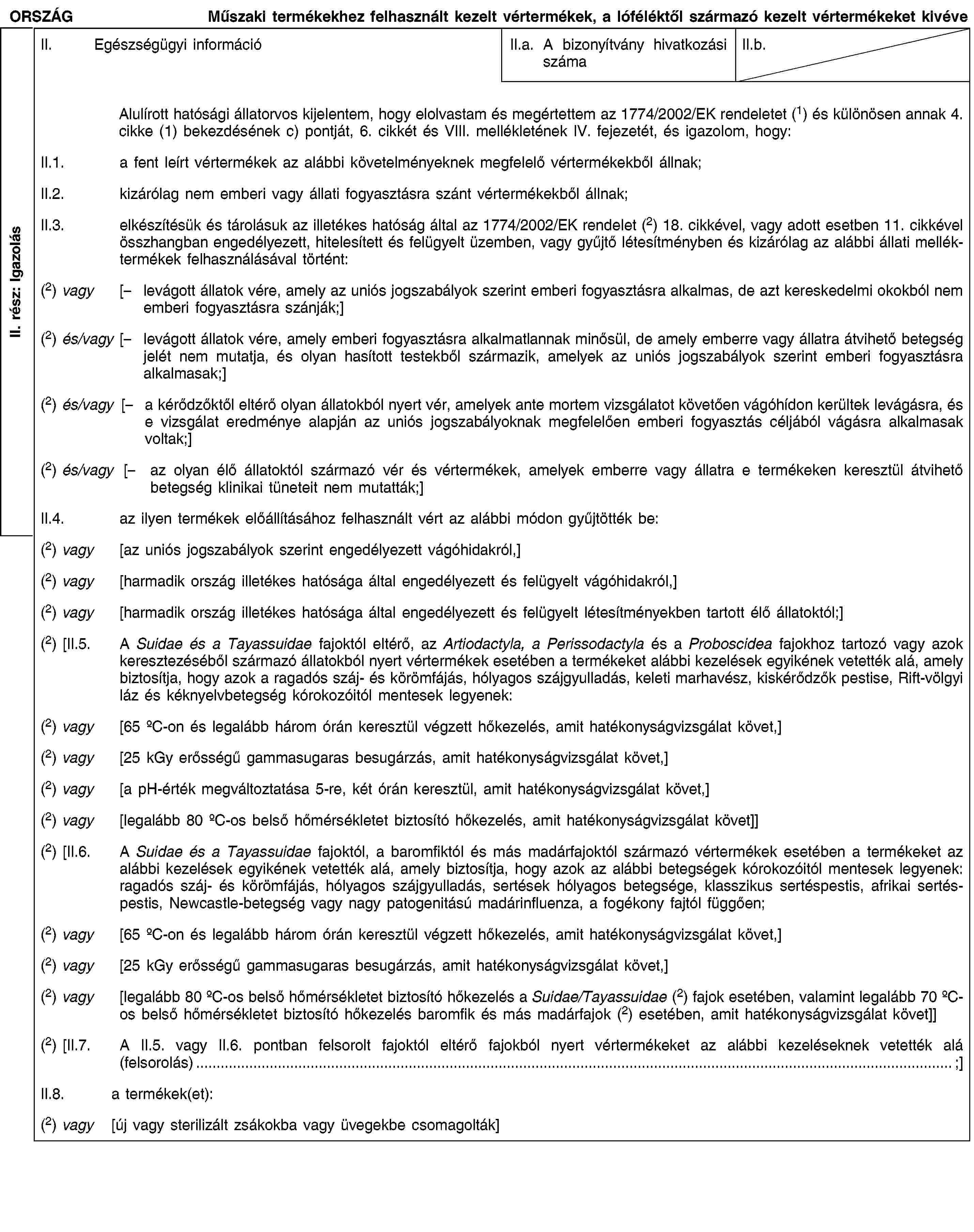 B. Kezelt vértermékek: a 206/2010/EU rendelet II. mellékletének 1. részében felsorolt azon harmadik országok, amelyekből a tagállamok a háziló-félék friss húsának behozatalát engedélyezik.