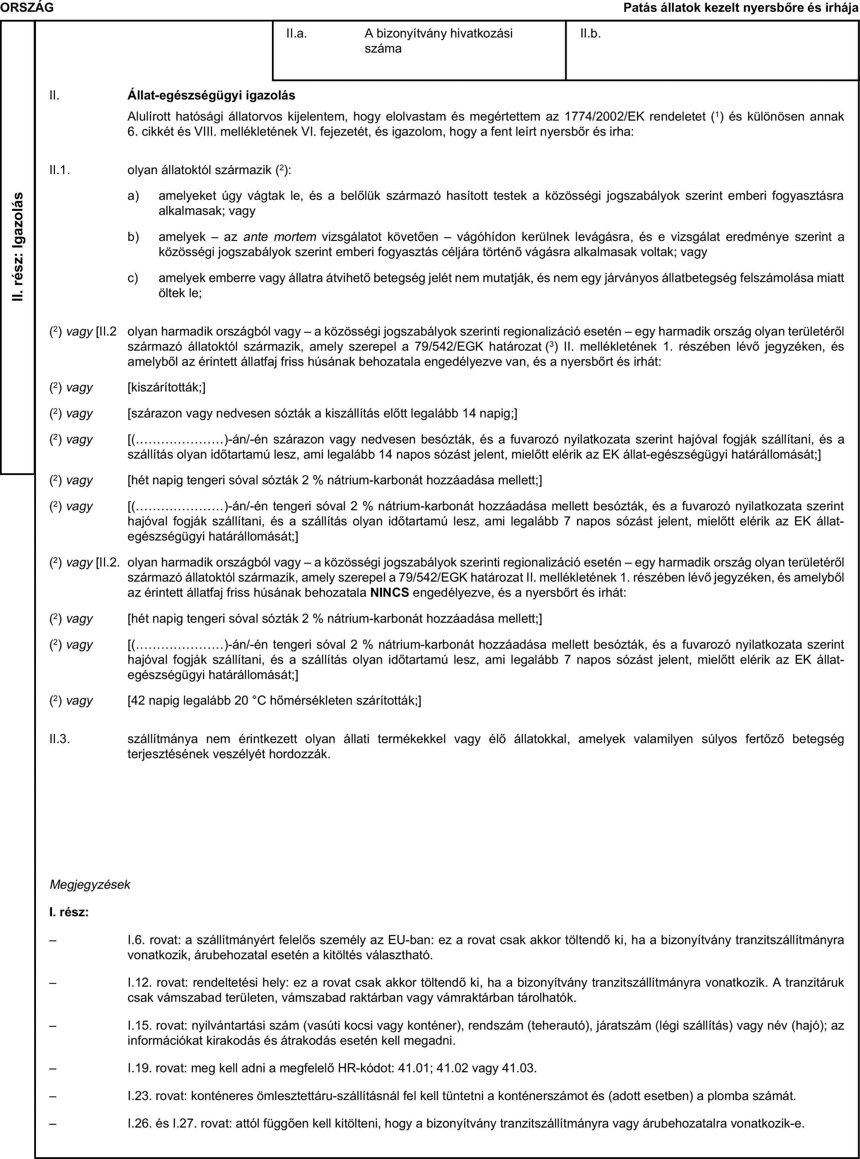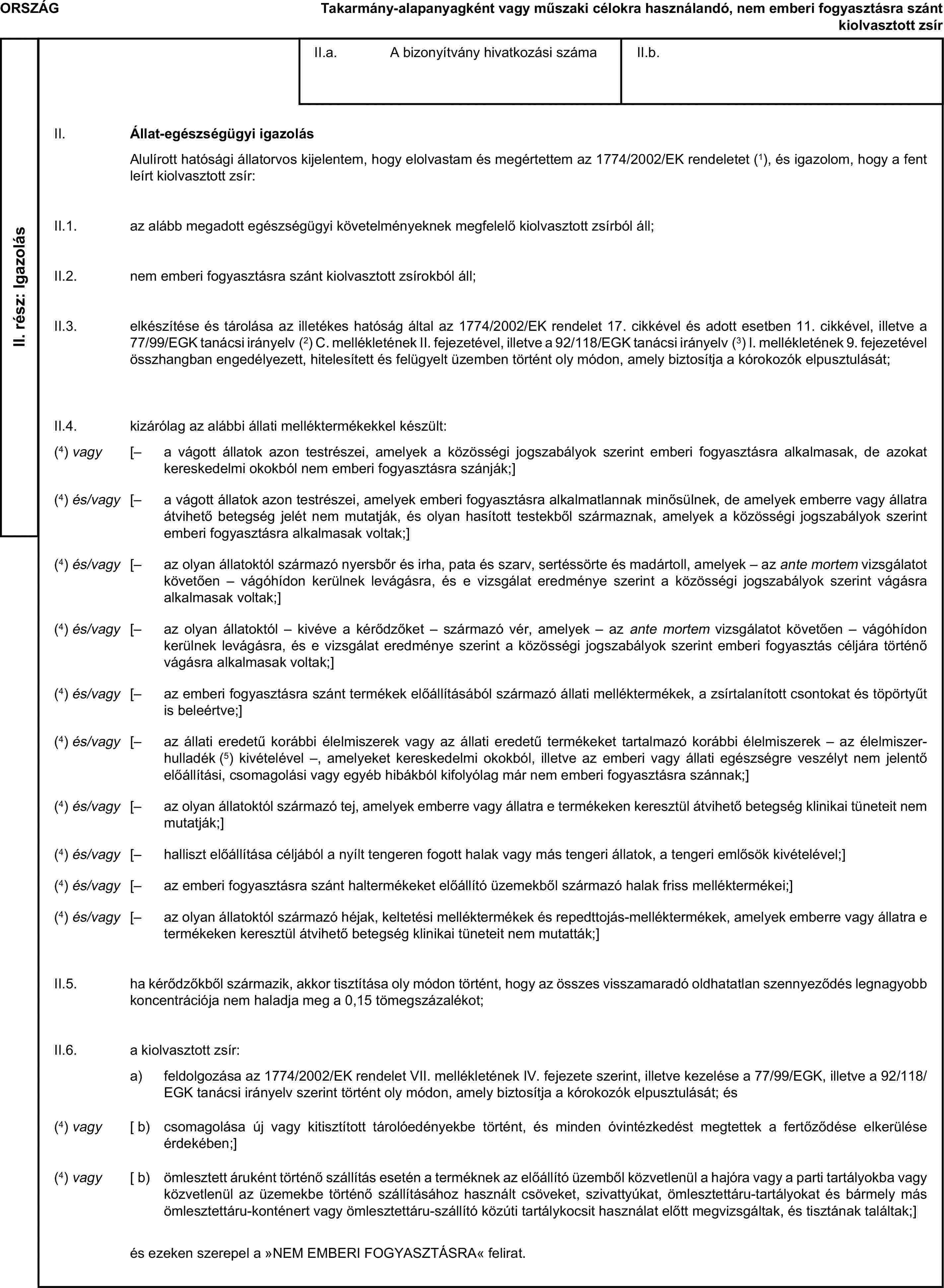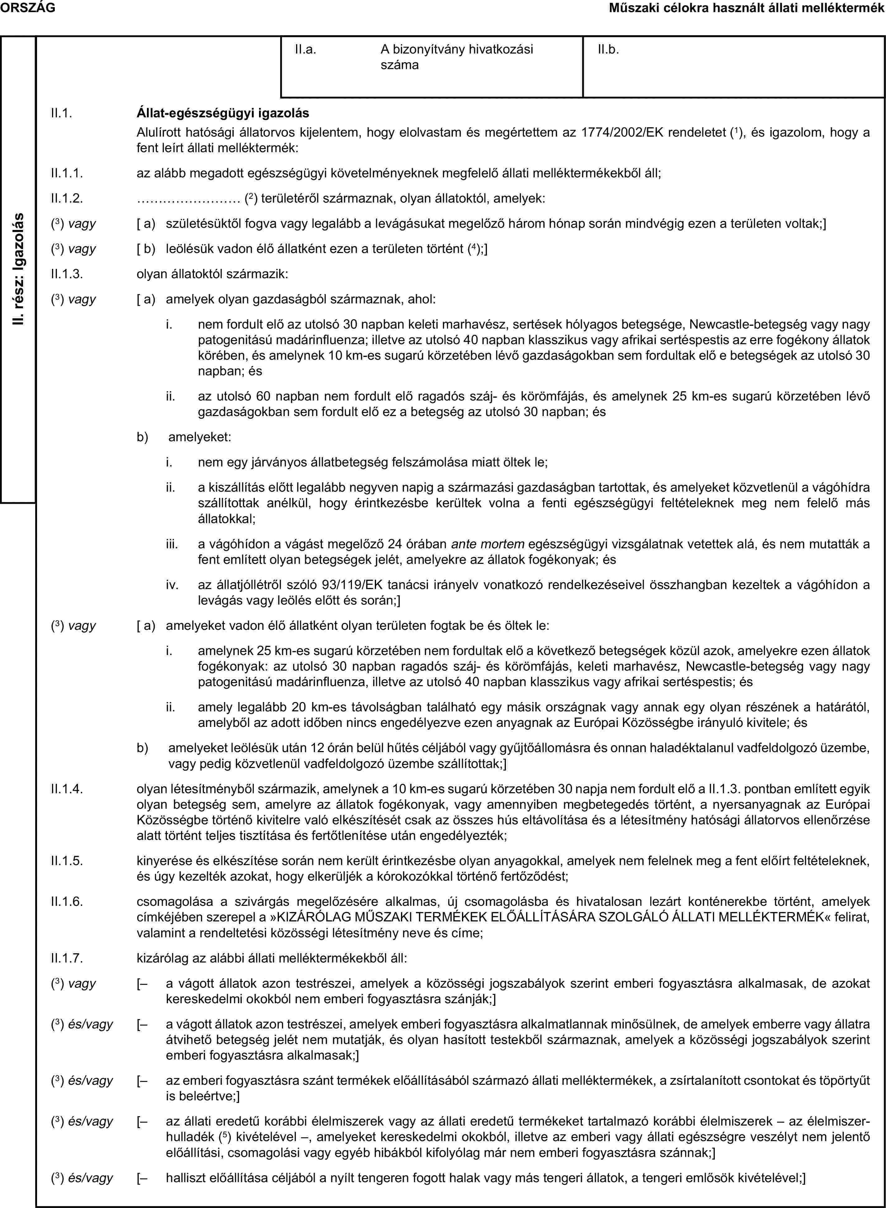 [1] A dokumentum eredetije megtekinthető CELEX: 32002R1774 - https://eur-lex.europa.eu/legal-content/HU/ALL/?uri=CELEX:32002R1774&locale=hu Utolsó elérhető, magyar nyelvű konszolidált változat CELEX: 02002R1774-20100928 - https://eur-lex.europa.eu/legal-content/HU/ALL/?uri=CELEX:02002R1774-20100928&locale=hu