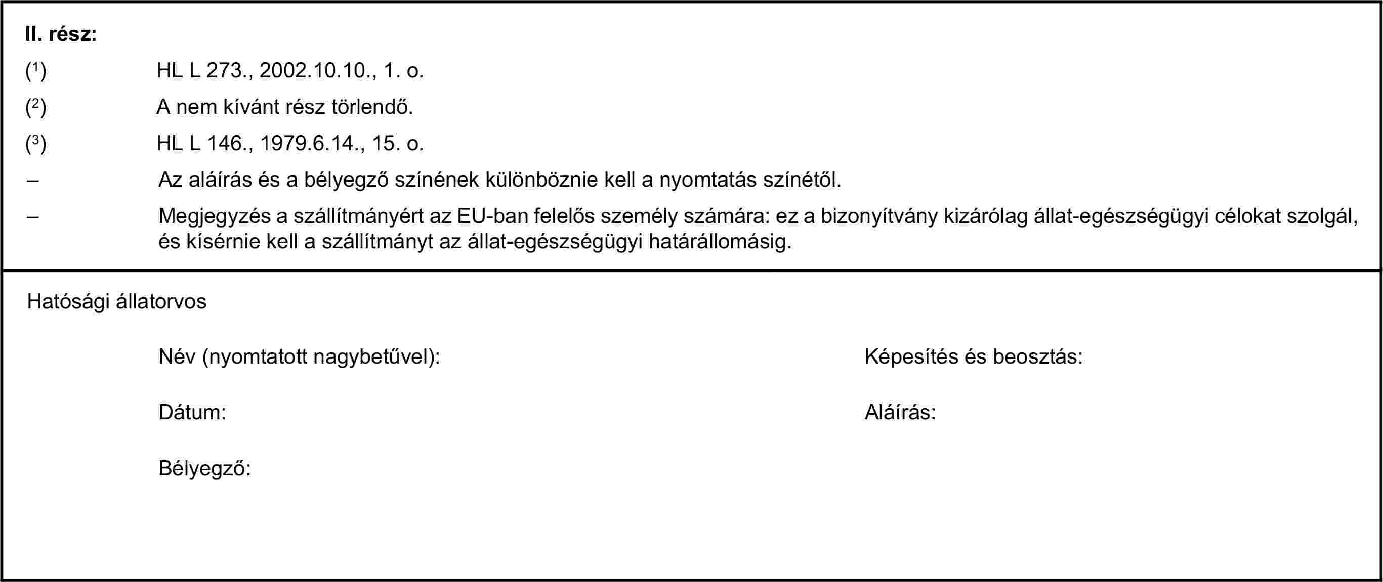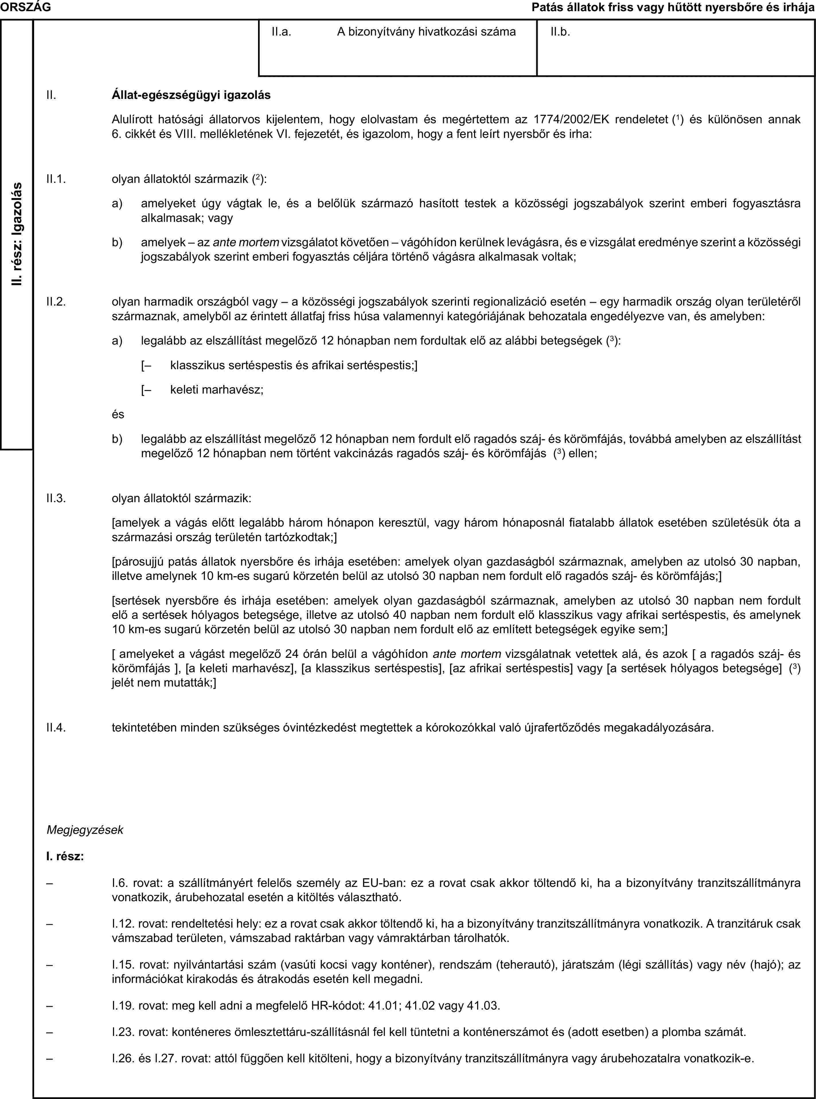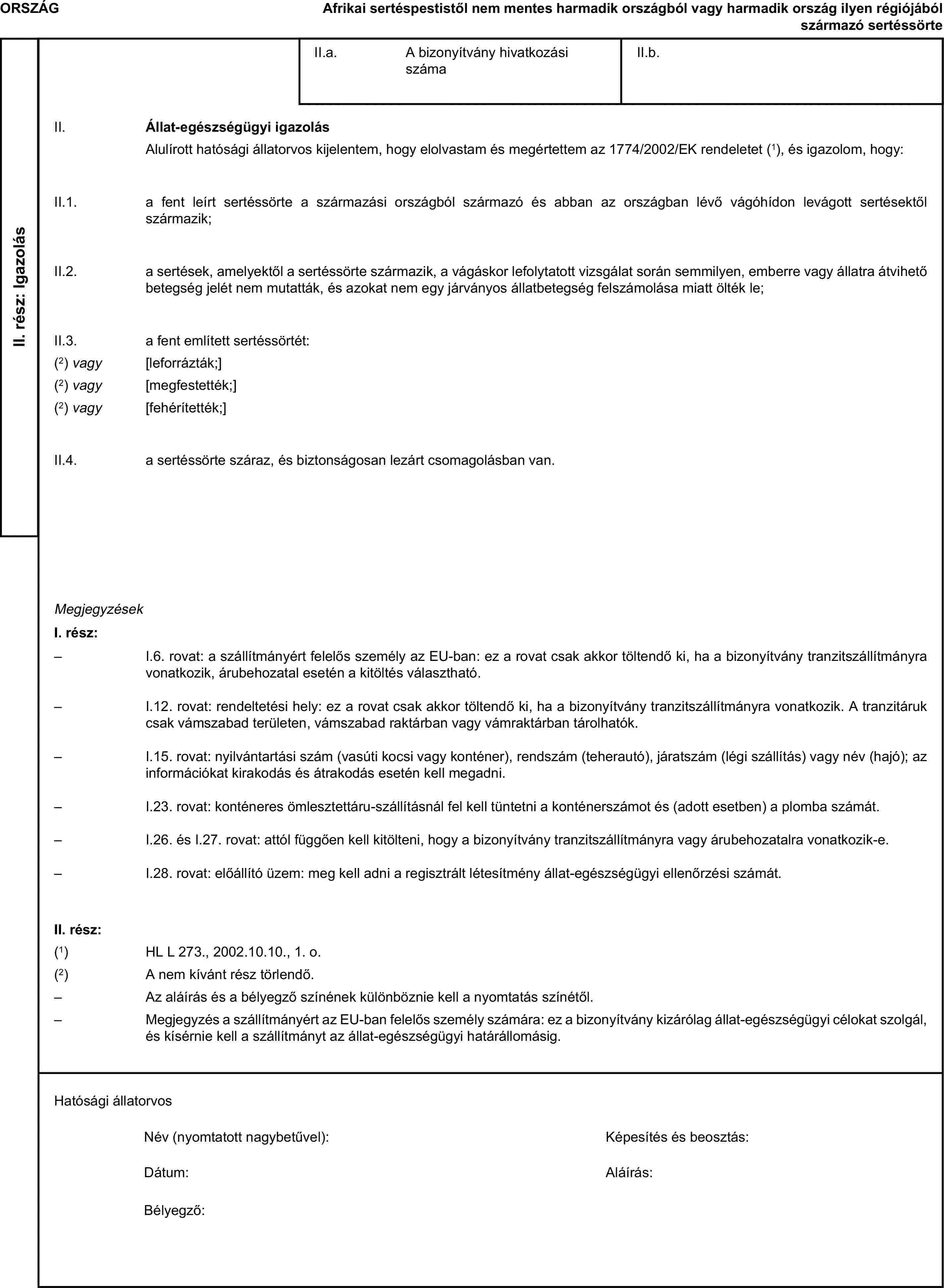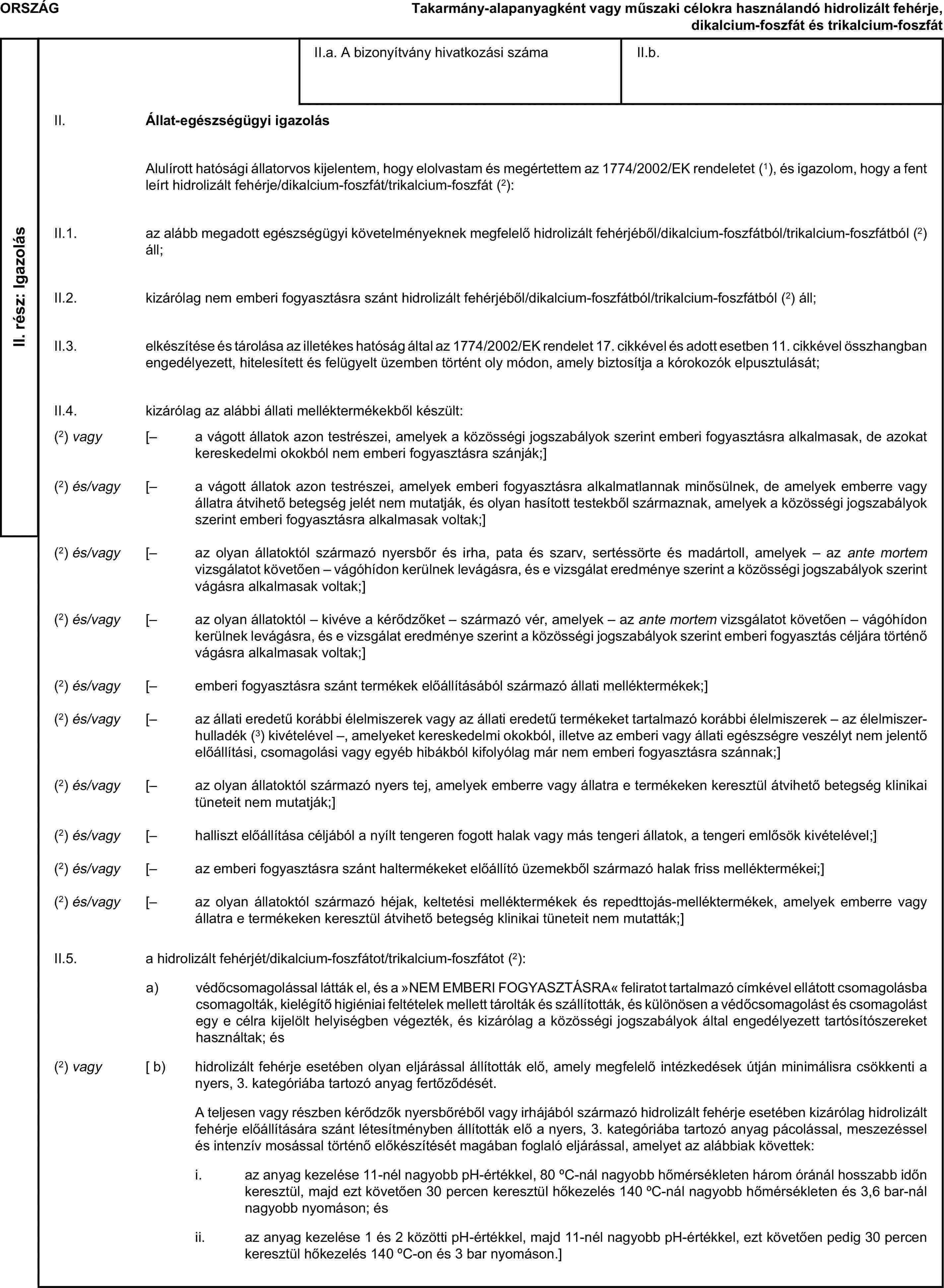 [1] A dokumentum eredetije megtekinthető CELEX: 32002R1774 - https://eur-lex.europa.eu/legal-content/HU/ALL/?uri=CELEX:32002R1774&locale=hu Utolsó elérhető, magyar nyelvű konszolidált változat CELEX: 02002R1774-20100928 - https://eur-lex.europa.eu/legal-content/HU/ALL/?uri=CELEX:02002R1774-20100928&locale=hu