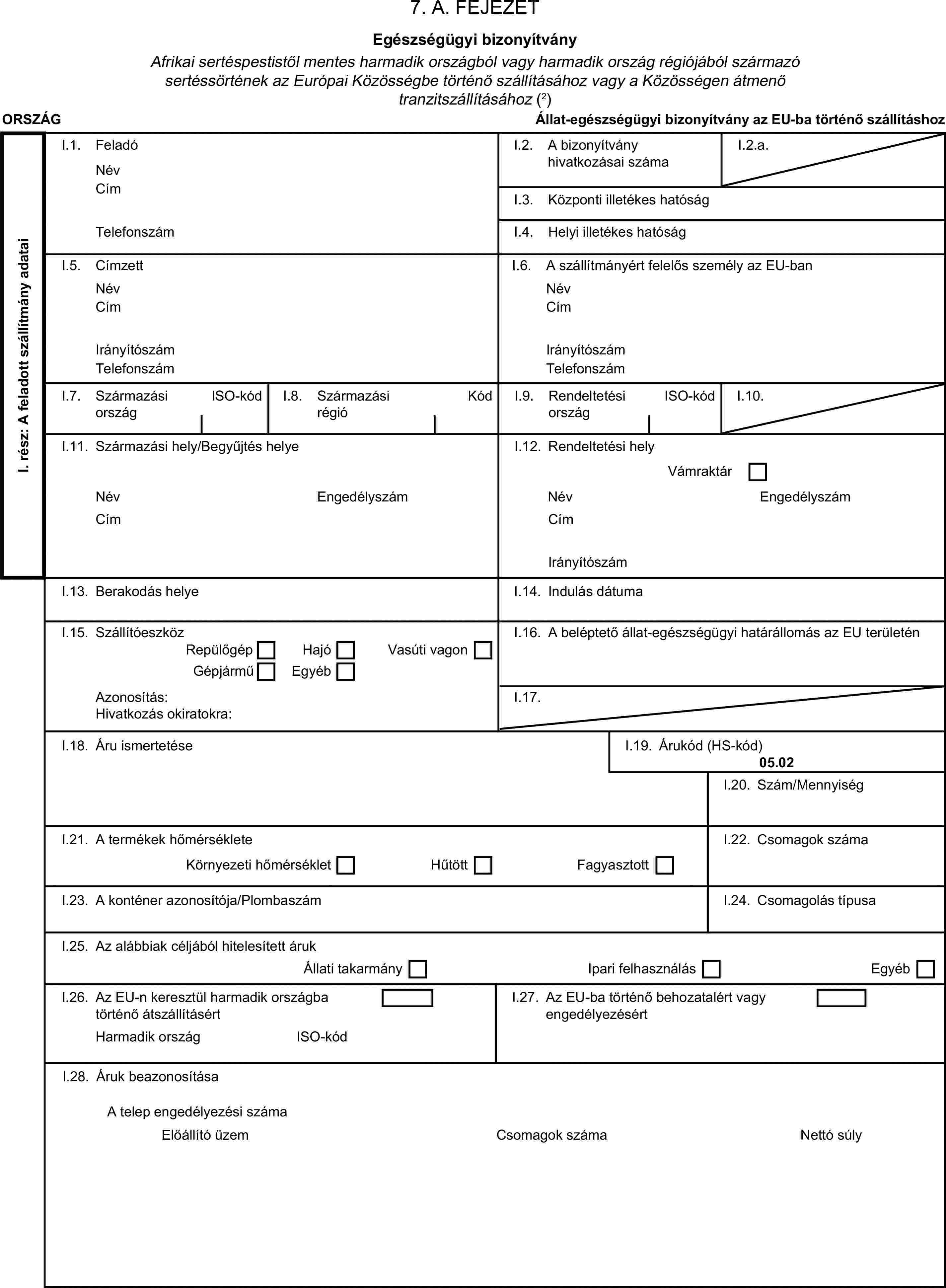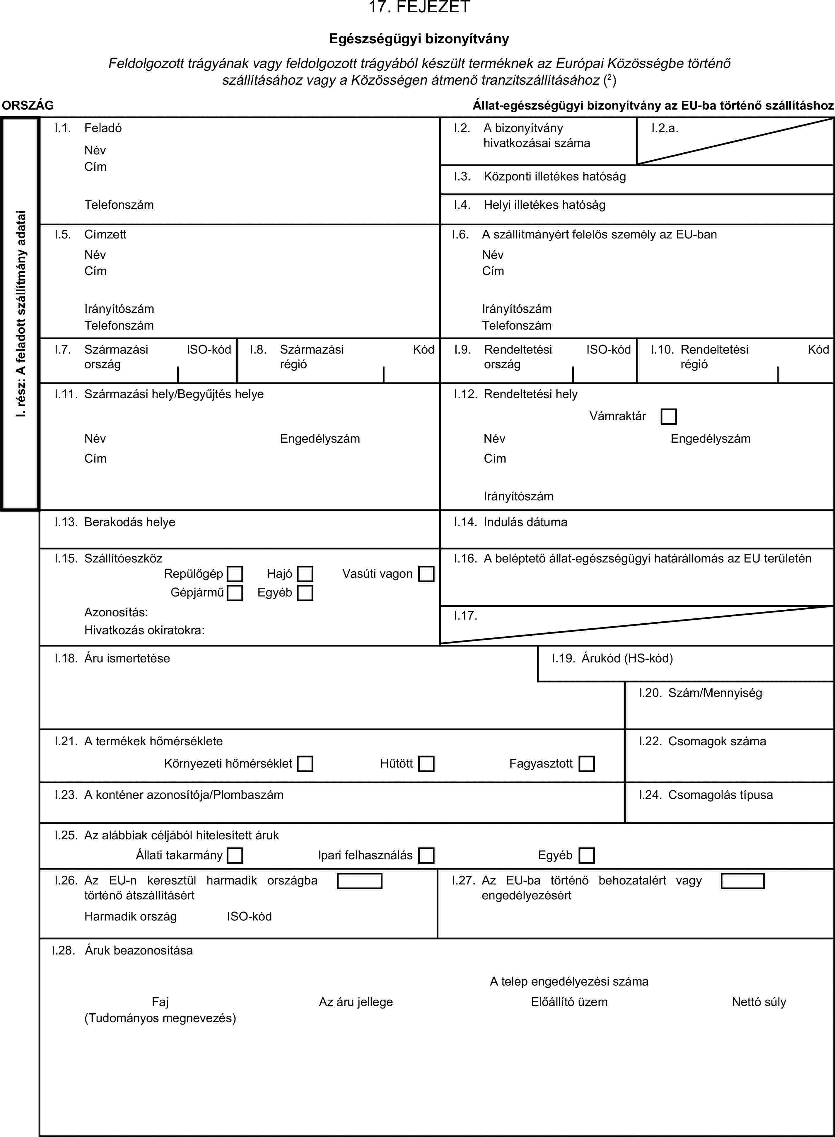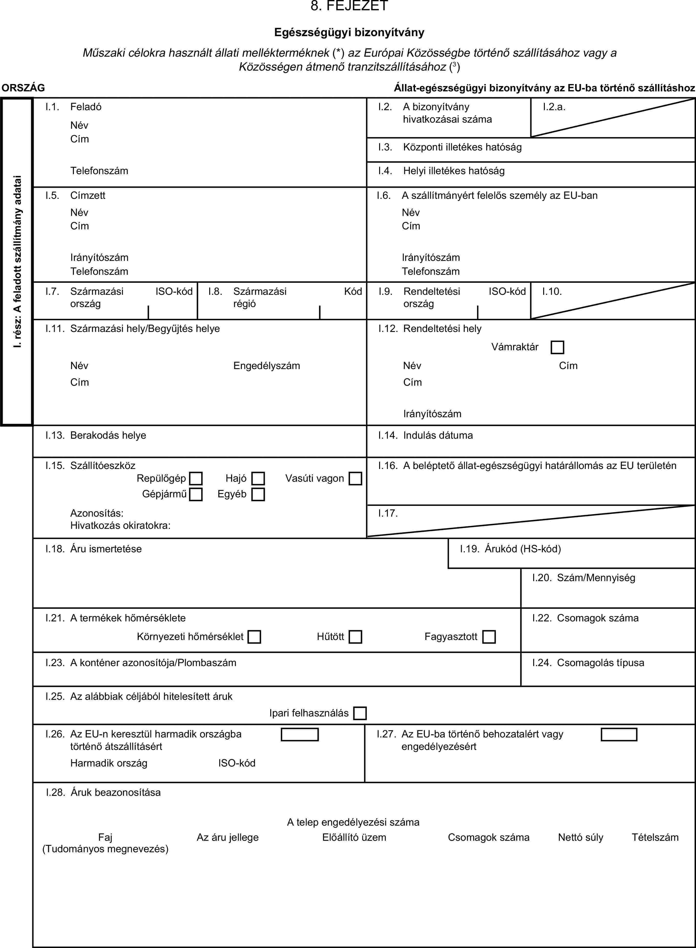 a) a 206/2010/EU rendelet II. mellékletének 1. része;