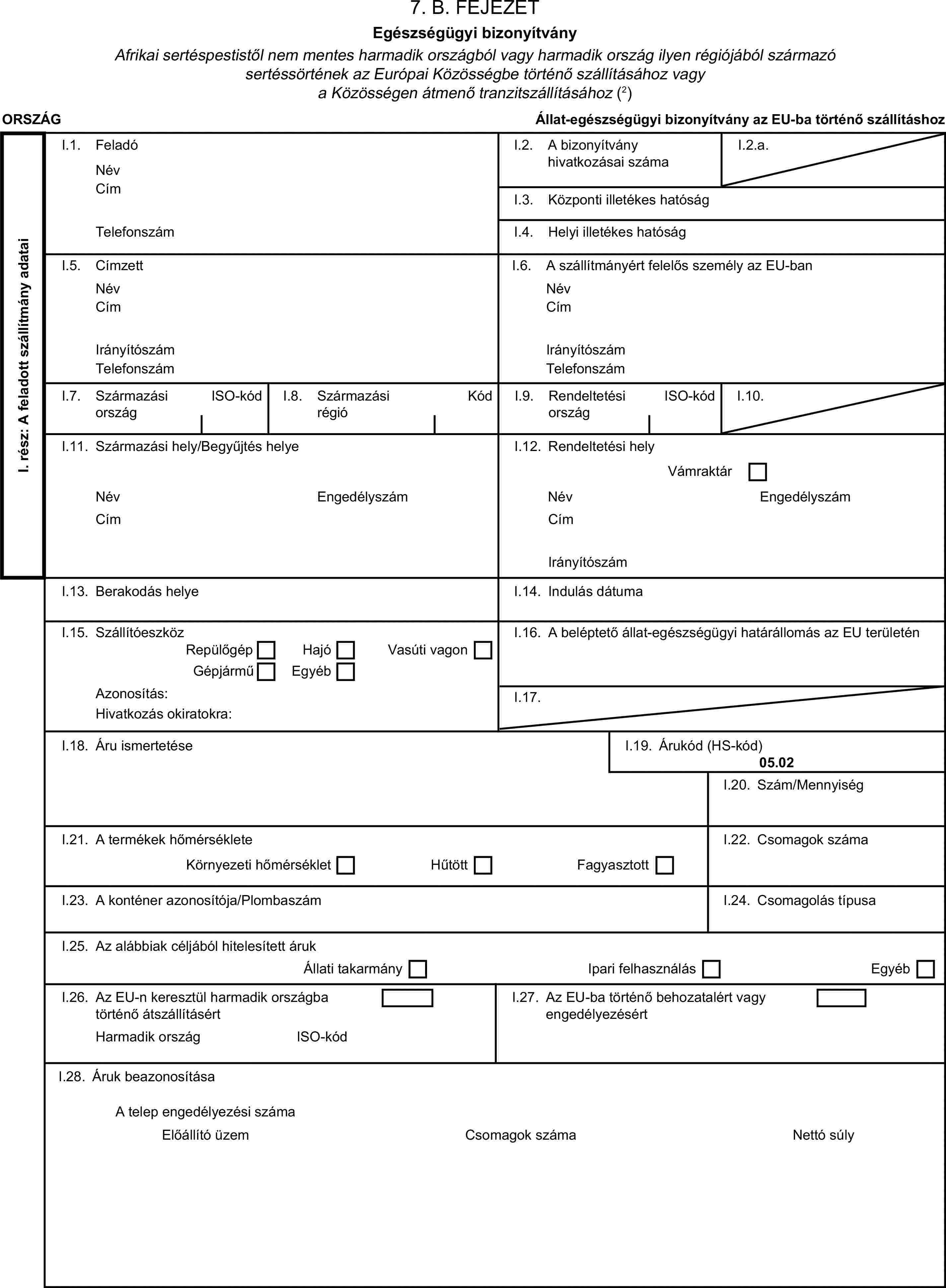 b) az állati melléktermékek és az azokból származó, a VII. és VIII. mellékletben említett termékek forgalomba hozatala és - bizonyos különös esetekben - kivitele és tranzitforgalma.