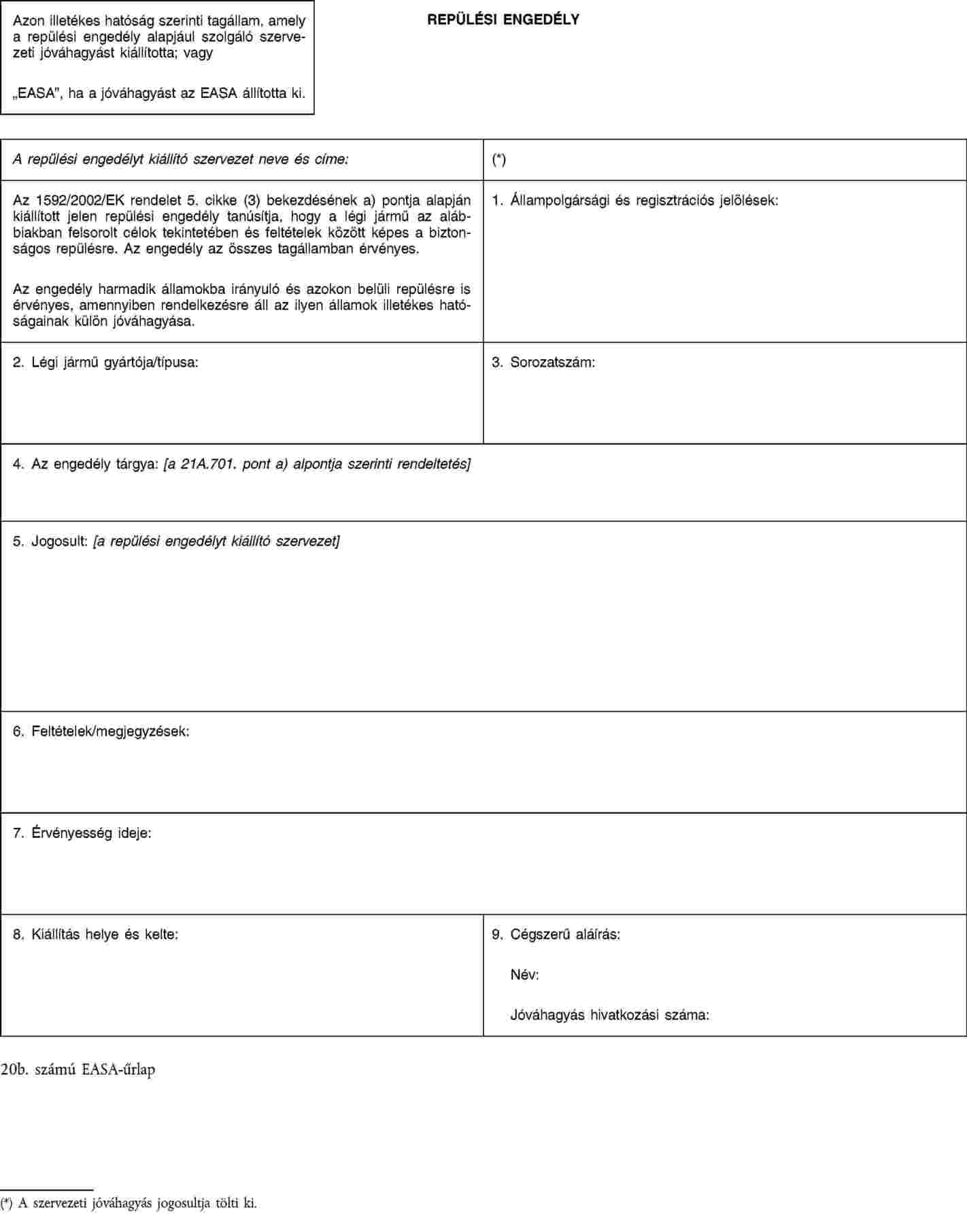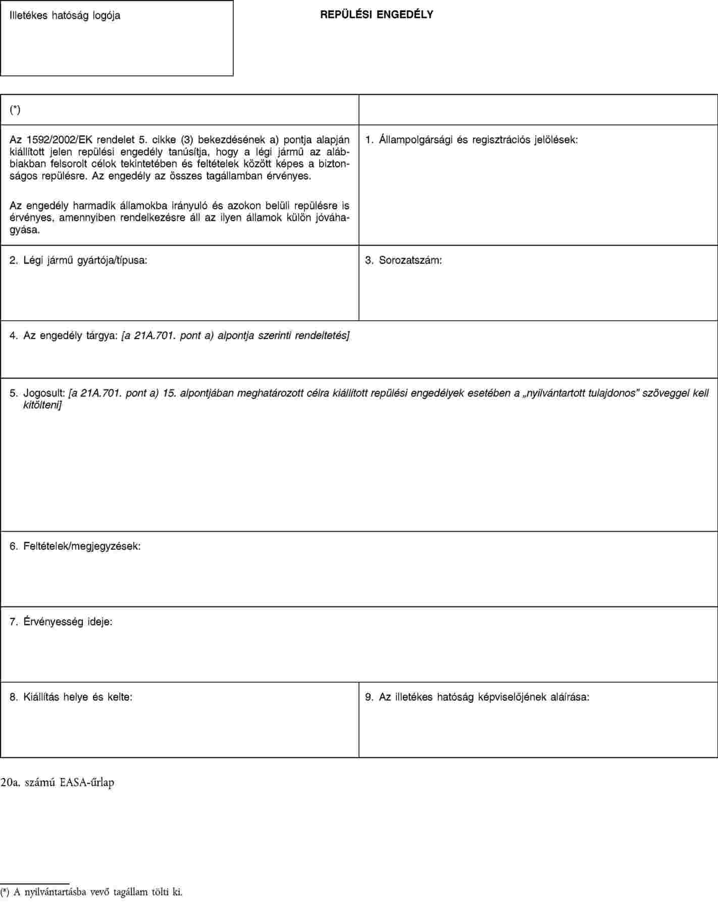 IV. függelék - Repülési engedély (20a. számú EASA-űrlap)