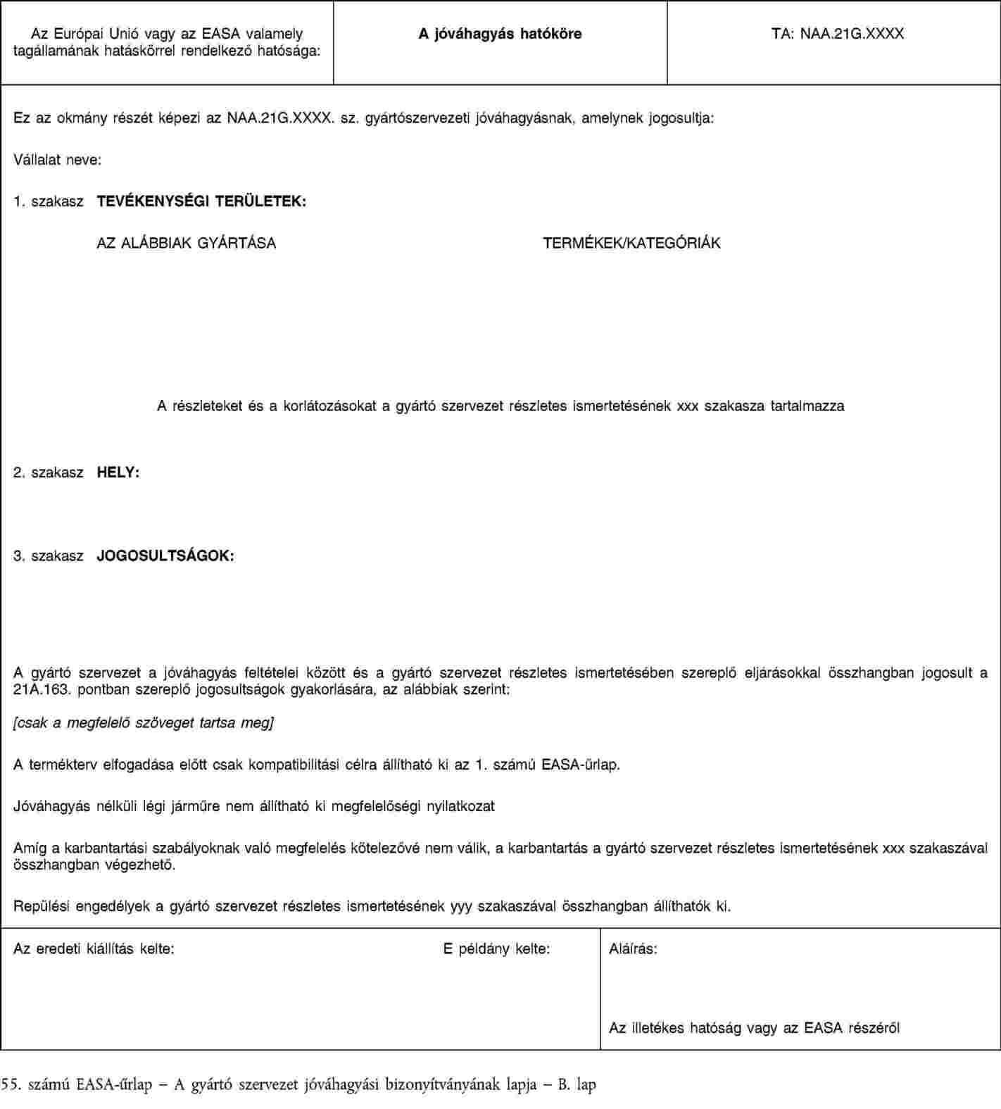 24. Az 55. számú EASA-űrlap B. lapja helyébe a következő szöveg lép: