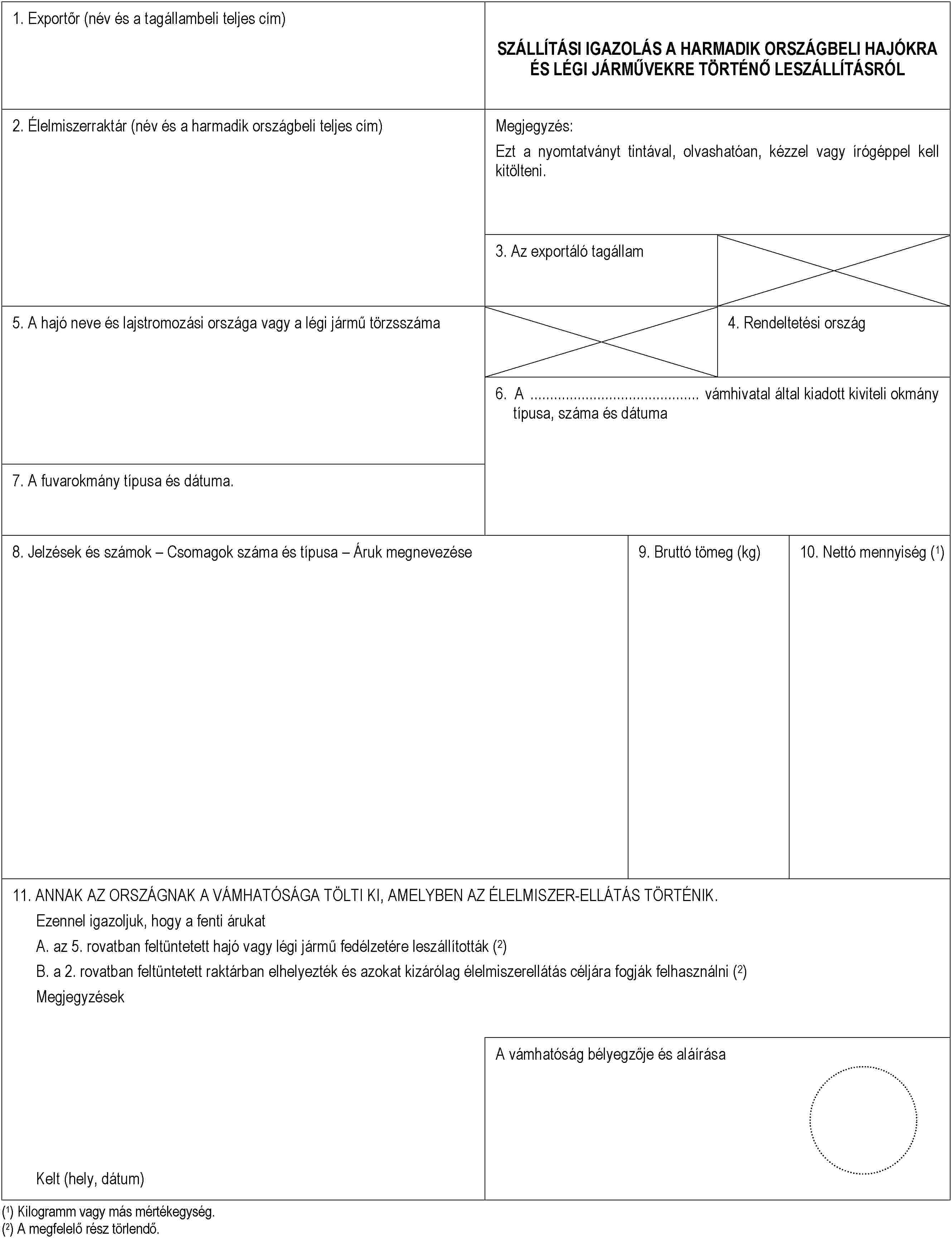 (51) mivel ha valamely tagállamhoz tartozó hadihajó készleteinek feltöltése a nyílt tengeren történik valamely közösségi kikötőből kifutott haditengerészeti ellátó hajóról, e szállításról igazolás kérhető az illetékes hatóságtól; mivel az ilyen szállításokra indokolt ugyanolyan visszatérítési ráta alkalmazása, mint ami a közösségi kikötőkben történő készletfeltöltésekre vonatkozik;