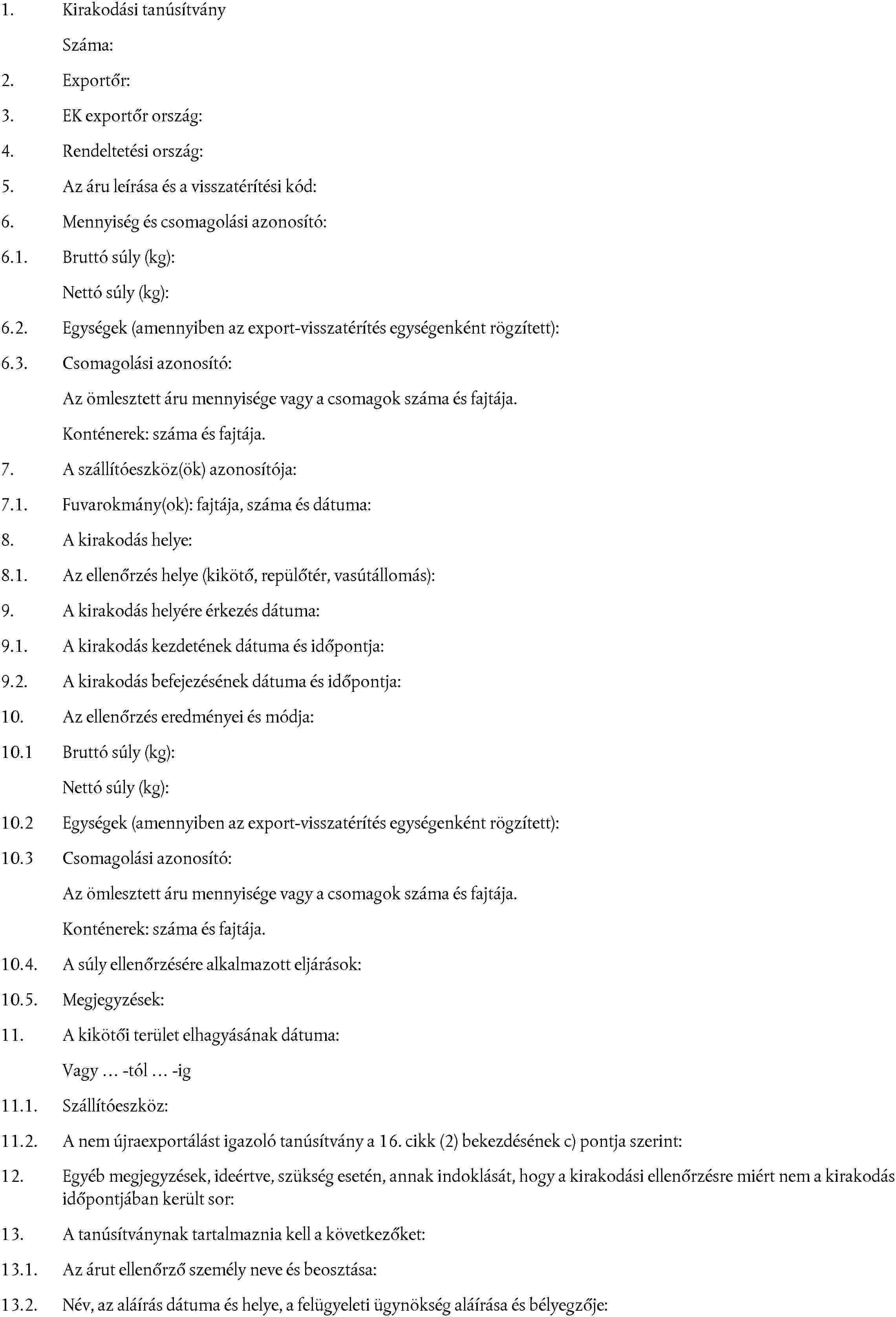 (35) mivel a ténylegesen figyelembe veendő időpont ennek megfelelően az a nap, amelyen a vámhatóságok elfogadják az érintett személy nyilatkozatát, amelyben az kinyilvánítja azon szándékát, hogy a szóban forgó termékeket vagy árukat az 565/80/EGK rendelet 4. és 5. cikkében foglalt intézkedéseknek aláveti, és azokat visszatérítéssel exportálja a feldolgozást vagy a tárolást követően; mivel e nyilatkozatoknak tartalmazniuk kell a visszatérítések kiszámításához szükséges adatokat;