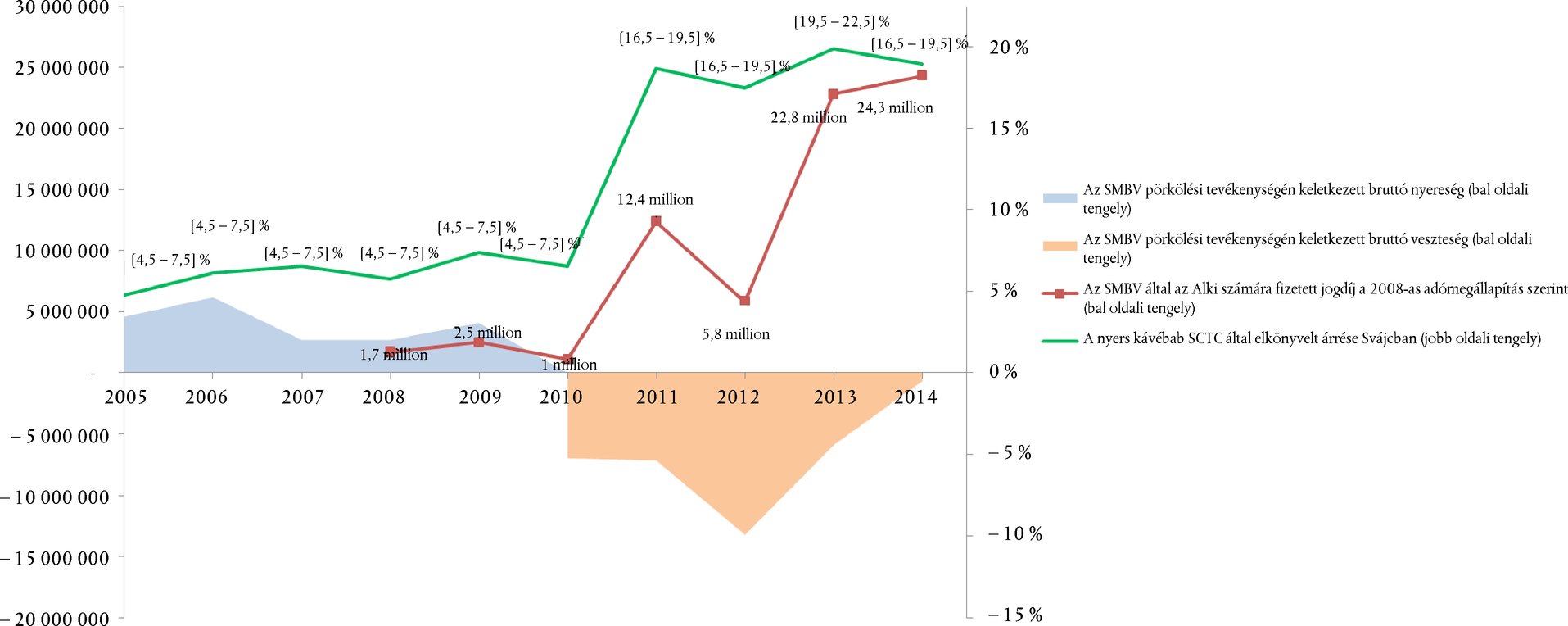 (235) Ráadásul az SMBV APA szokásos piaci ár elvének való meg nem felelése tovább igazolódott és súlyosbodott a megkötését követő években. Például miközben 2007-ben a pörkölt kávébabból származó bevételek az SMBV összes bevételének mindössze [15-20] %-át képviselték, ez a későbbi években tovább csökkent [...] %-ra 2013-ban és 2014-ben. Ez összhangban van azzal a ténnyel, hogy az SMBV egyéb tevékenységeket is folytatott, például piackutatás, jelentős költségekkel járó és egyéb szellemi tulajdonhoz kapcsolódó tevékenységeket figyelemmel arra, hogy 2014-ben a működési költségek közé egyik legjelentősebb tételként bekerült az immateriális javak amortizációja.