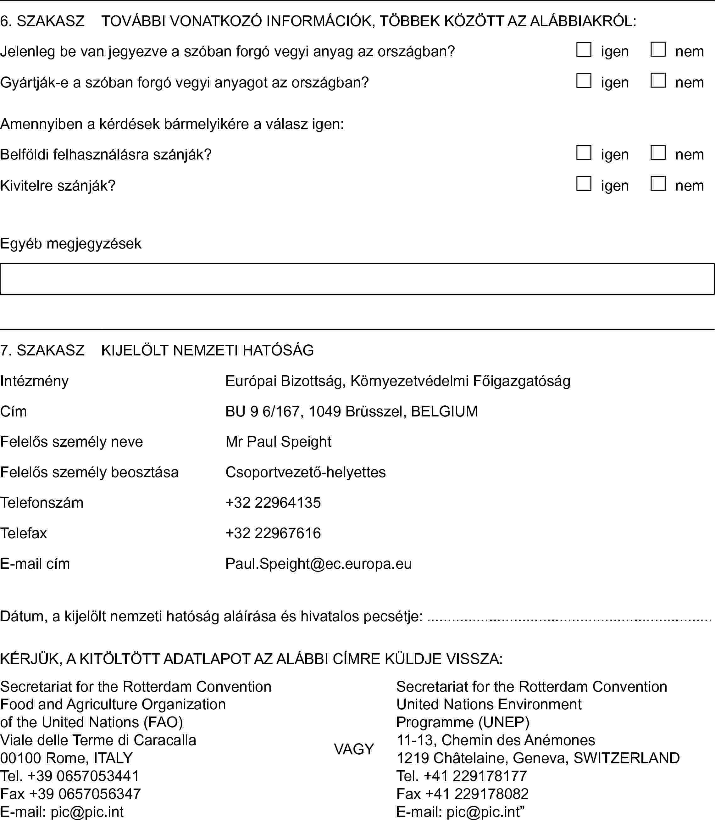 (3) A Bizottságnak - közös kijelölt hatóságként eljárva - a PIC eljárás hatálya alá tartozó vegyi anyagok behozataláról szóló határozatokat a Közösség és a tagállamok nevében továbbítania kell a rotterdami egyezmény titkárságára.
