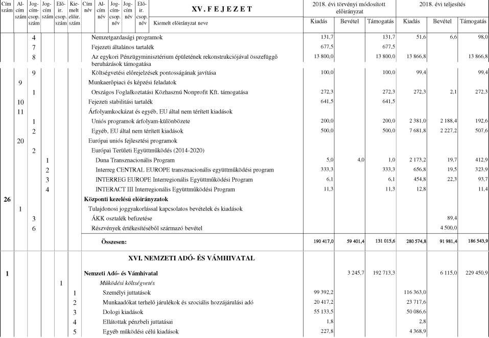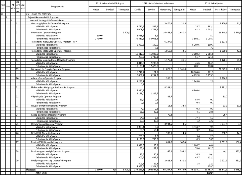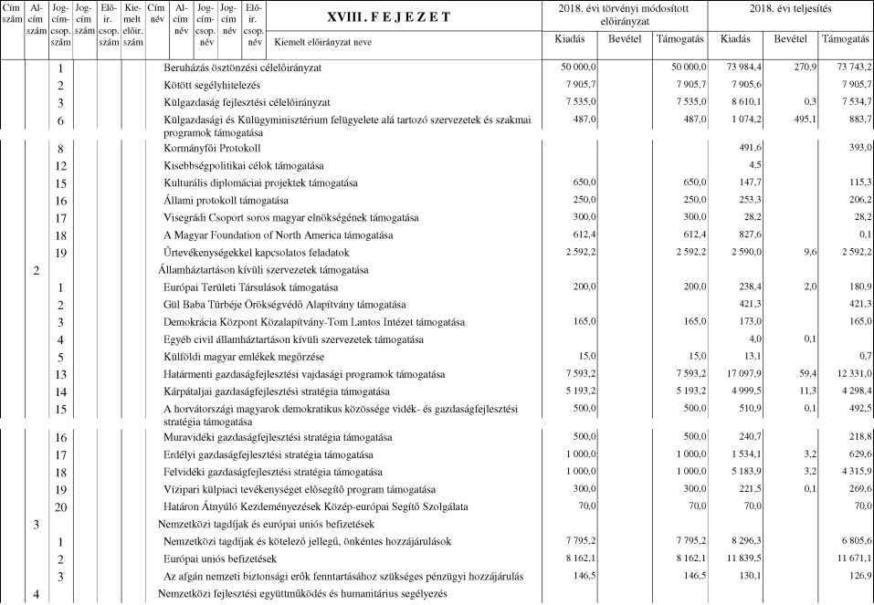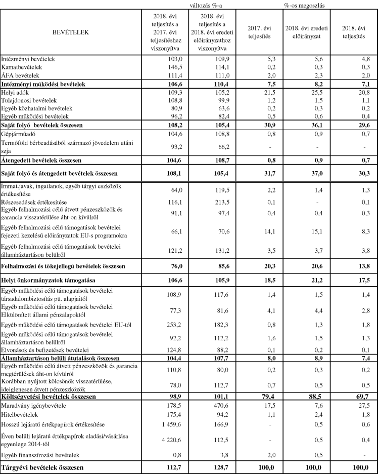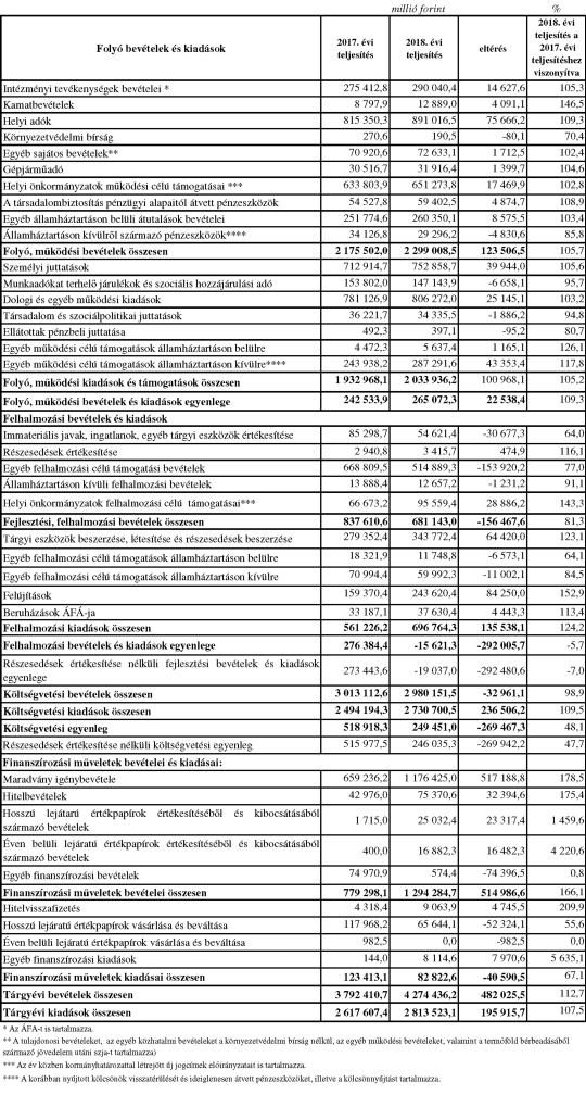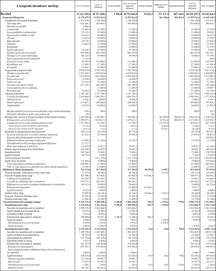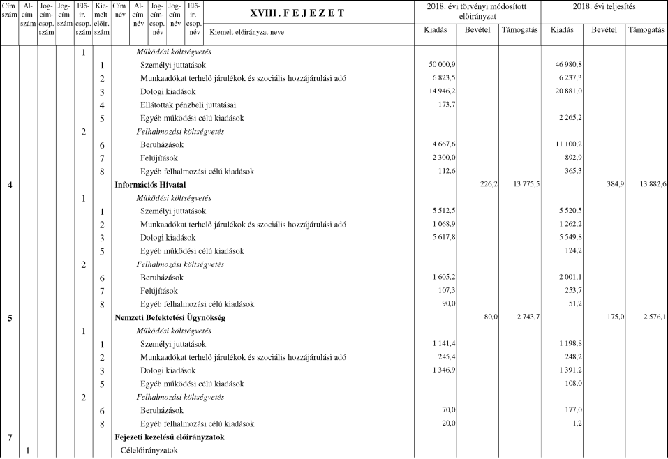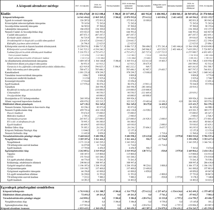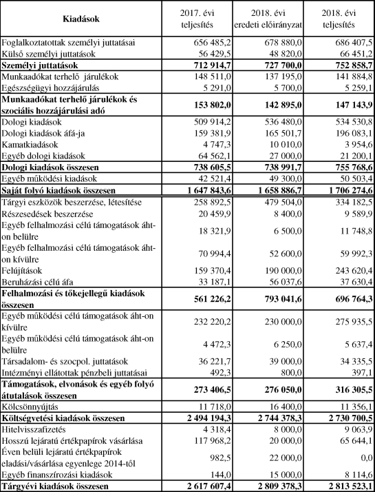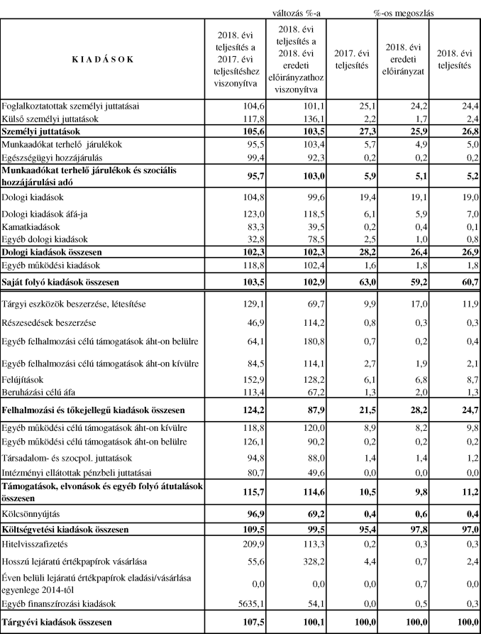 A 2018. ÉVI KÖZPONTI KÖLTSÉGVETÉS VÉGREHAJTÁSA