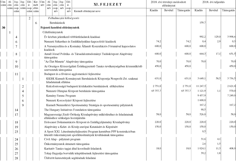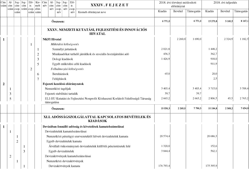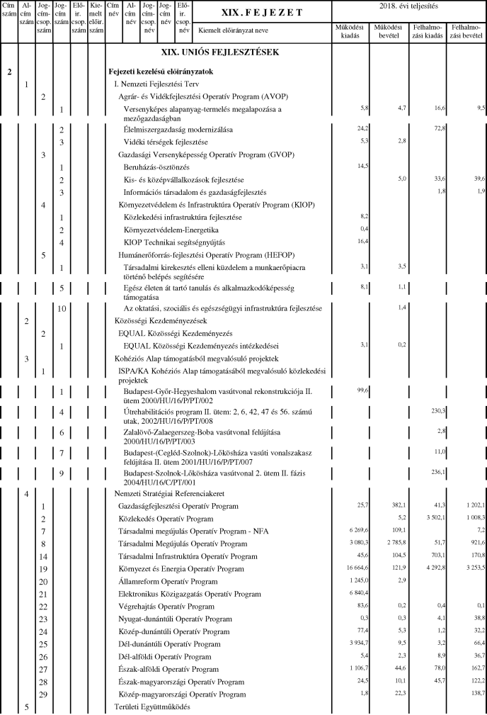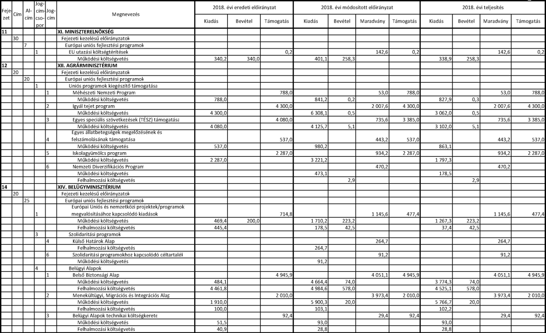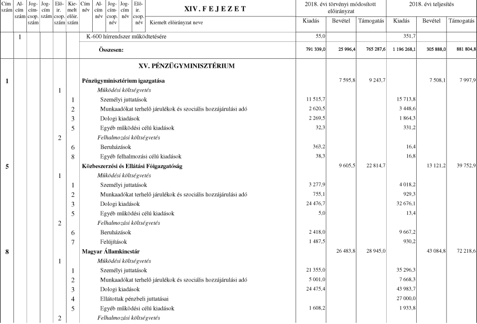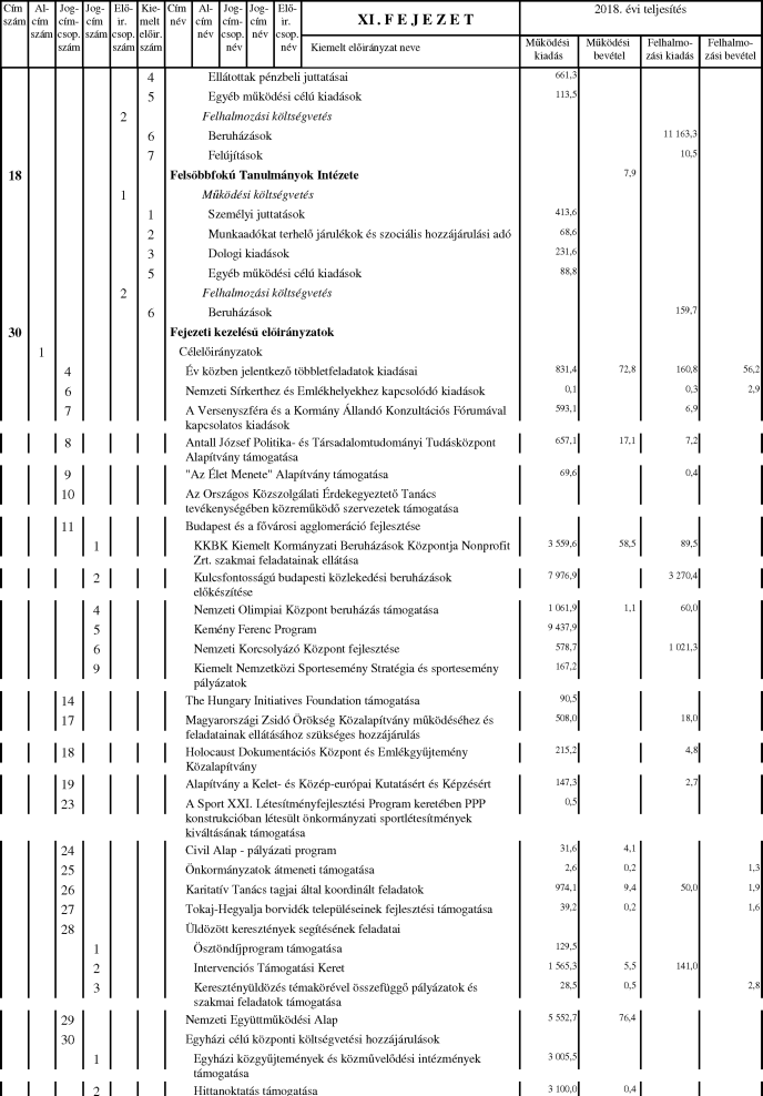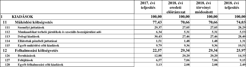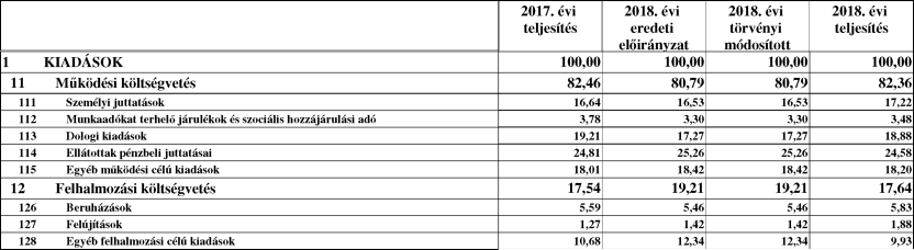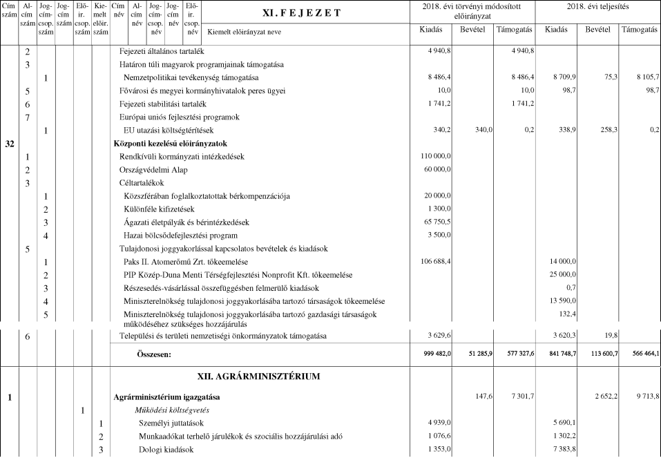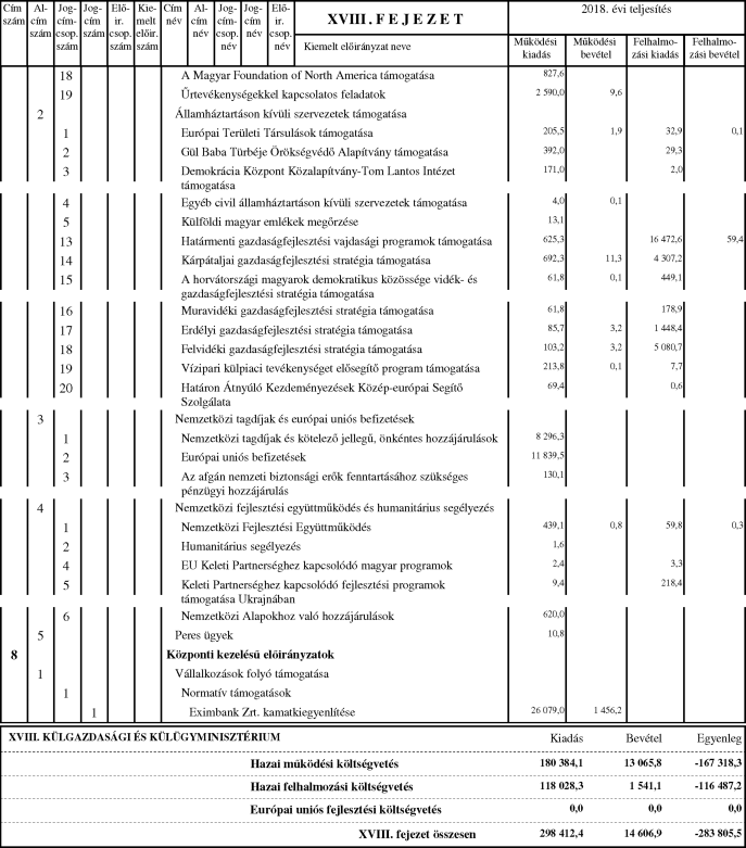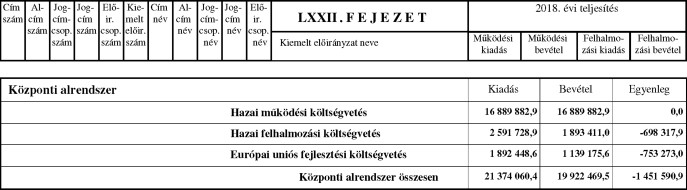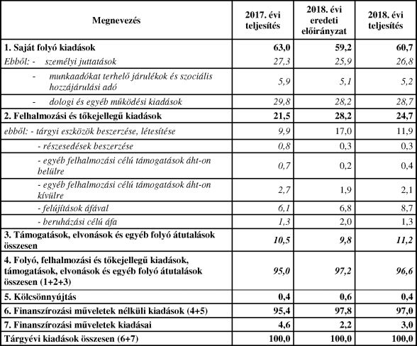 A 2018. ÉVI KÖZPONTI KÖLTSÉGVETÉS VÉGREHAJTÁSA