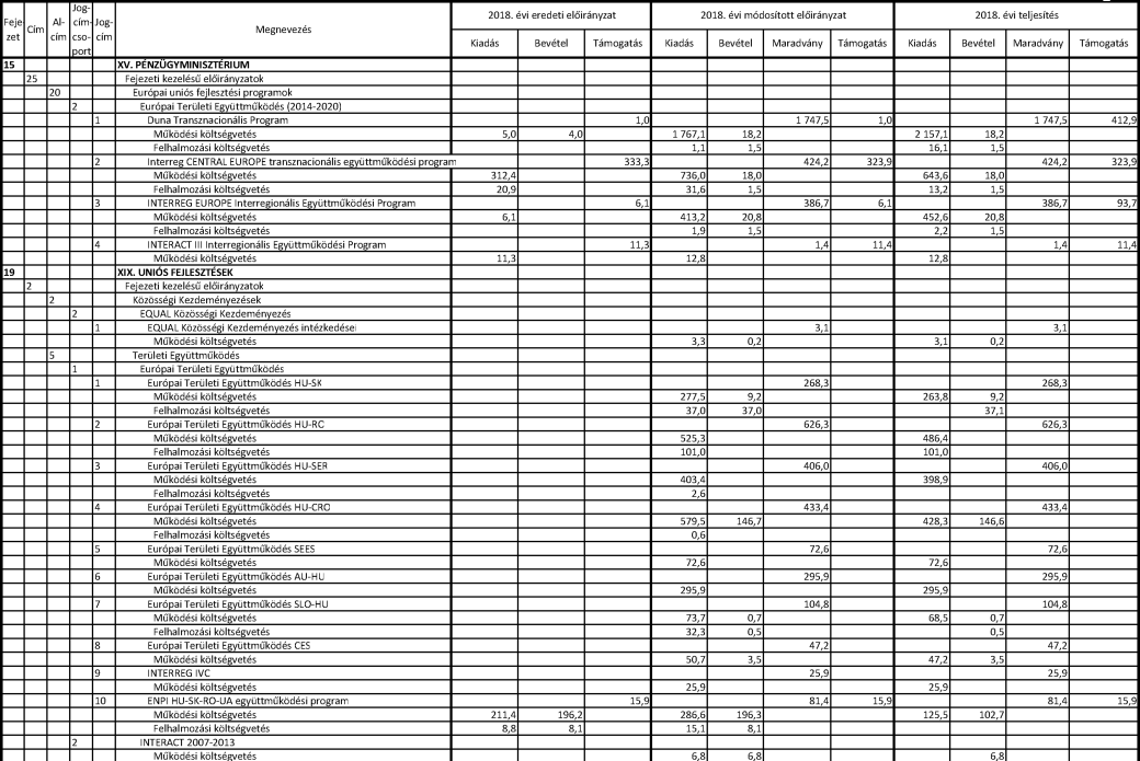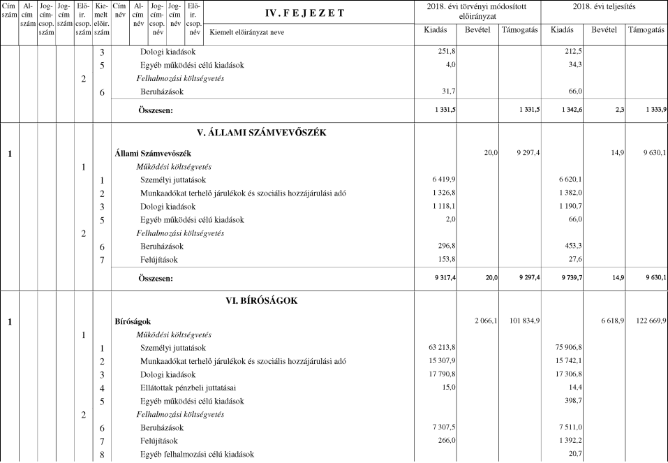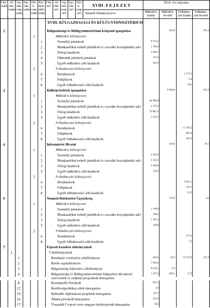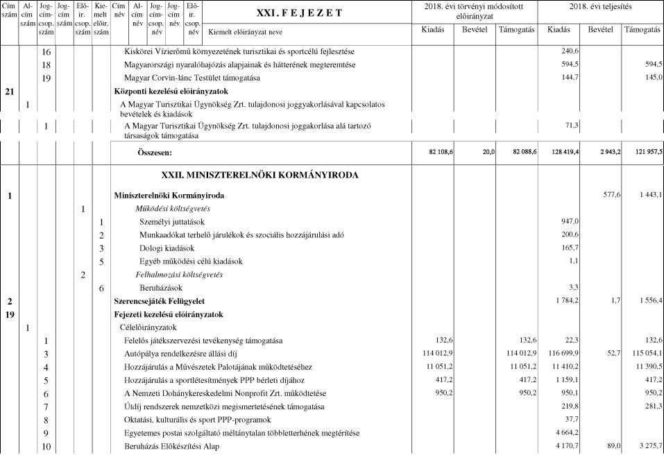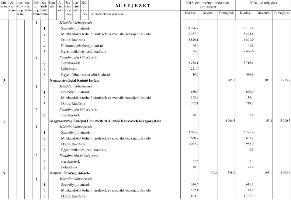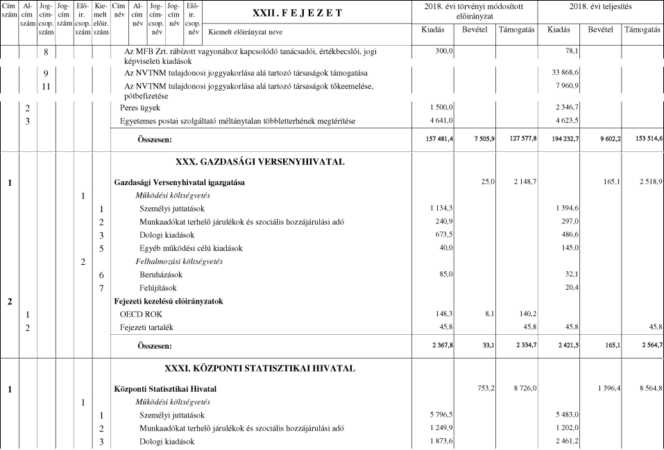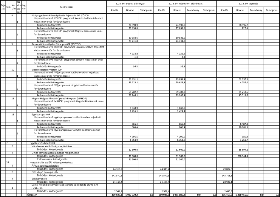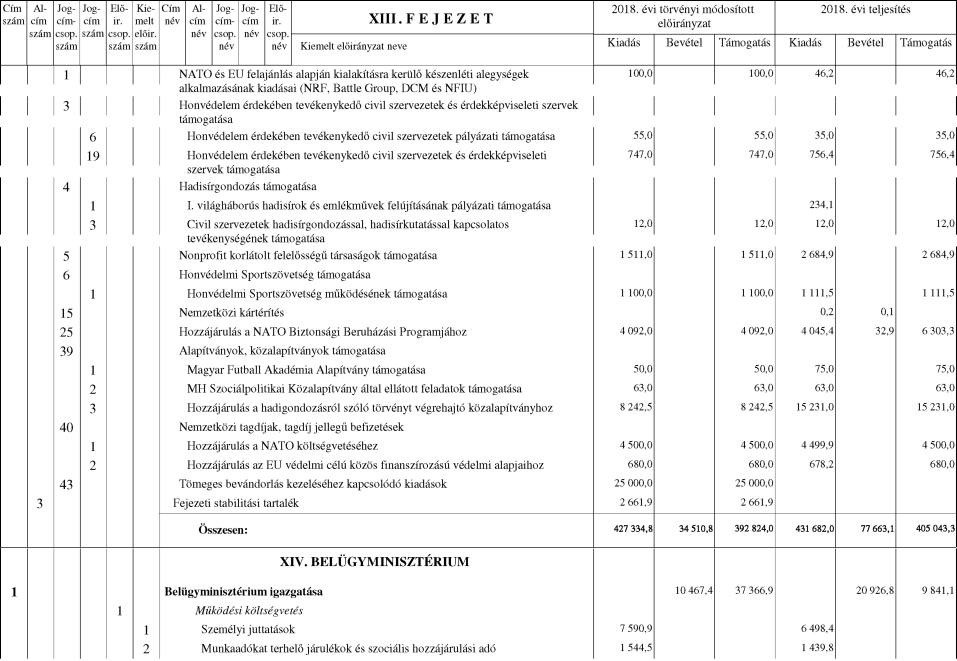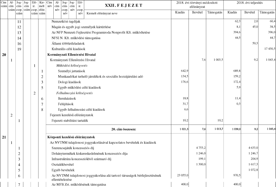 A 2018. ÉVI KÖZPONTI KÖLTSÉGVETÉS VÉGREHAJTÁSA