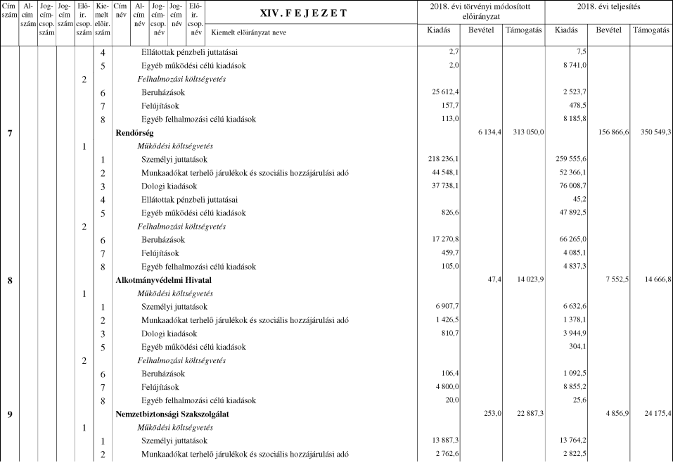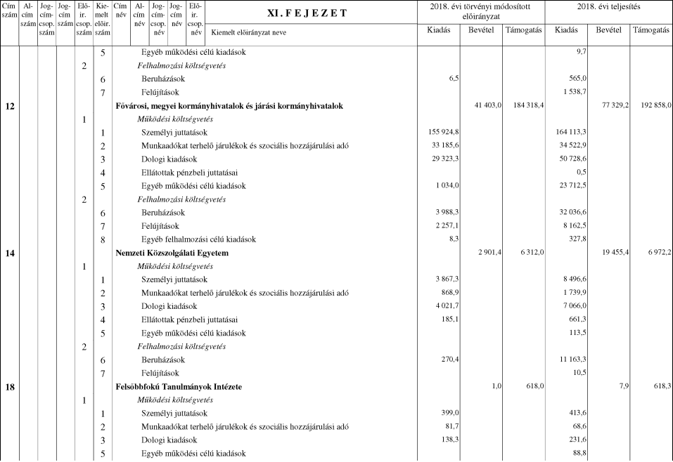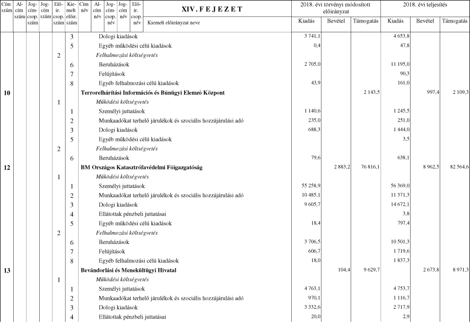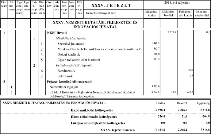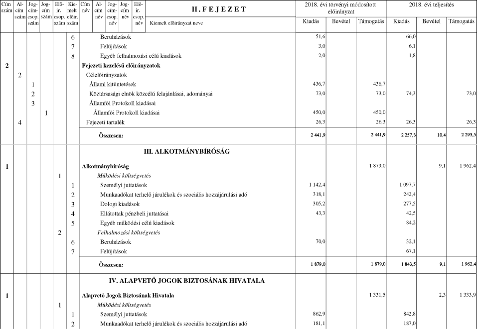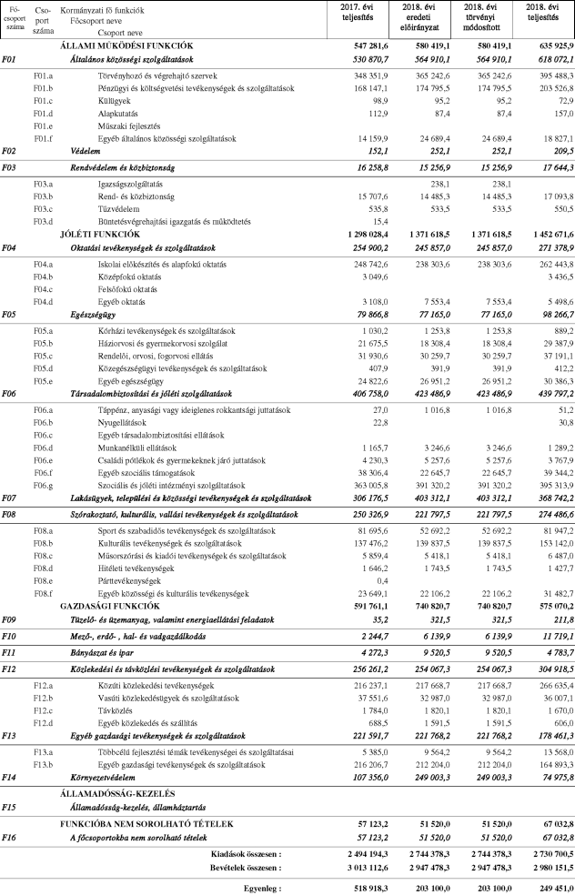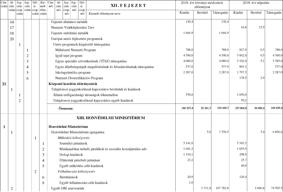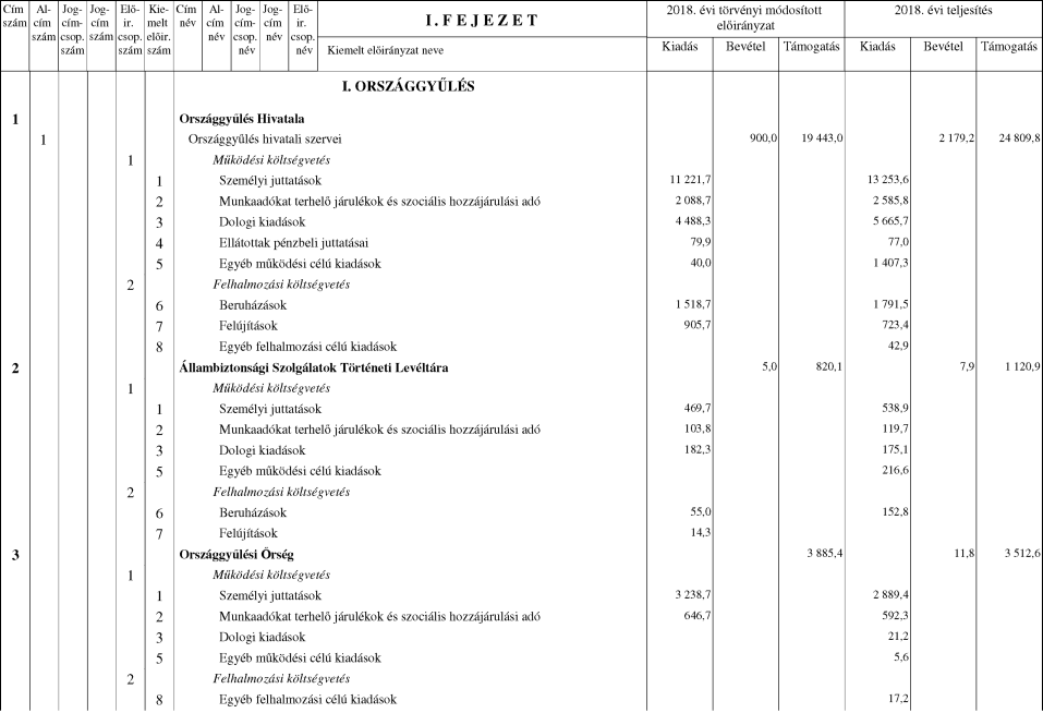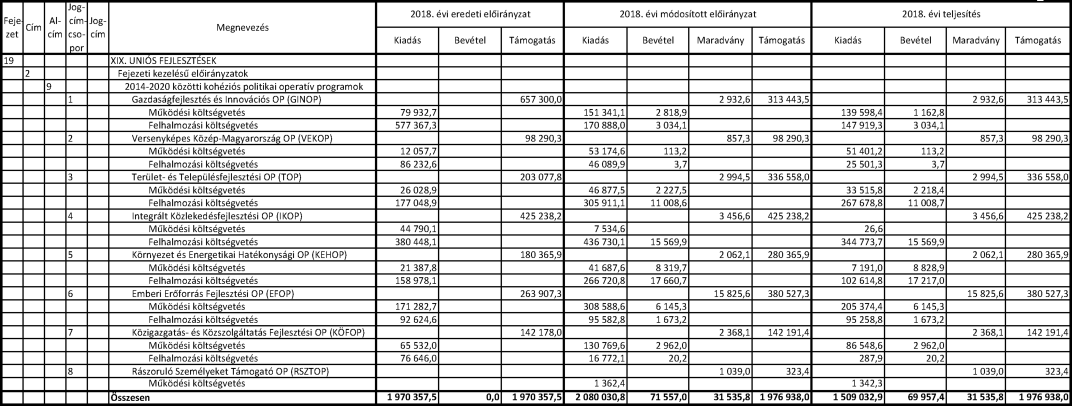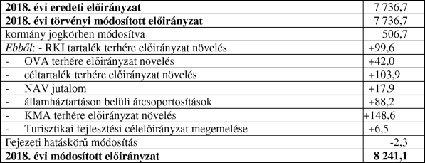 A 2018. ÉVI KÖZPONTI KÖLTSÉGVETÉS VÉGREHAJTÁSA