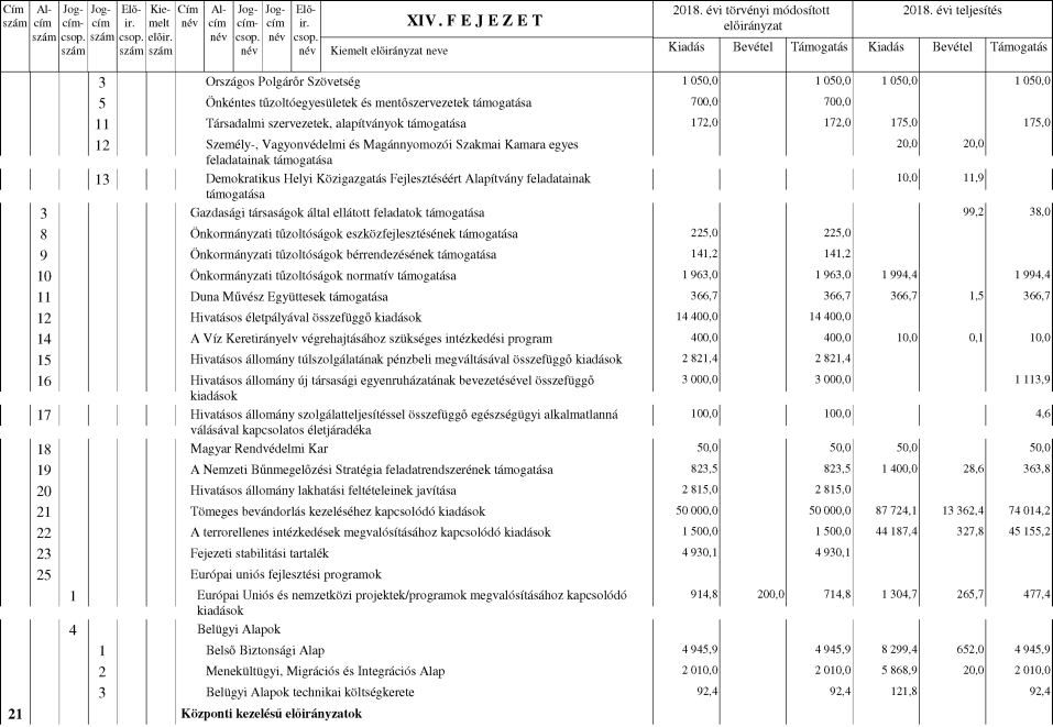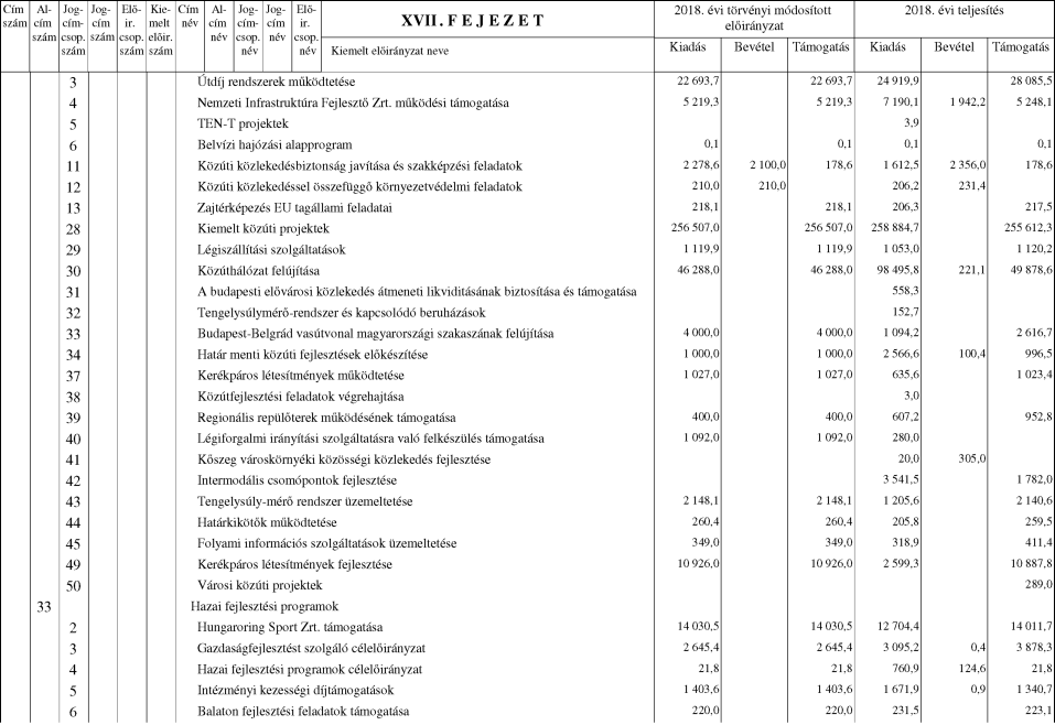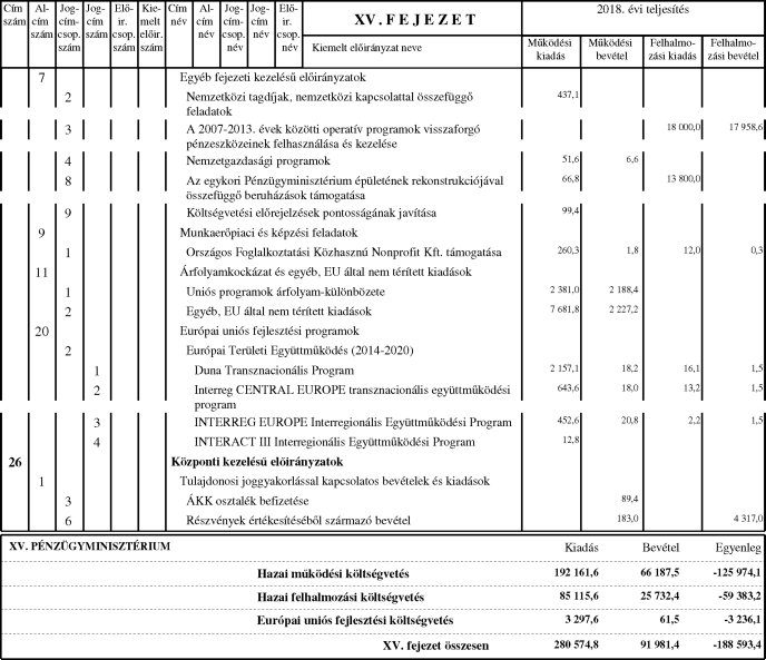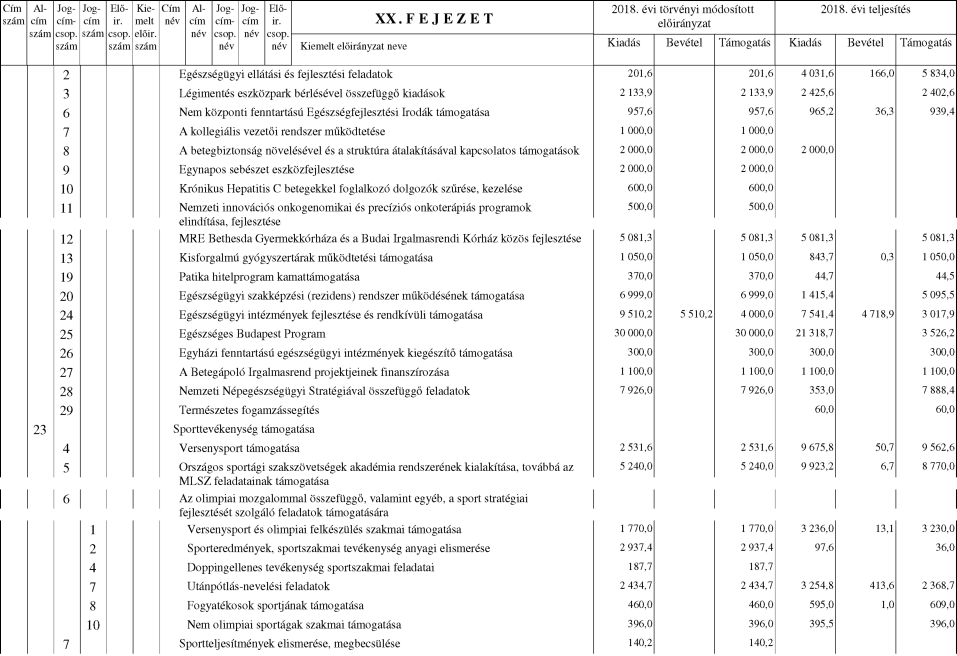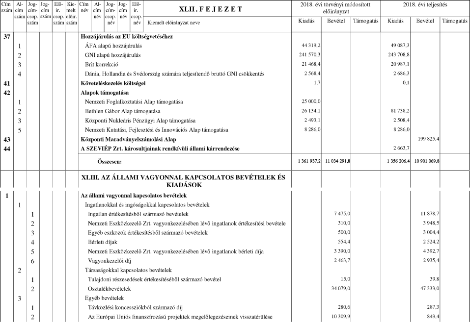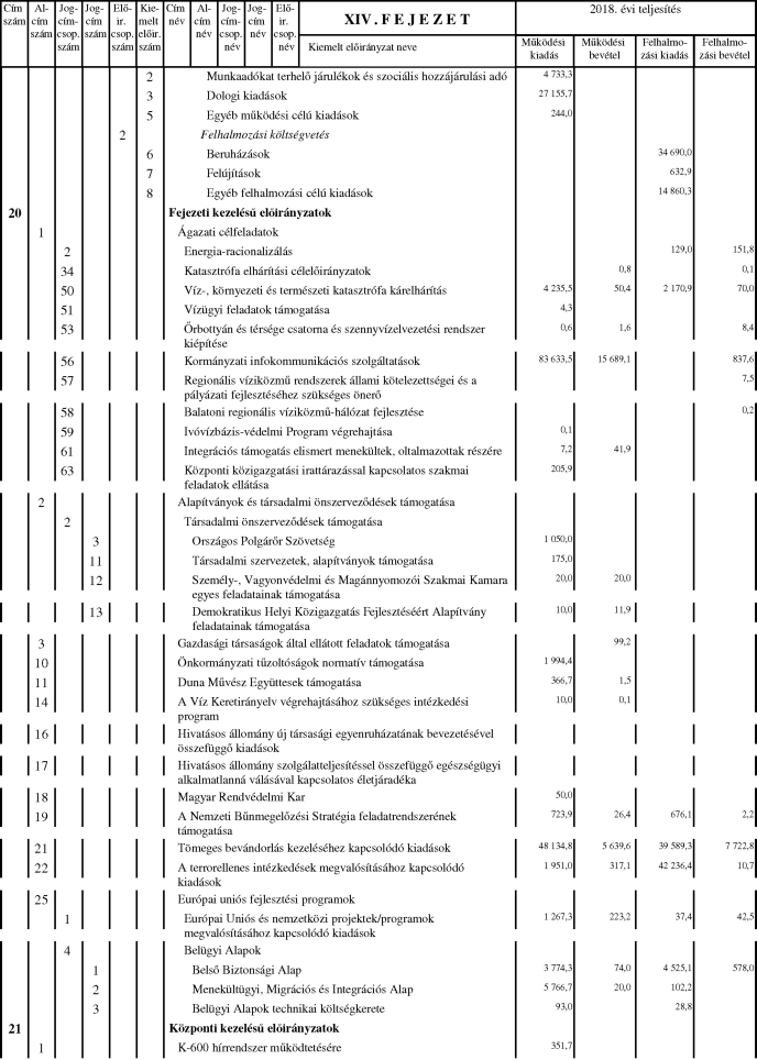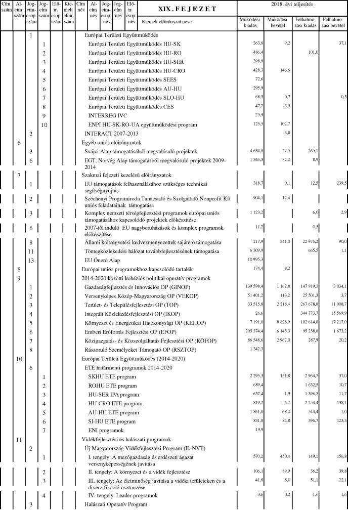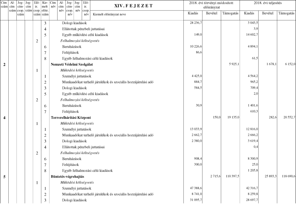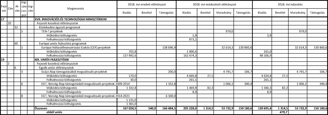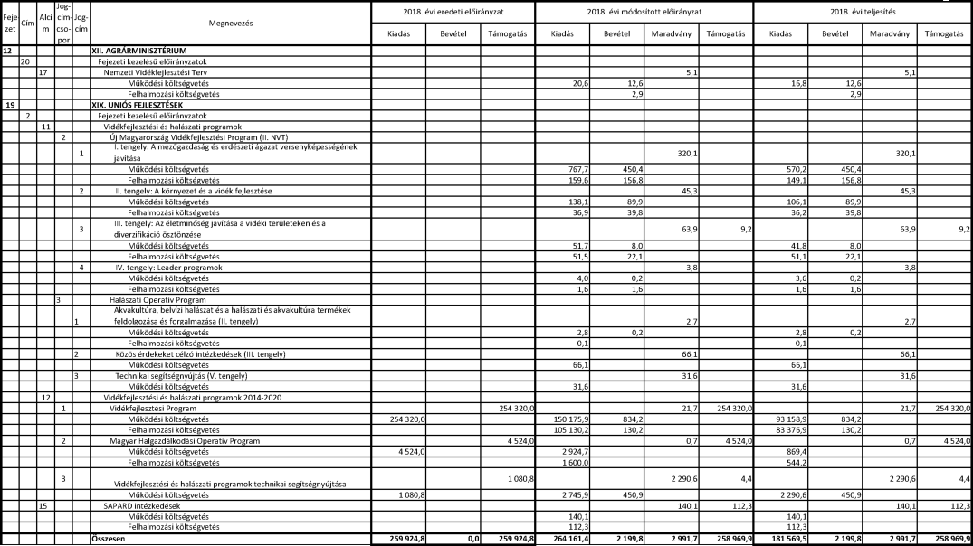 A 2018. ÉVI KÖZPONTI KÖLTSÉGVETÉS VÉGREHAJTÁSA