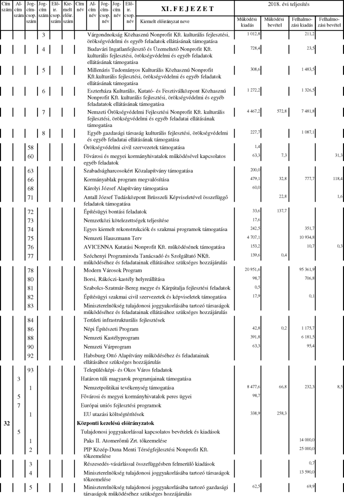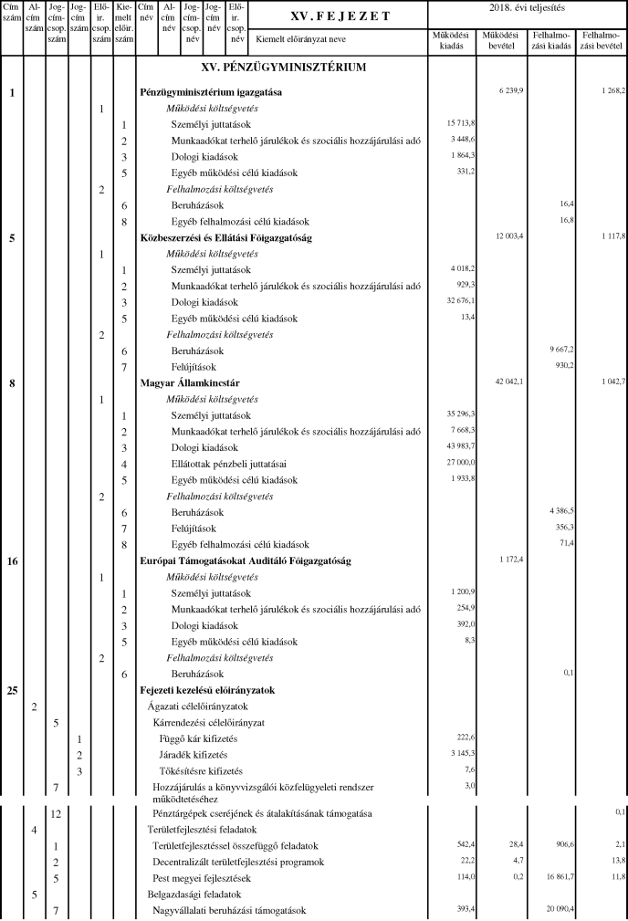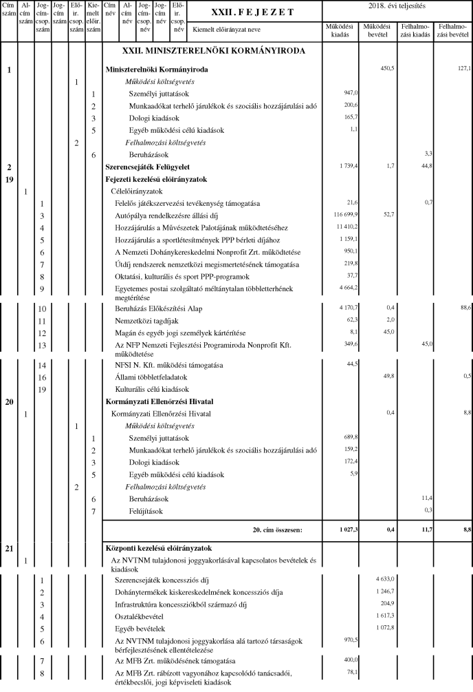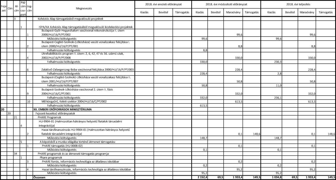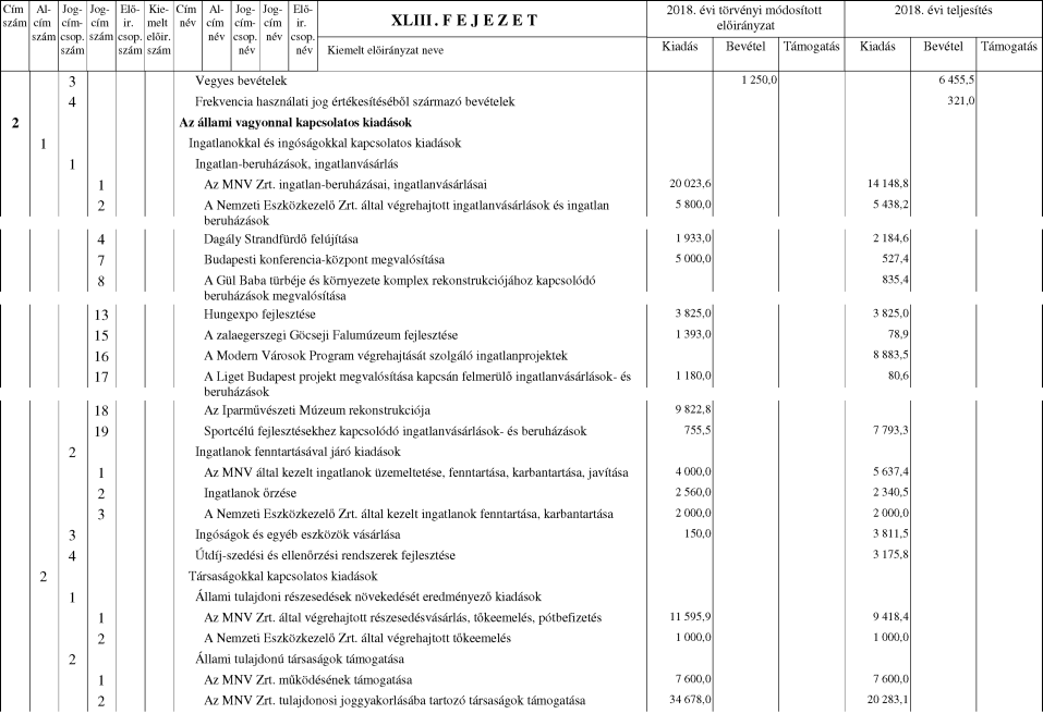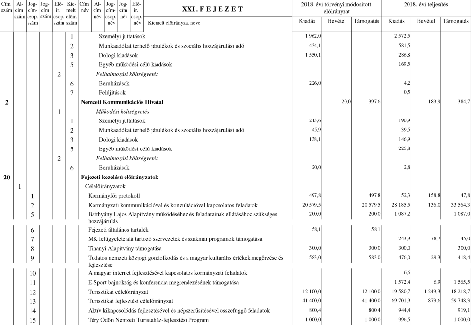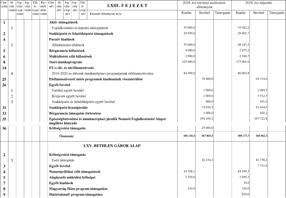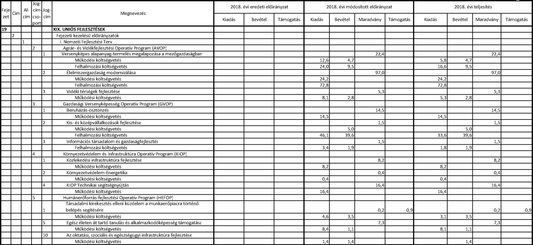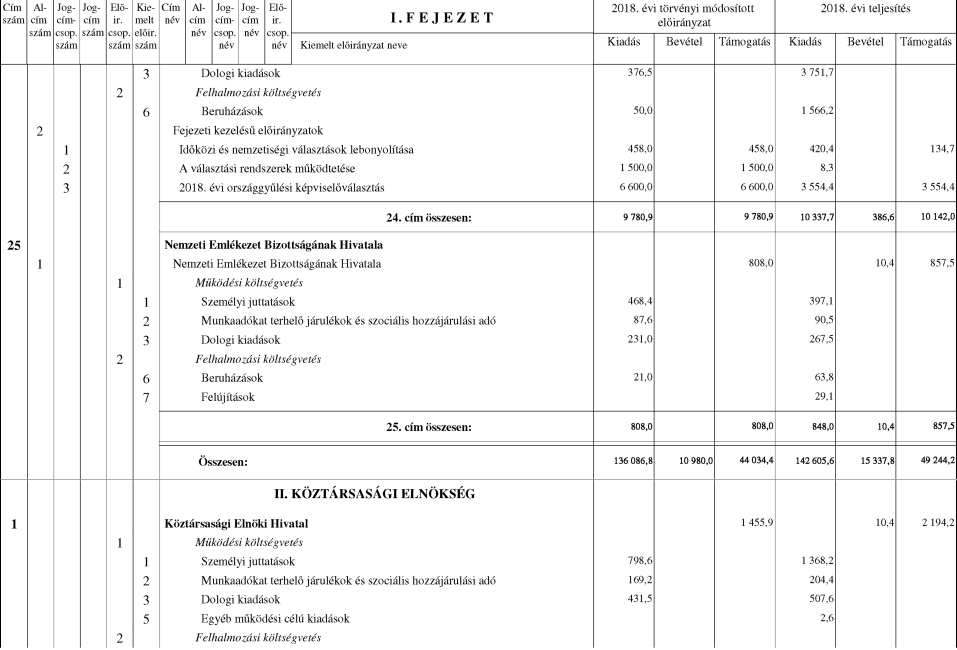 A 2018. ÉVI KÖZPONTI KÖLTSÉGVETÉS VÉGREHAJTÁSA