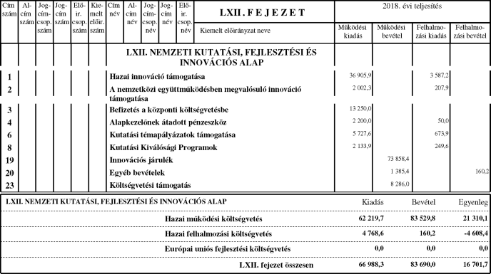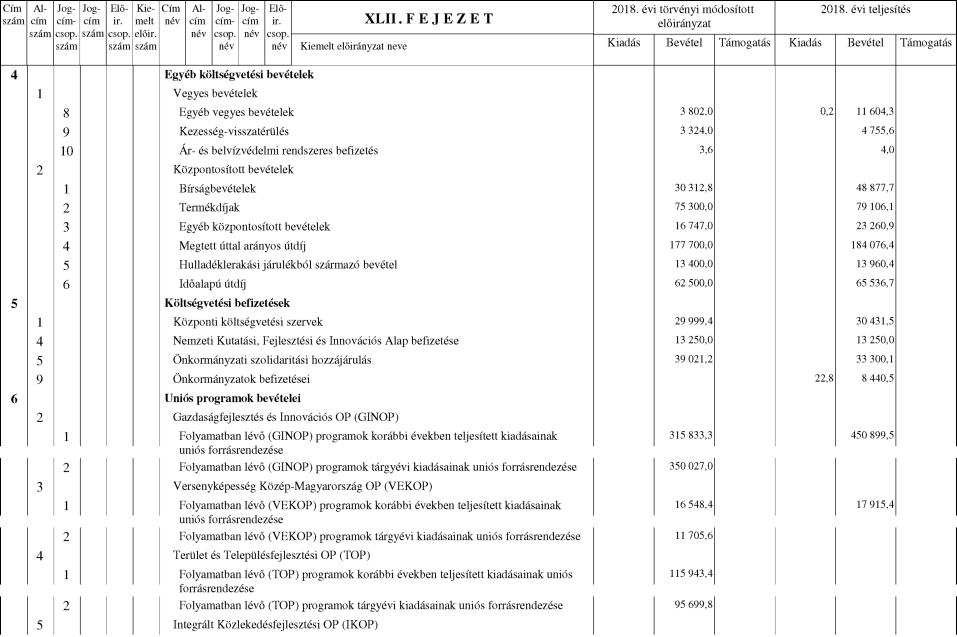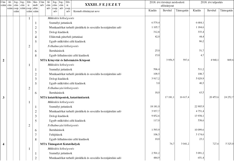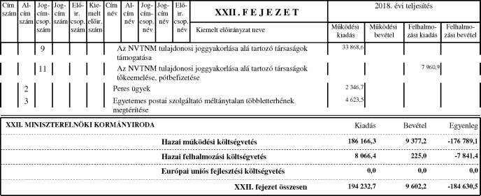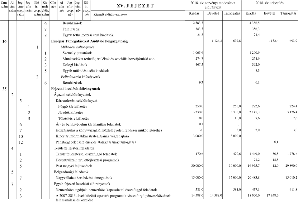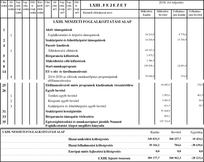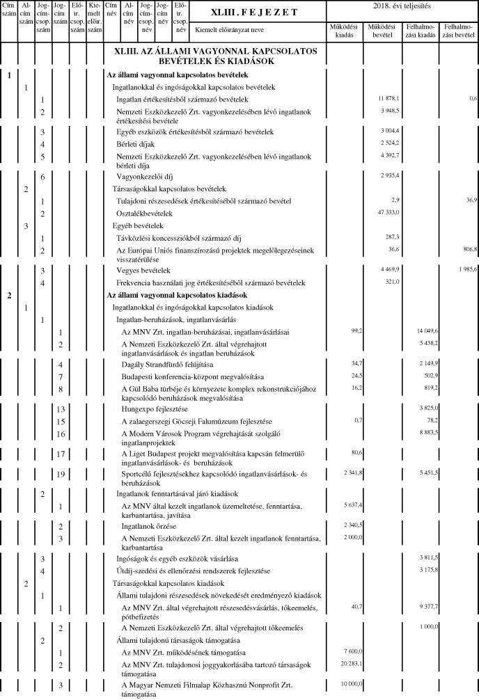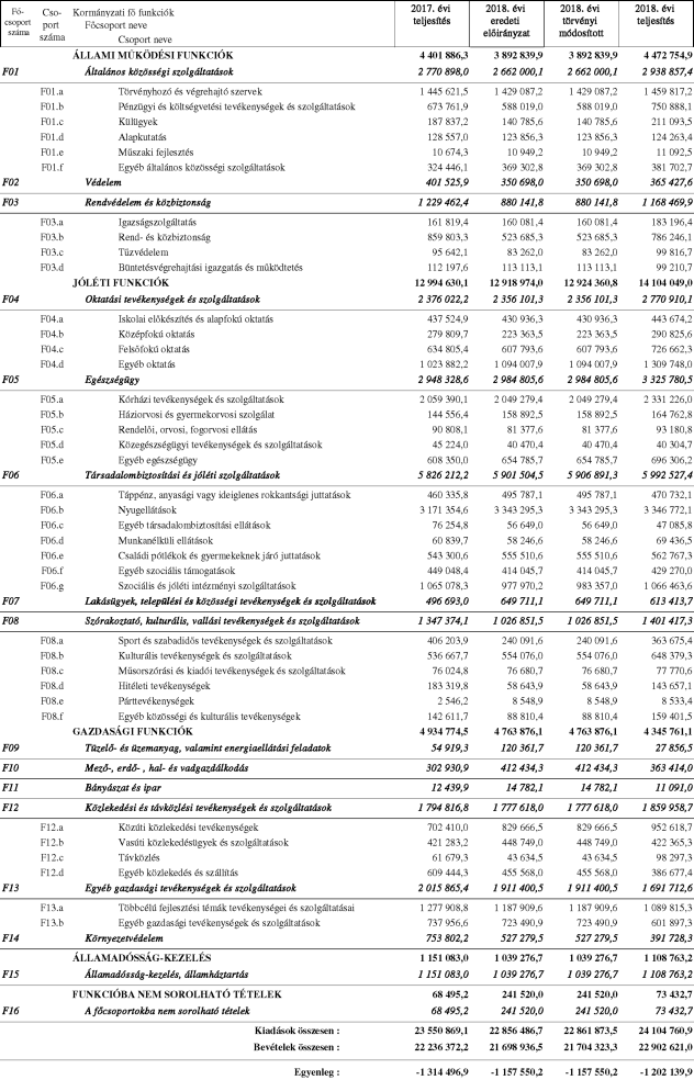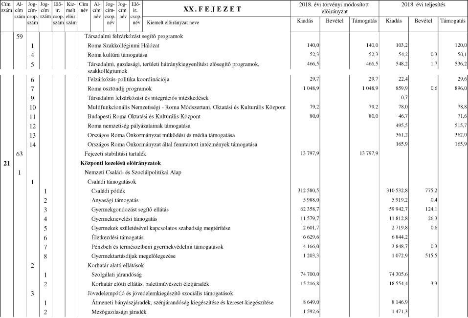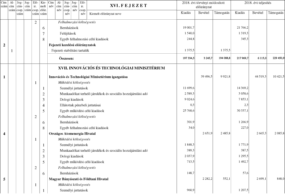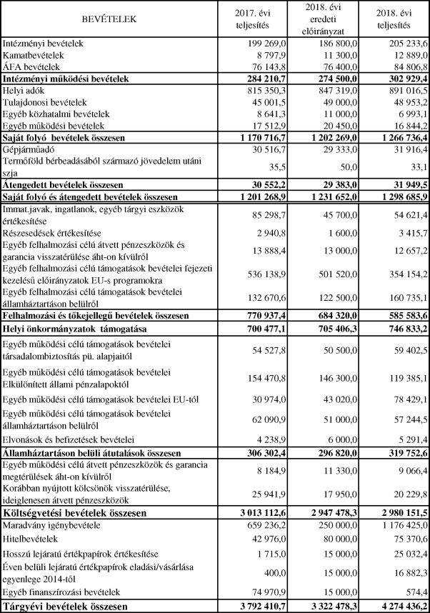 A 2018. ÉVI KÖZPONTI KÖLTSÉGVETÉS VÉGREHAJTÁSA