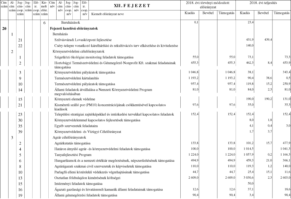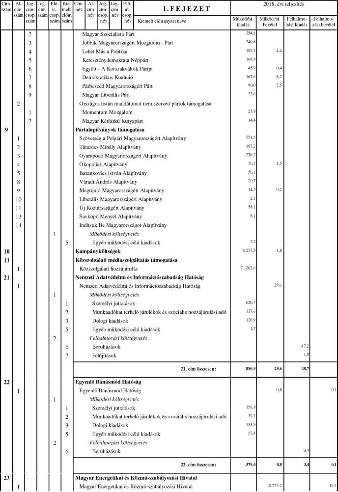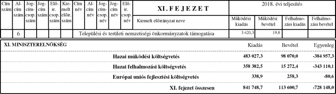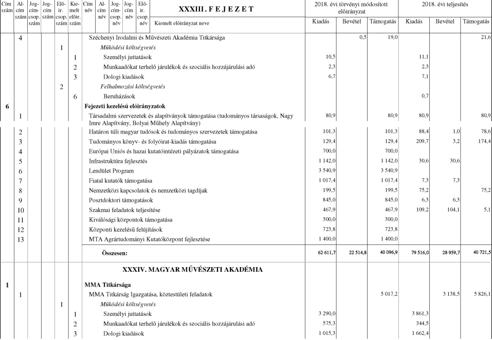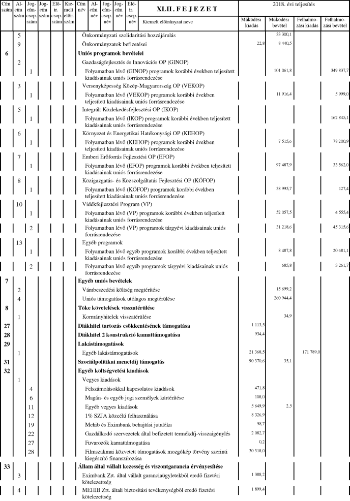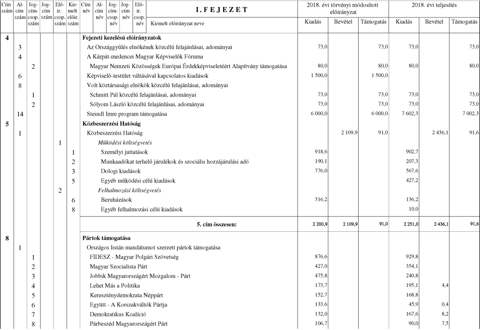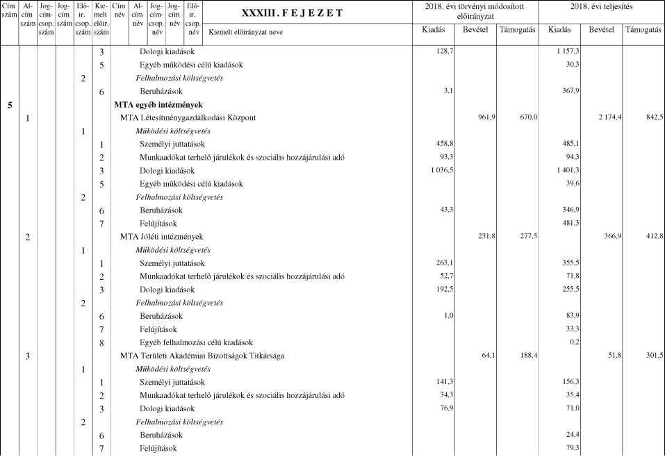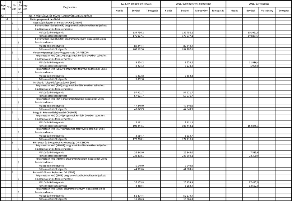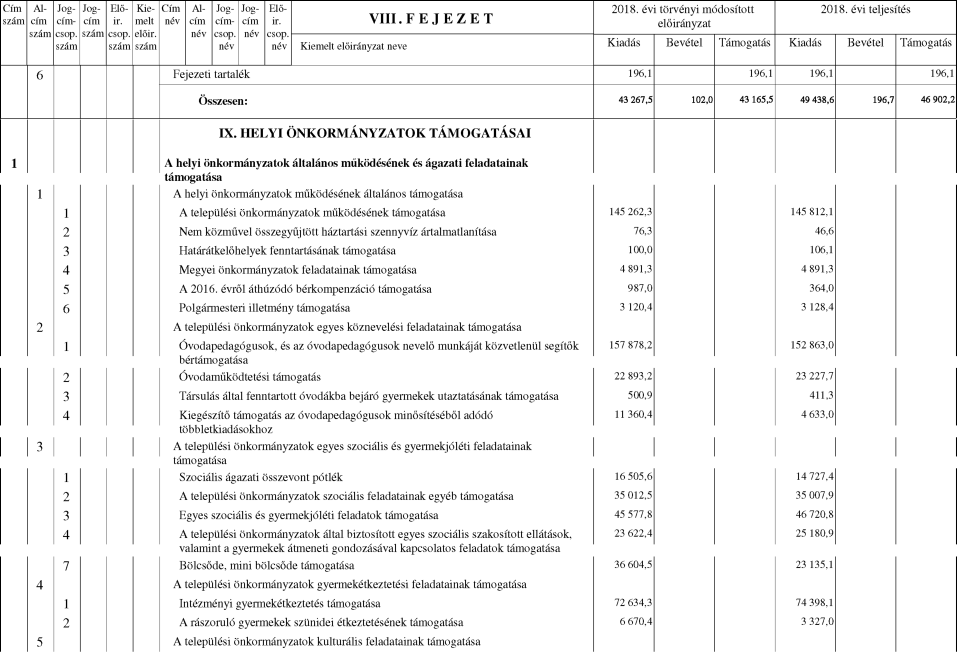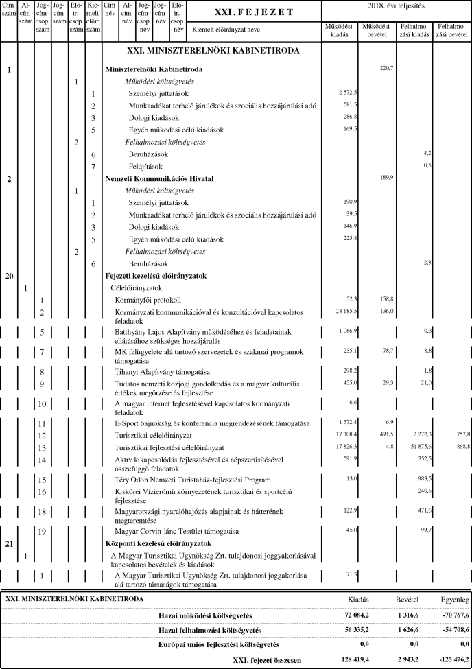 A 2018. ÉVI KÖZPONTI KÖLTSÉGVETÉS VÉGREHAJTÁSA
