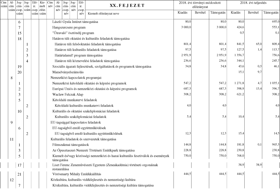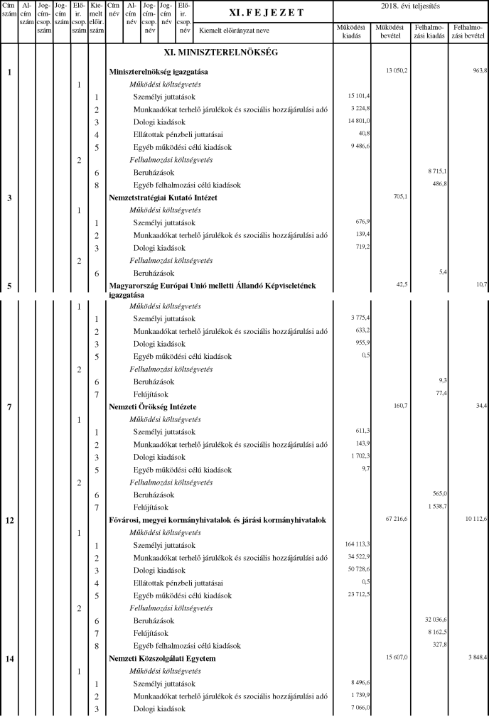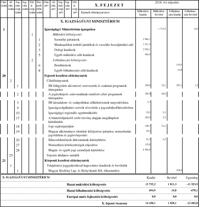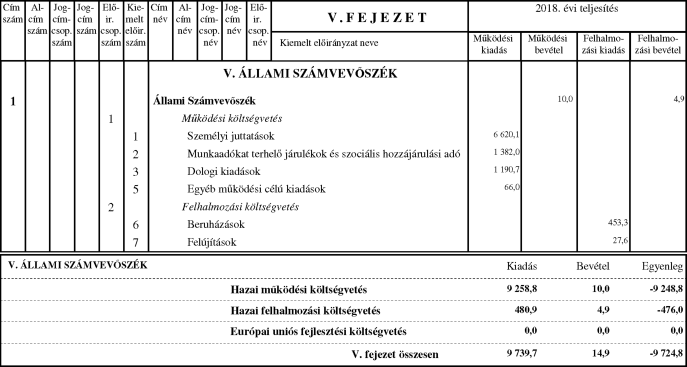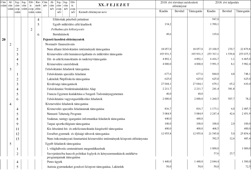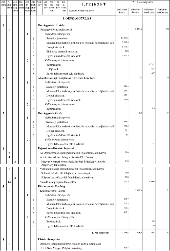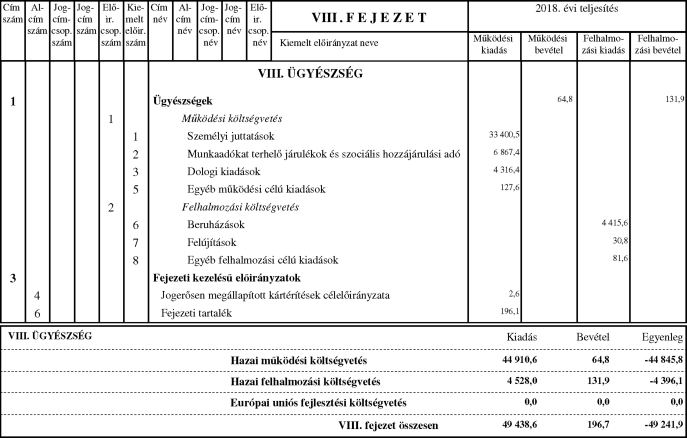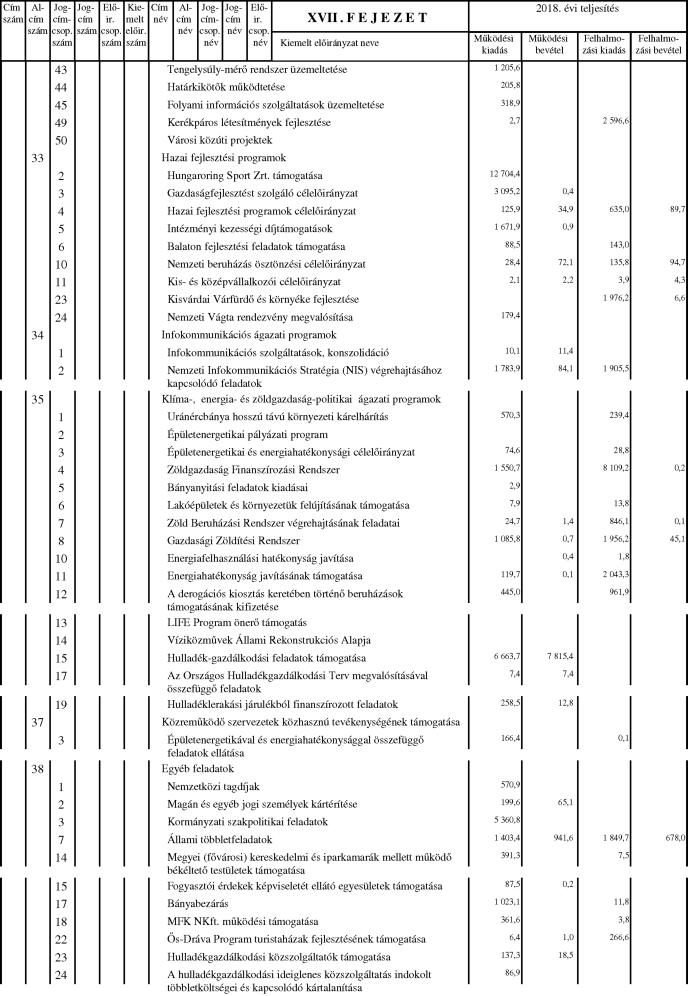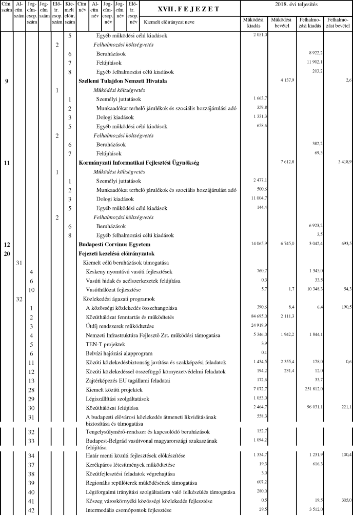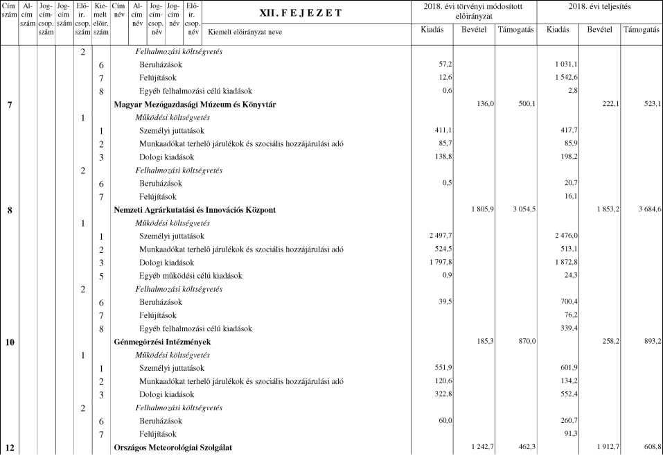 A 2018. ÉVI KÖZPONTI KÖLTSÉGVETÉS VÉGREHAJTÁSA