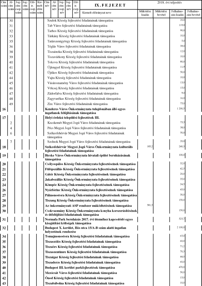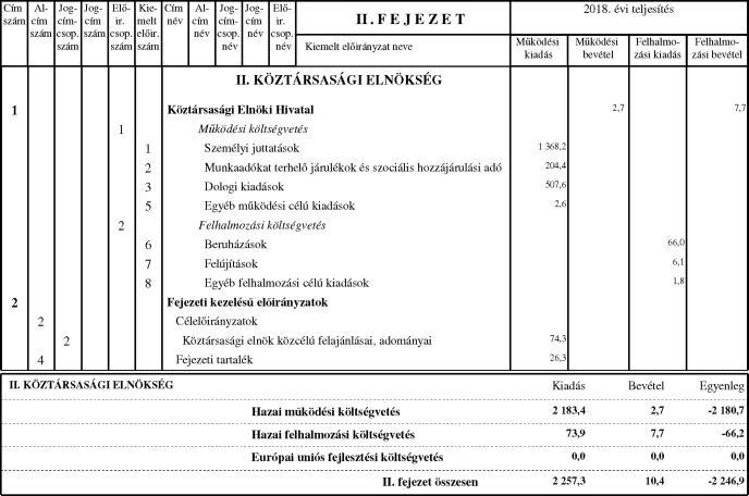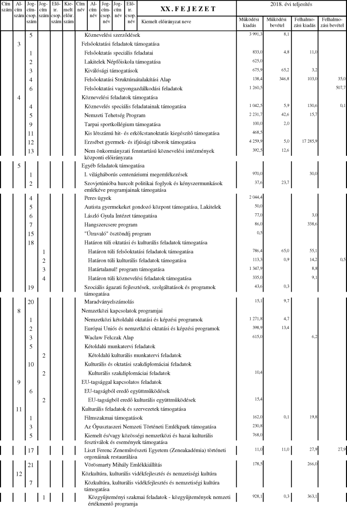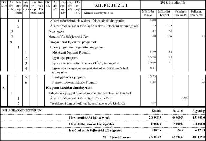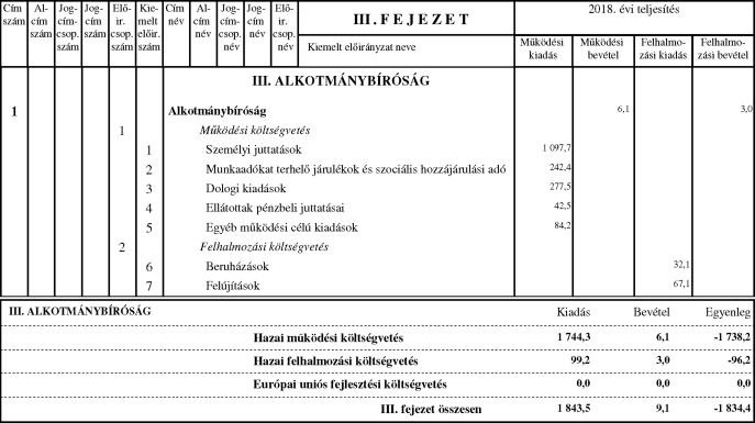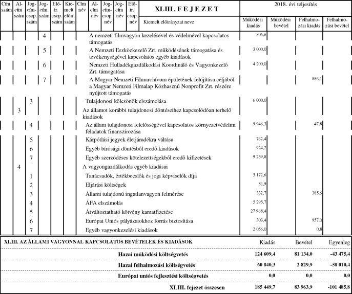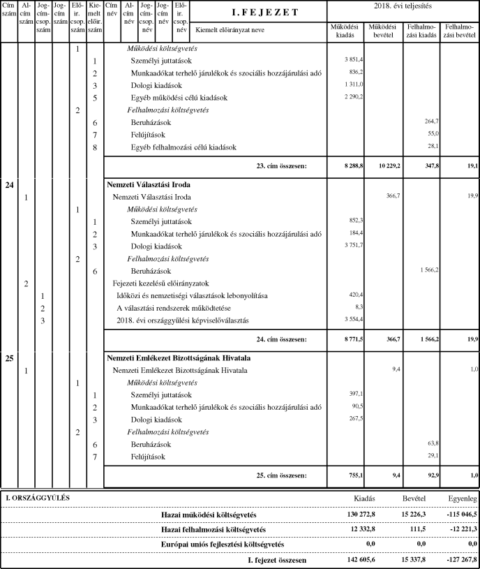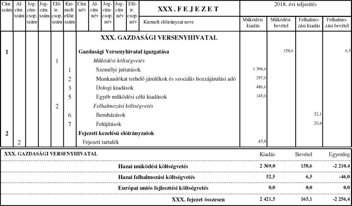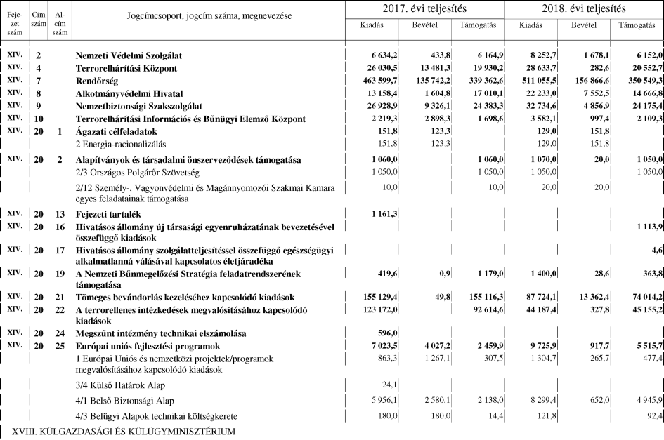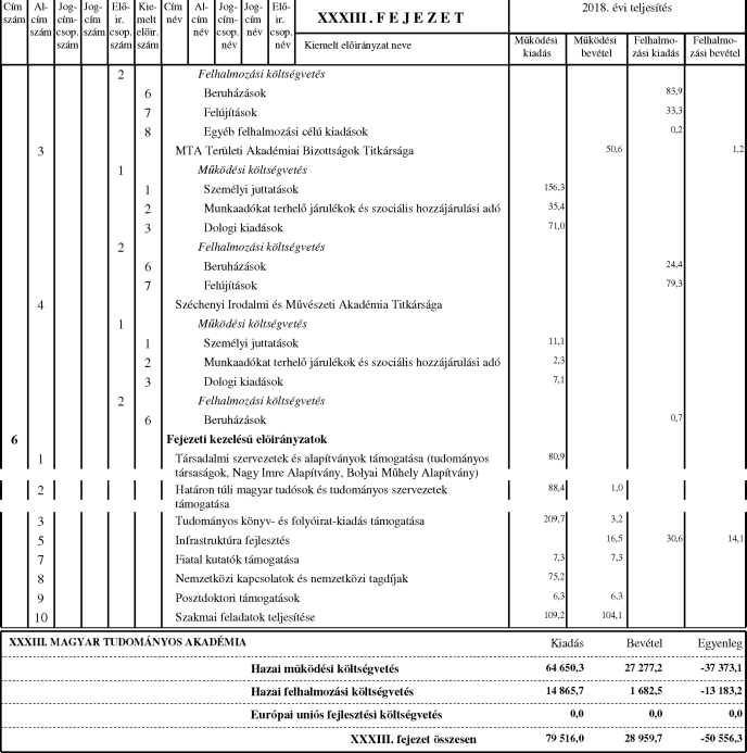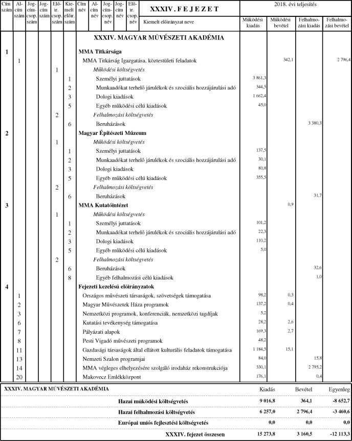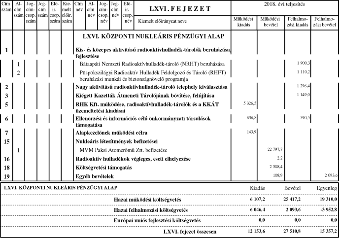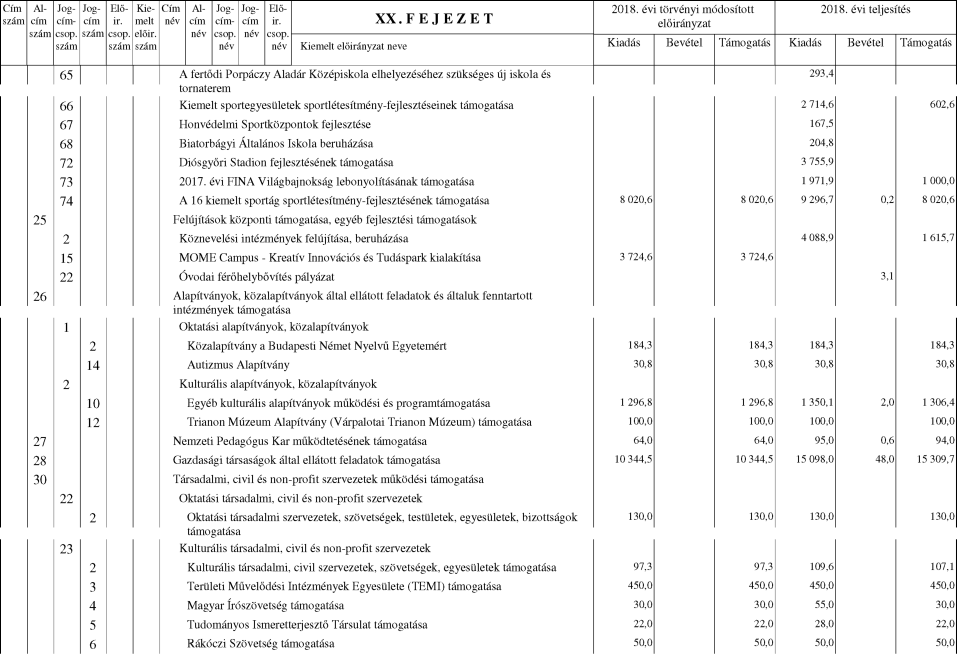 A 2018. ÉVI KÖZPONTI KÖLTSÉGVETÉS VÉGREHAJTÁSA