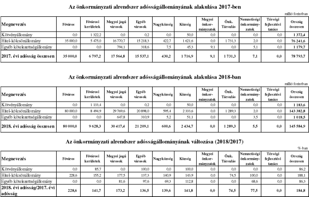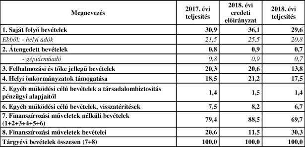 Az önkormányzati alrendszer folyó és felhalmozási mérlegeinek alakulása 2017 - 2018. években