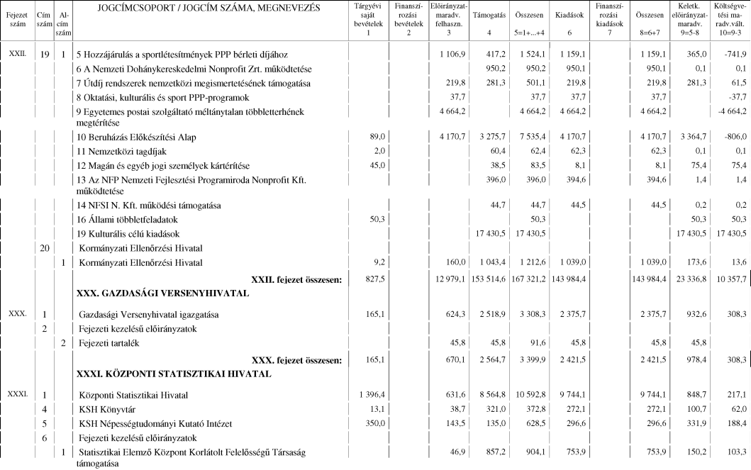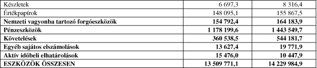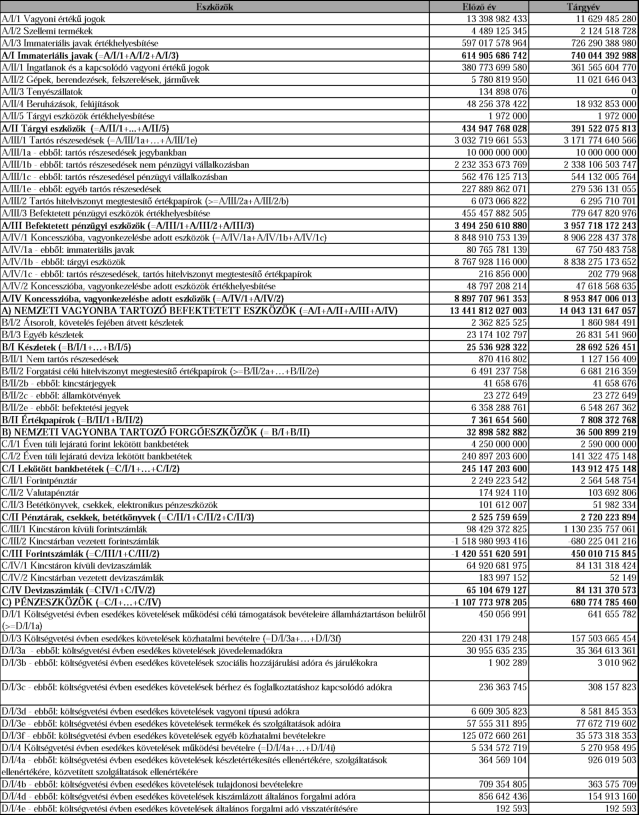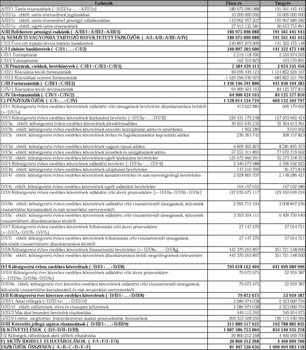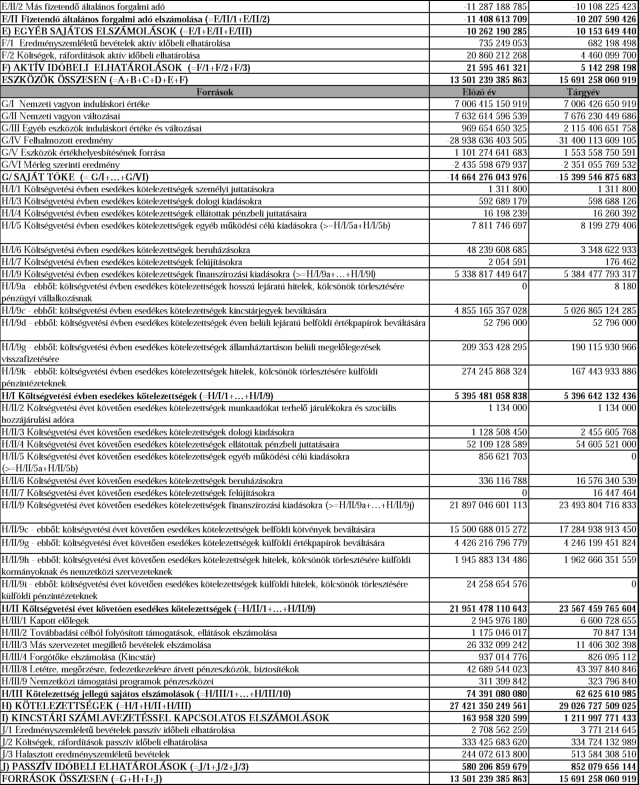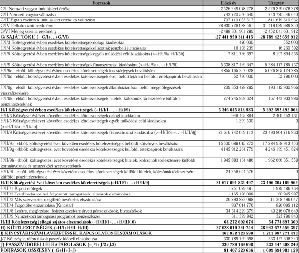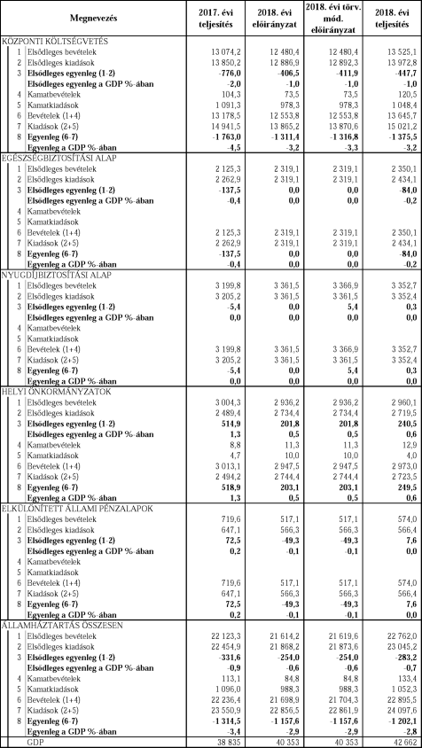 1. A főösszegek, az egyenleg és az államadósság értéke