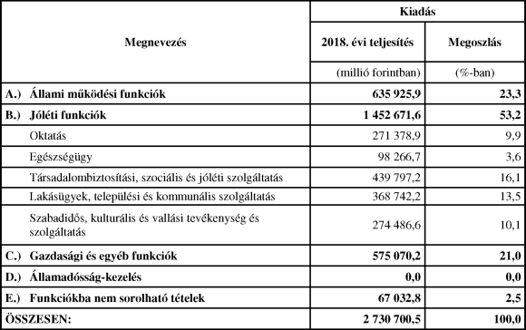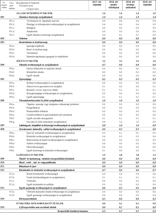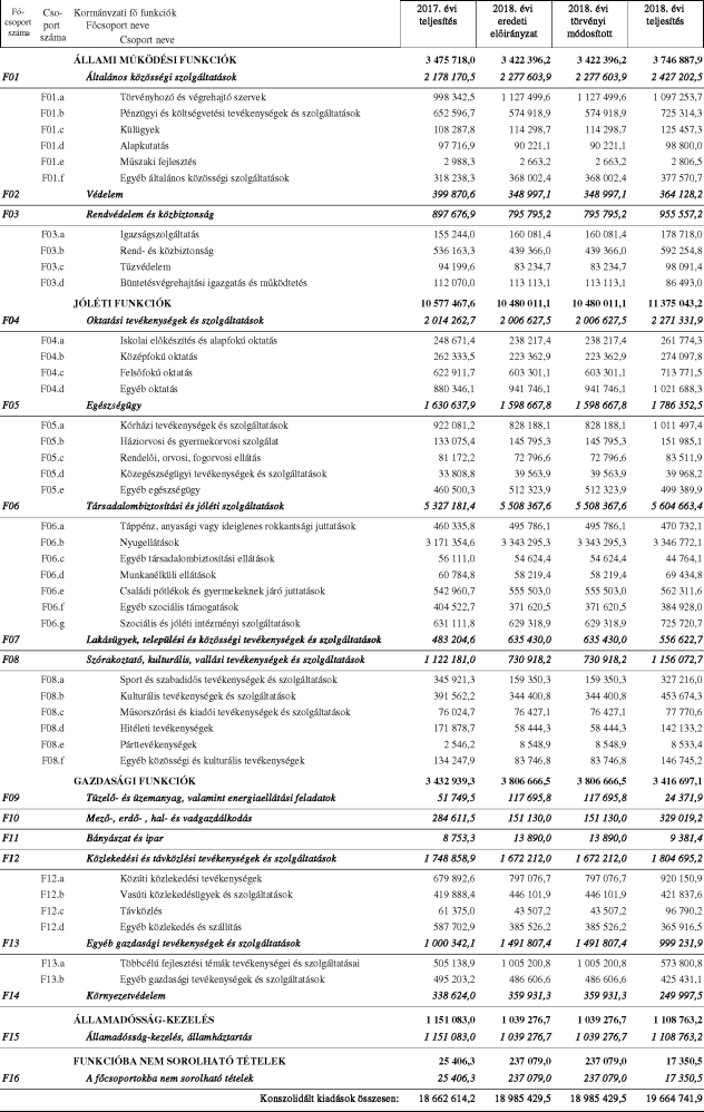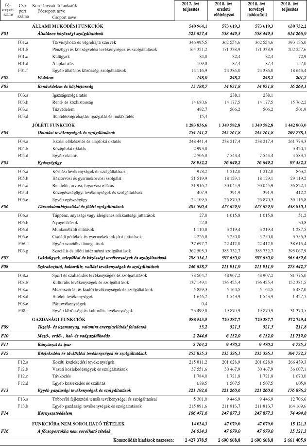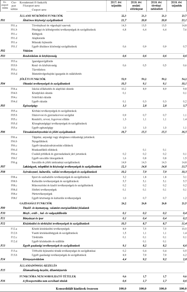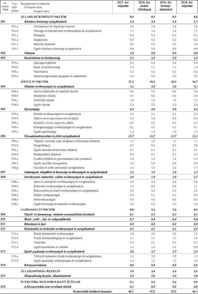 Az államháztartás konszolidált funkcionális kiadásai (pénzforgalmi szemléletben)
