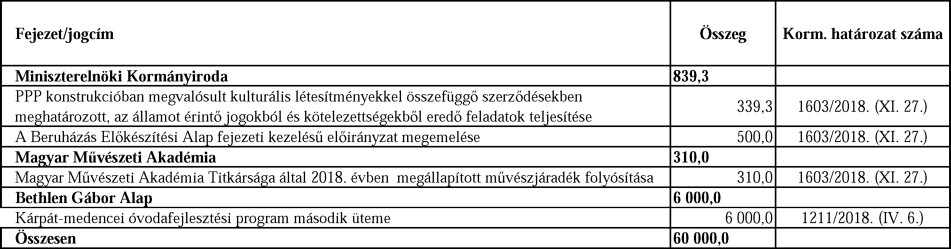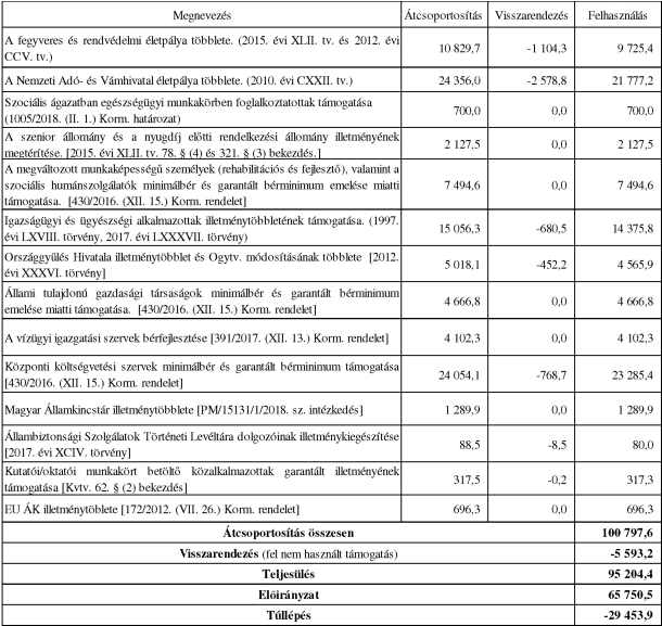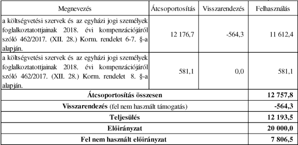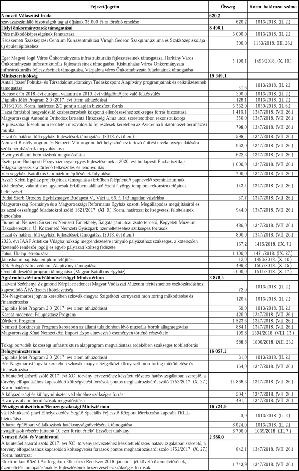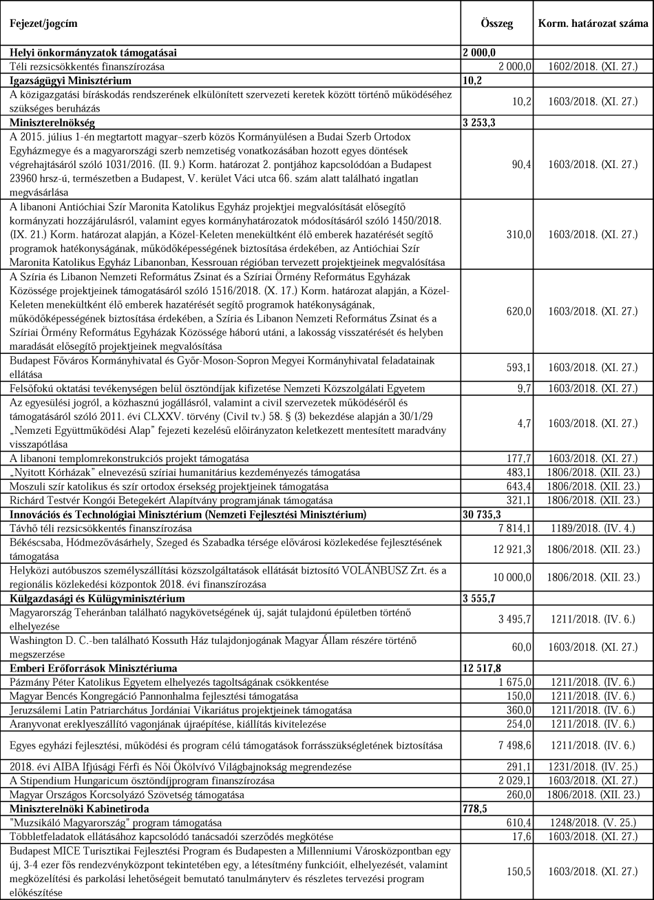 Kimutatás a Rendkívüli kormányzati intézkedések előirányzat 2018. évi felhasználásáról*