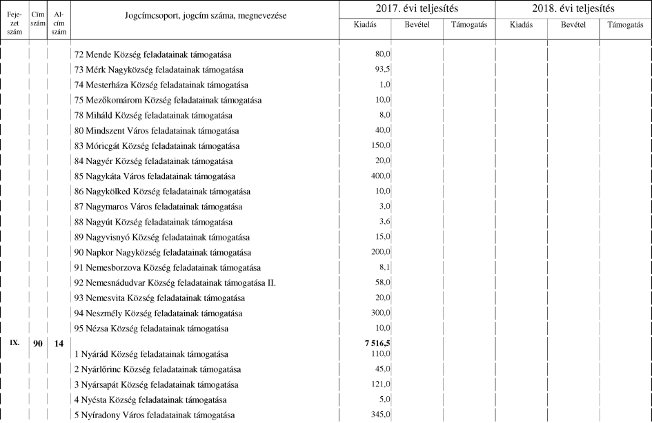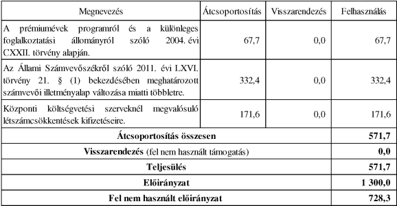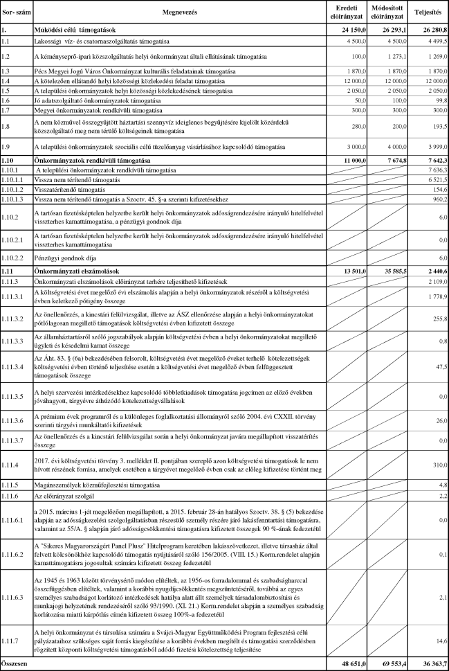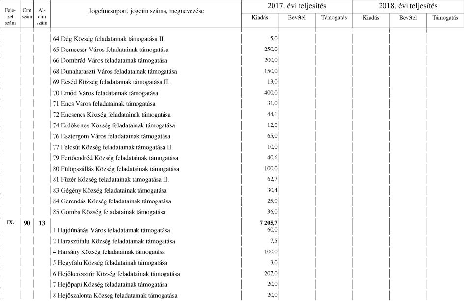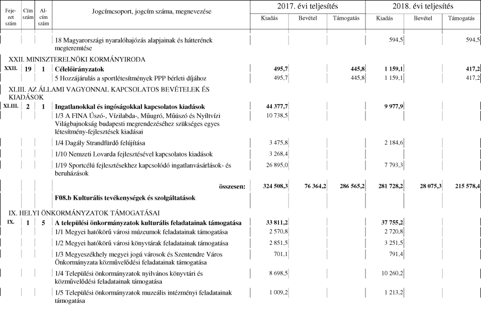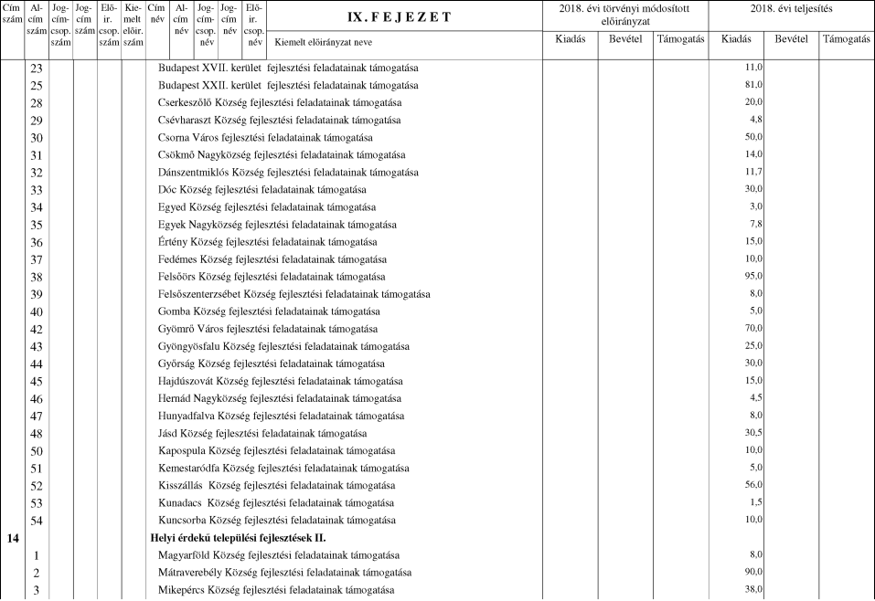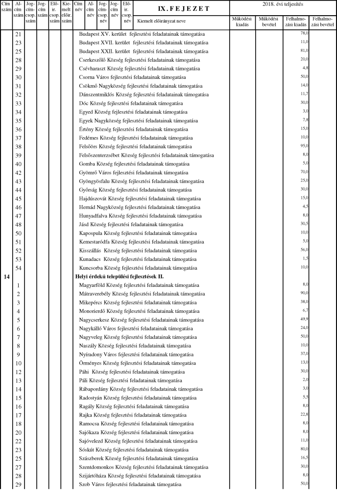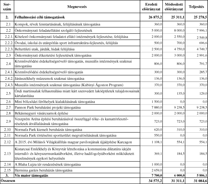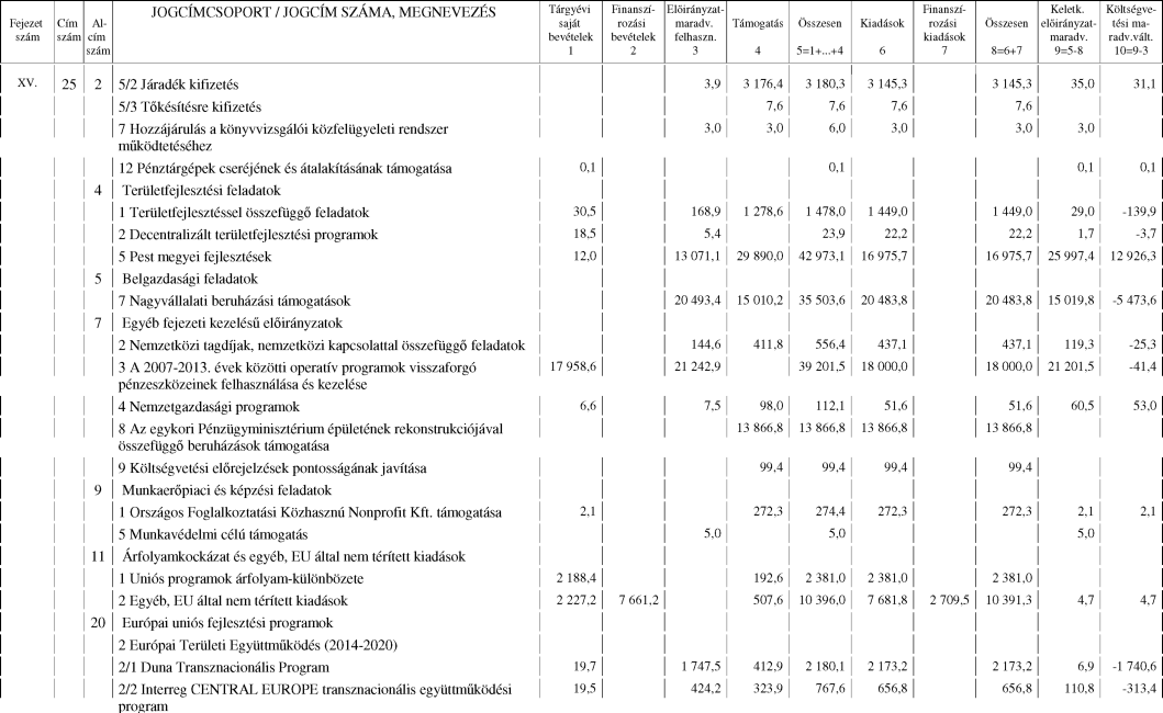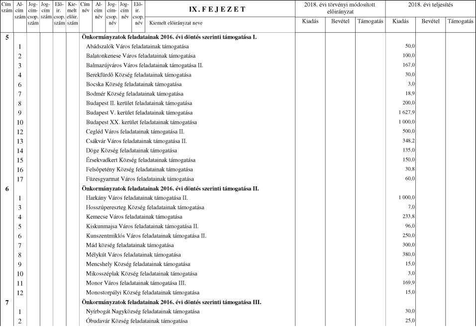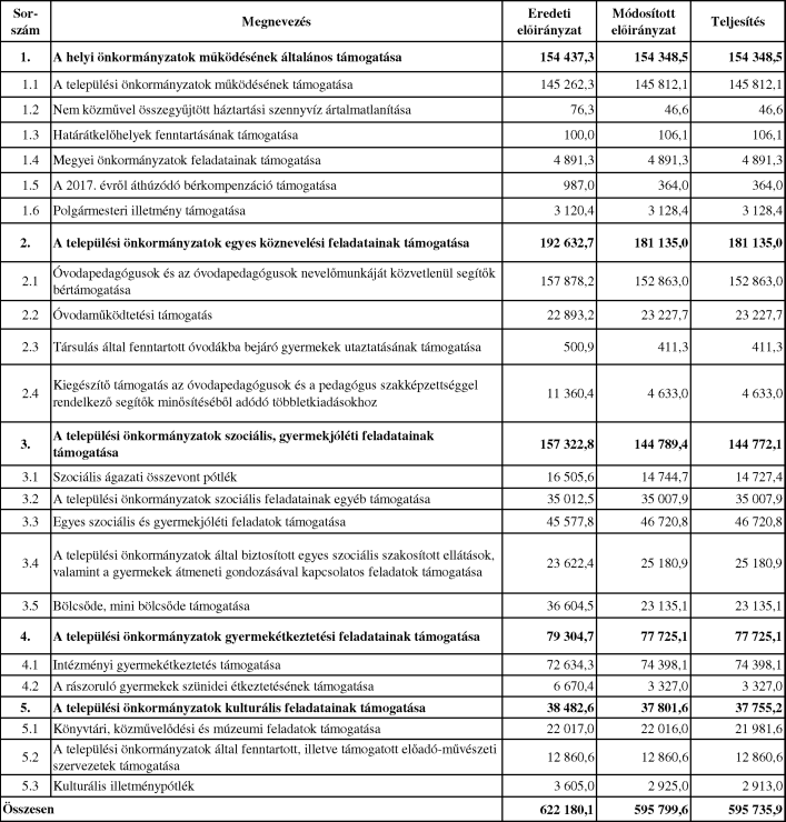 (1) Az Országgyűlés megállapítja, hogy a helyi önkormányzatok év közben 14 255,4 millió forint összegben igényeltek - a kincstár területi szervei javaslataira is figyelemmel - a helyi önkormányzatok általános működéséhez és ágazati feladataihoz kapcsolódó támogatásokat. A helyi önkormányzatok együttesen 8 159,9 millió forint összegben mondtak le év közben e forrásokról, valamint a Kvtv. 2. melléklet Kiegészítő szabályok 2. pont c) alpontja szerinti, önkormányzati körön kívülre történő feladatátadás következtében 182,1 millió forint összegben nem jogosultak e támogatásokra, továbbá a Kvtv. 2. melléklet Kiegészítő szabályok 2. pont c) alpontja szerinti, önkormányzati körön kívülről történő feladatátvétel miatt 12,1 millió forinttal ugyanezen előirányzataik megnövekedtek.
