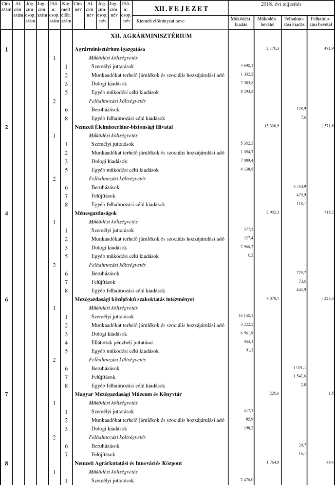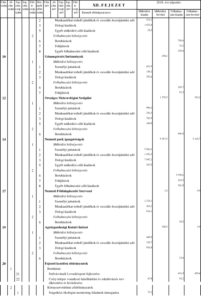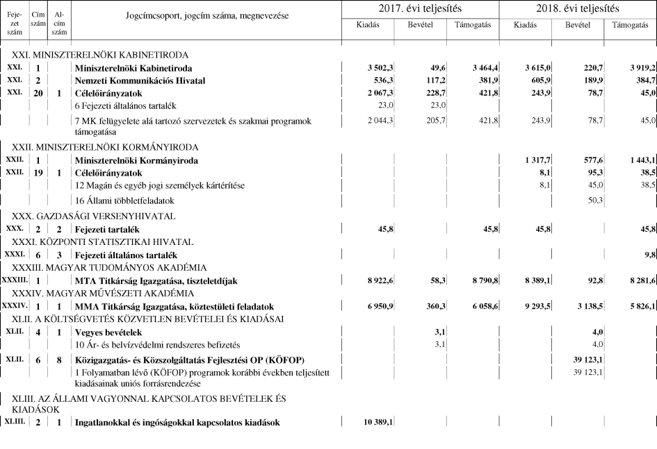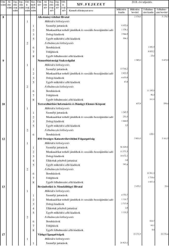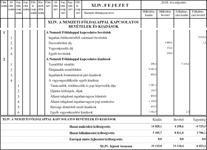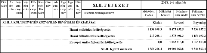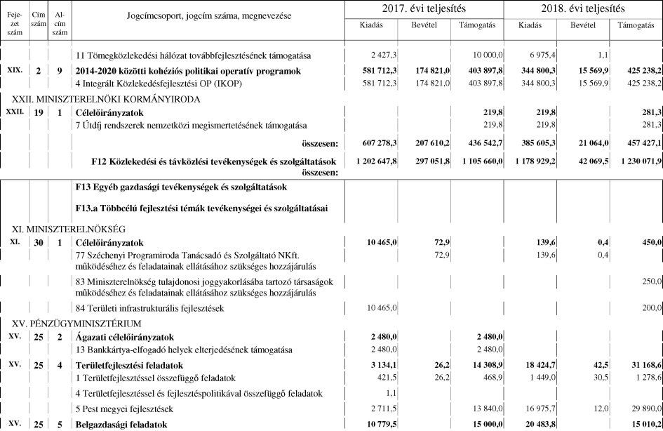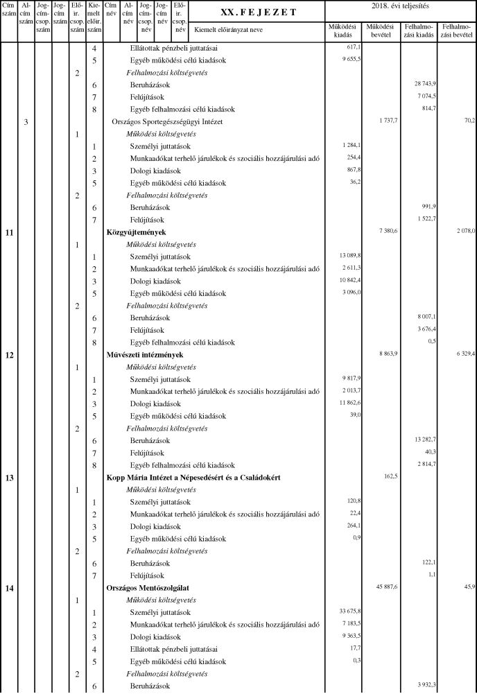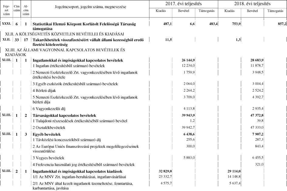 A központi alrendszer kiadási és bevételi előirányzatainak teljesítését az 1. melléklet tartalmazza a 2018. december 31-én fennálló besorolási rendnek megfelelően.