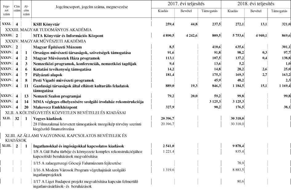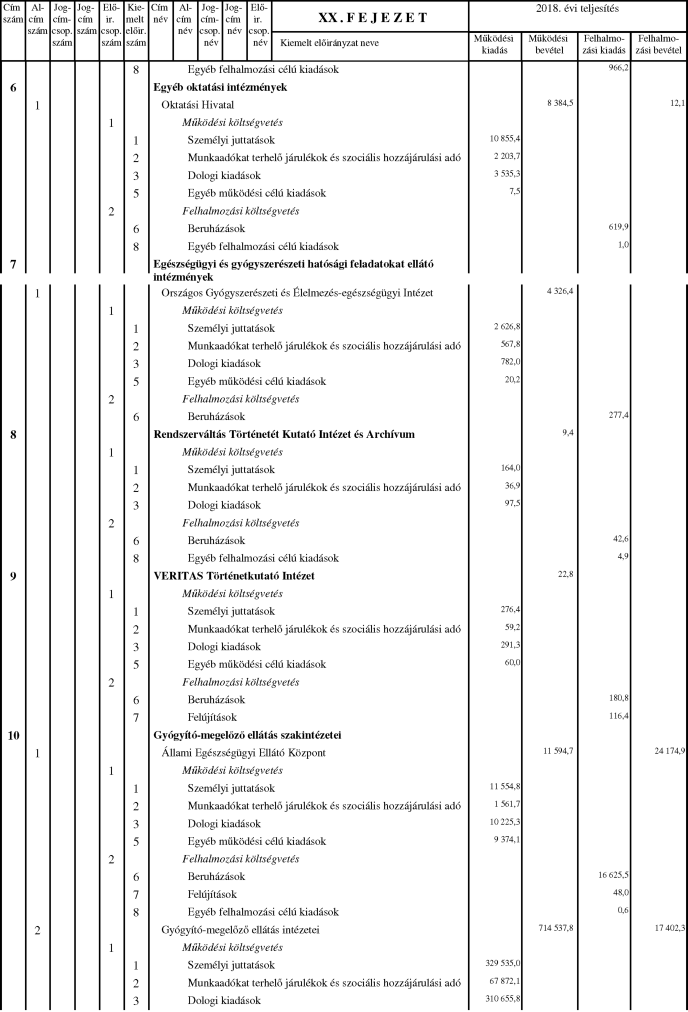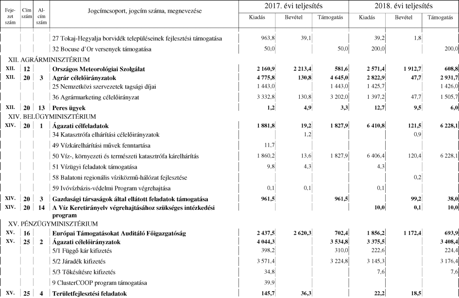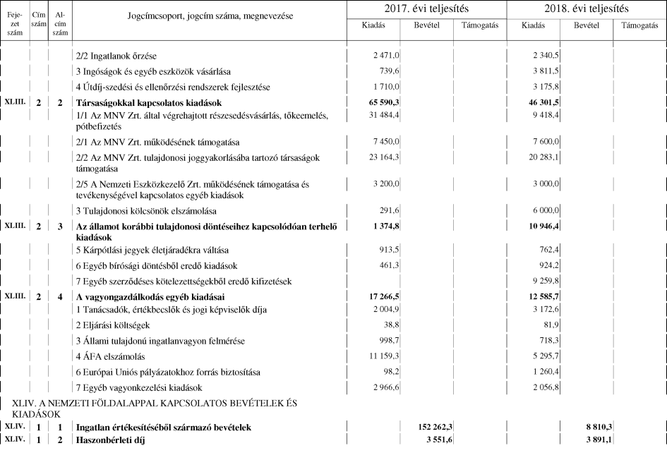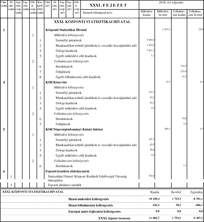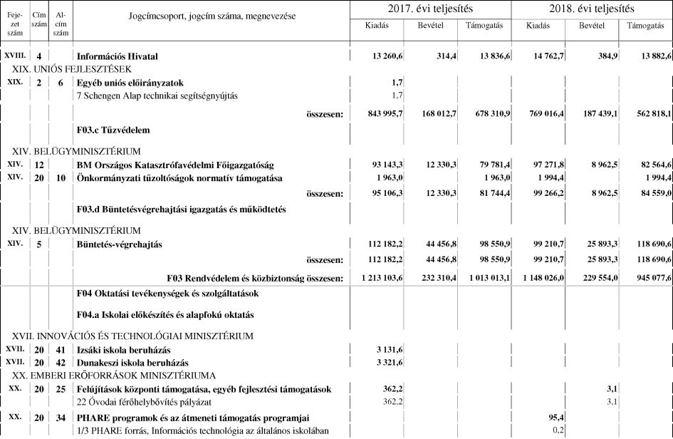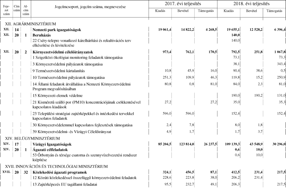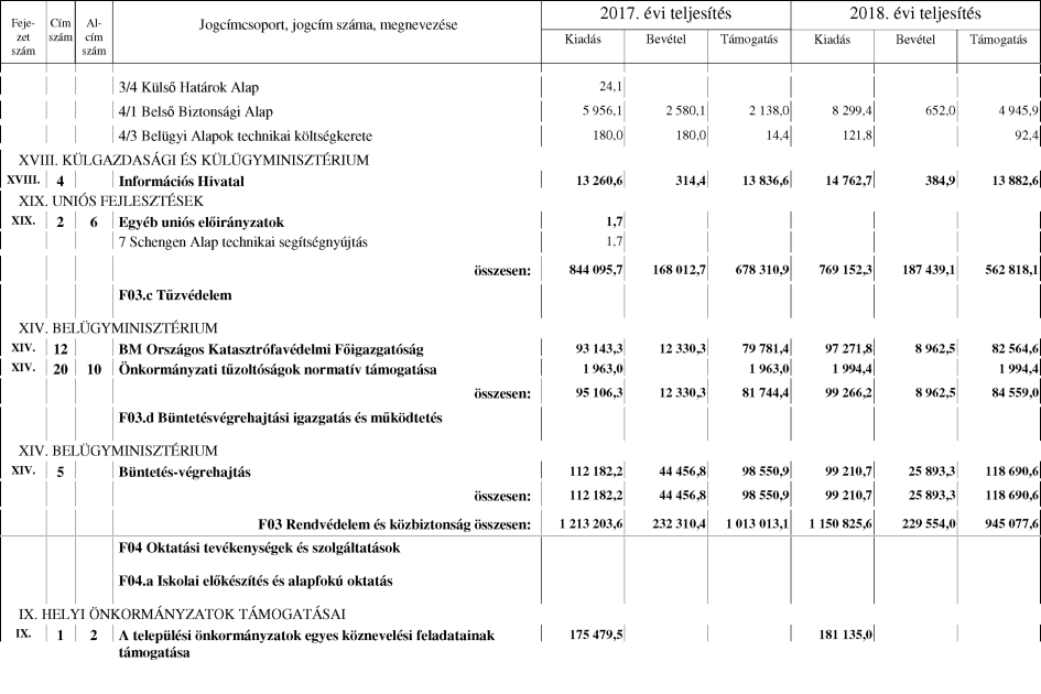 A központi alrendszer kiadási és bevételi előirányzatainak teljesítését az 1. melléklet tartalmazza a 2018. december 31-én fennálló besorolási rendnek megfelelően.