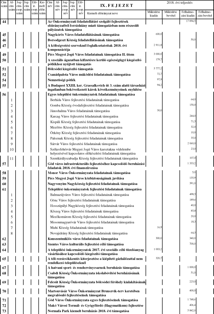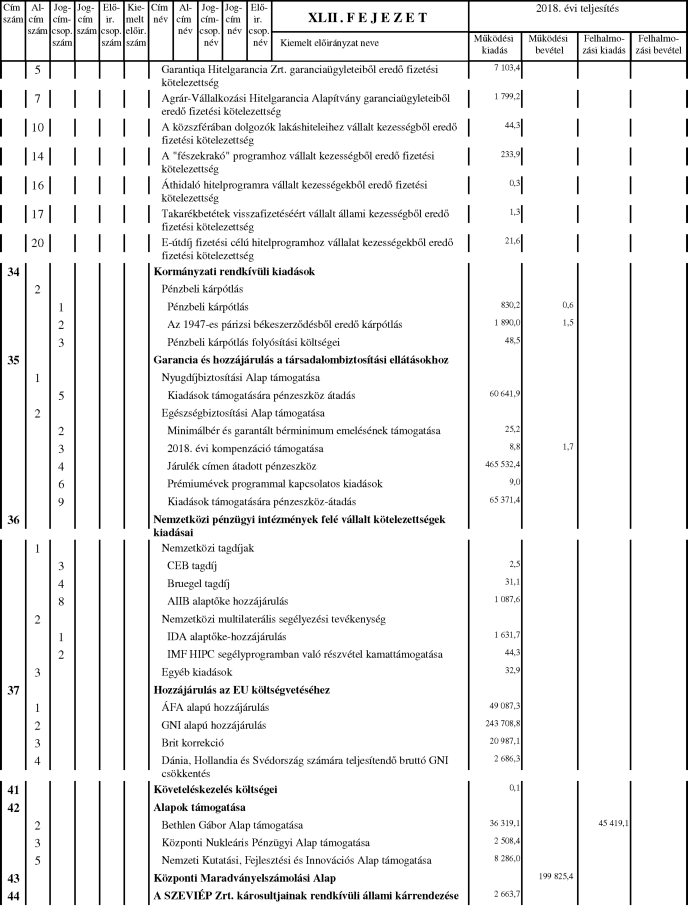 h) az EMMI fejezet a közgyógyellátás finanszírozása jogcímen 41,9 millió forintot az E. Alap részére a 10032000-00280161-00000000 "E. Alap elszámolási számla" javára térítsen meg;