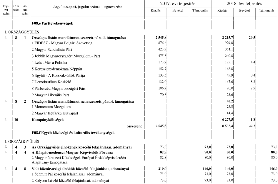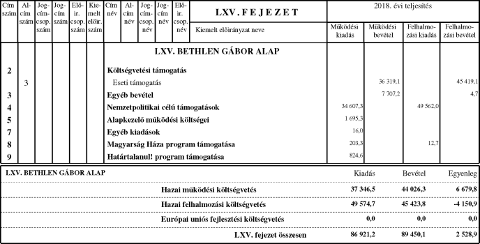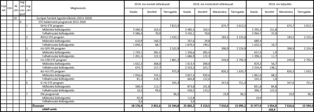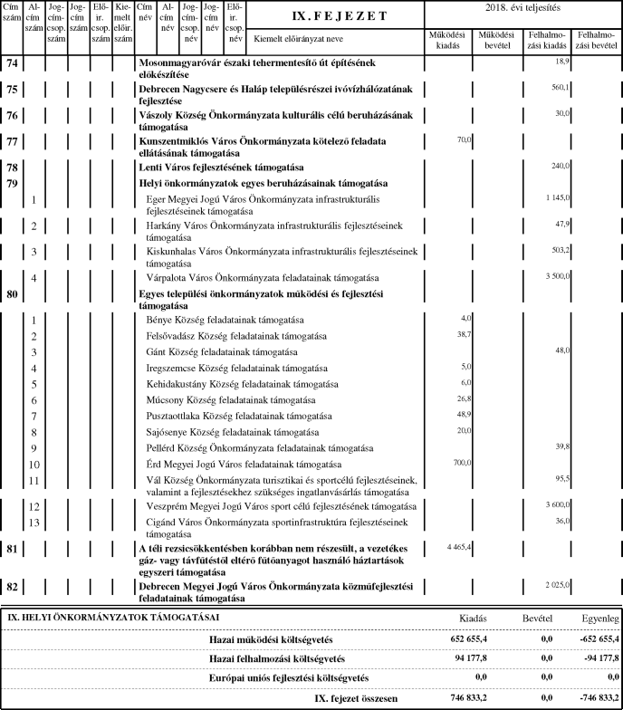 a) 2018. évi működési előirányzat-maradványa 1823,4 millió forint, amelyből a 2017. évi előirányzat-maradvány összege 207,8 millió forint,