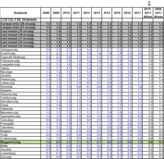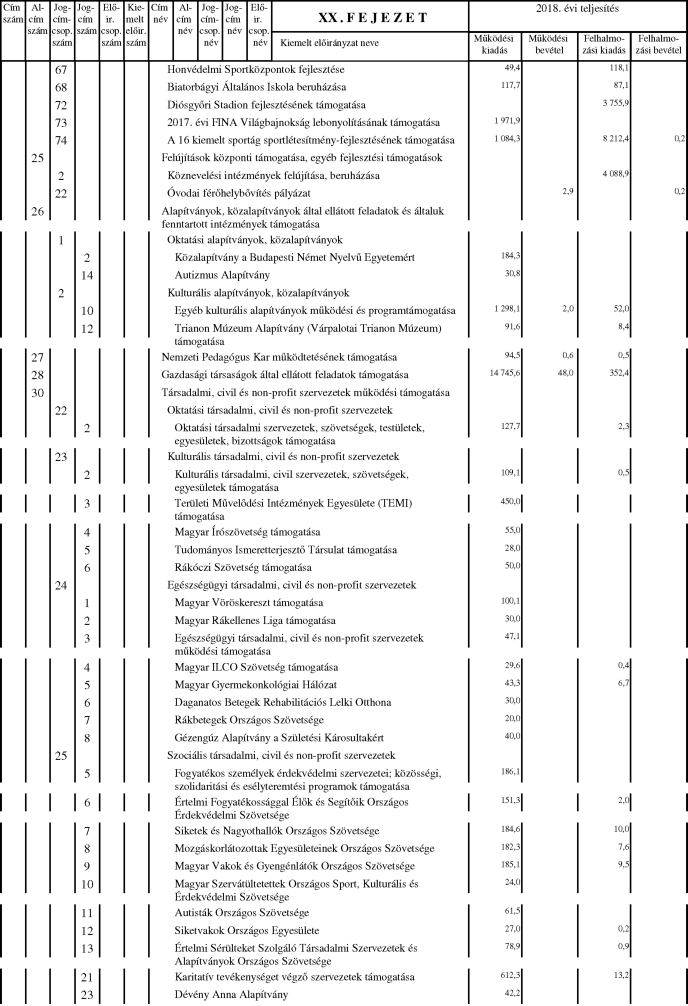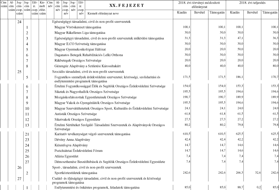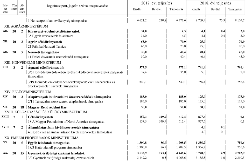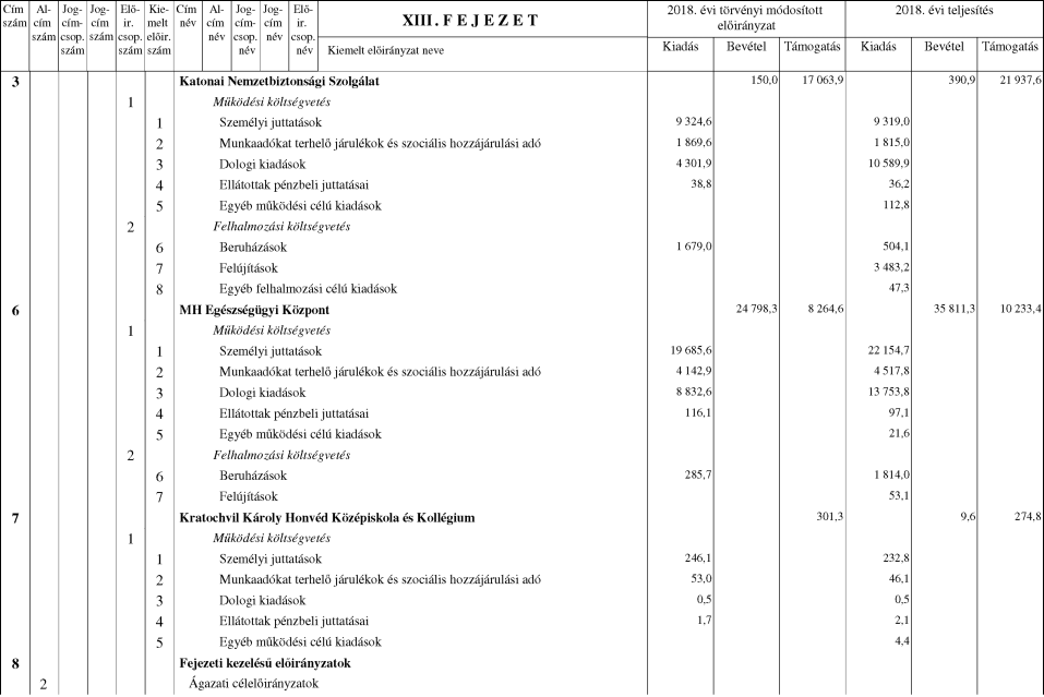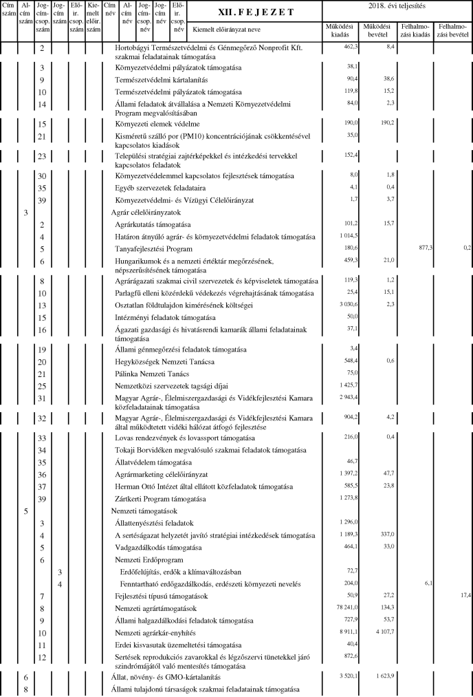 Kimutatás az Országvédelmi Alap előirányzat 2018. évi felhasználásáról fejezetenként