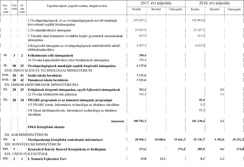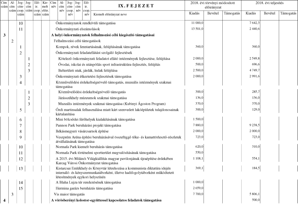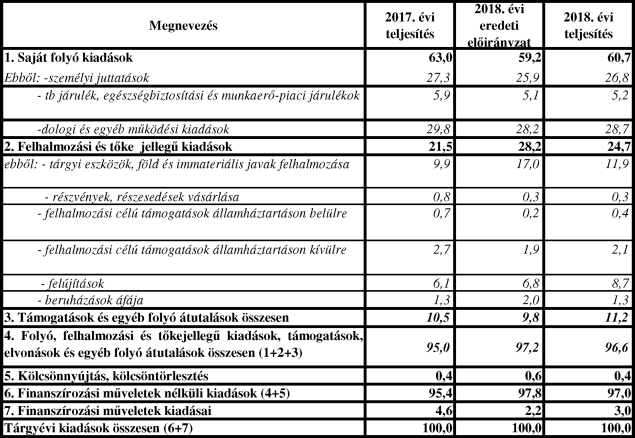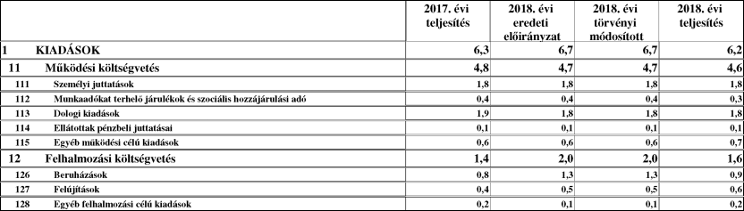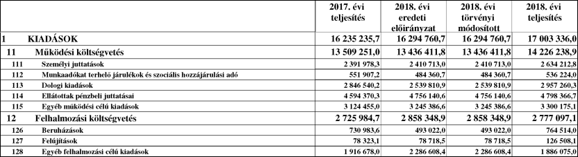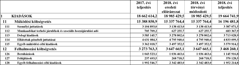 b) 2018. évi működési kiadásai 1469,5 millió forint 2017. évi előirányzatmaradvány felhasználását tartalmazzák.