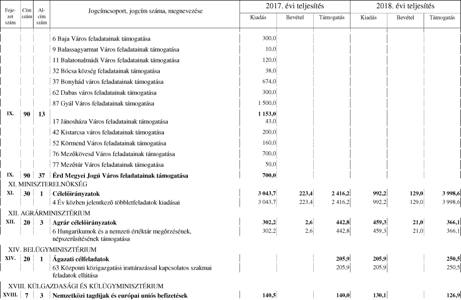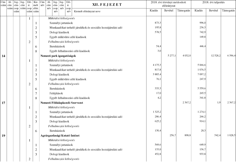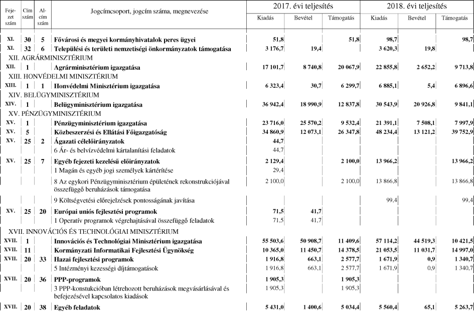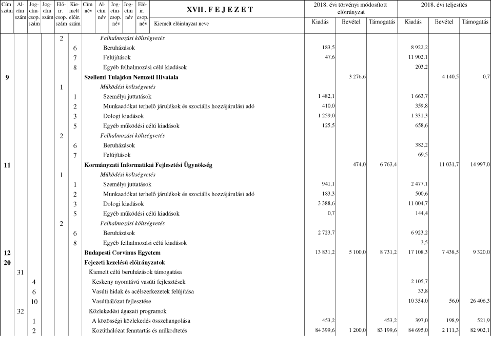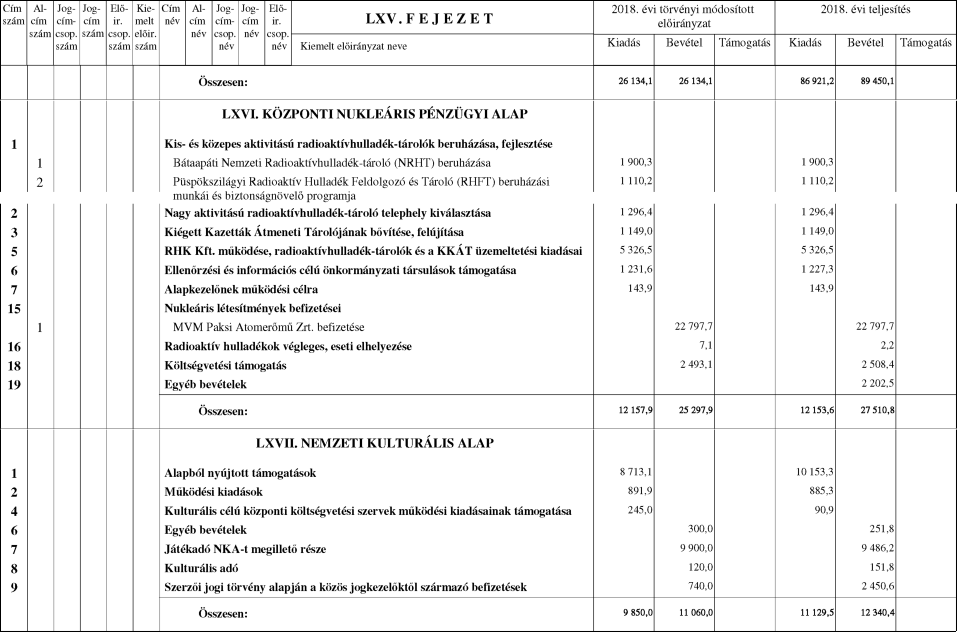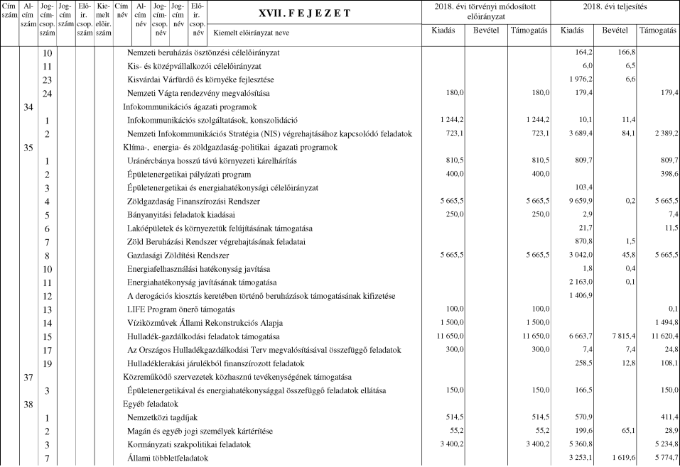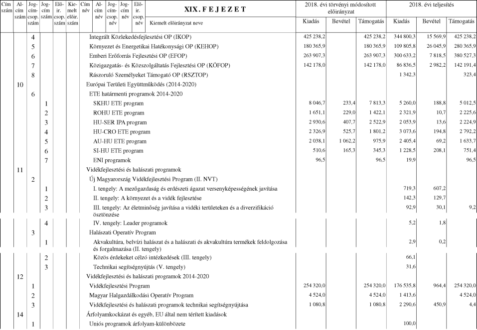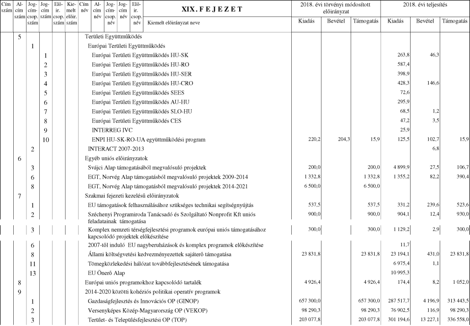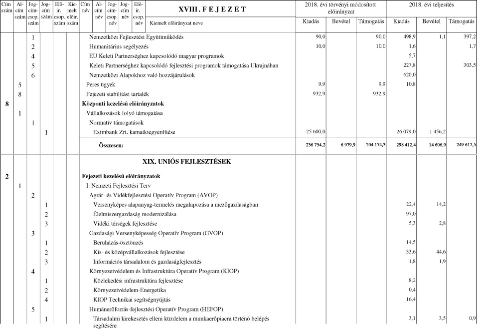 2019. évi ... törvény a Magyarország 2018. évi központi költségvetéséről szóló 2017. évi C. törvény végrehajtásáról