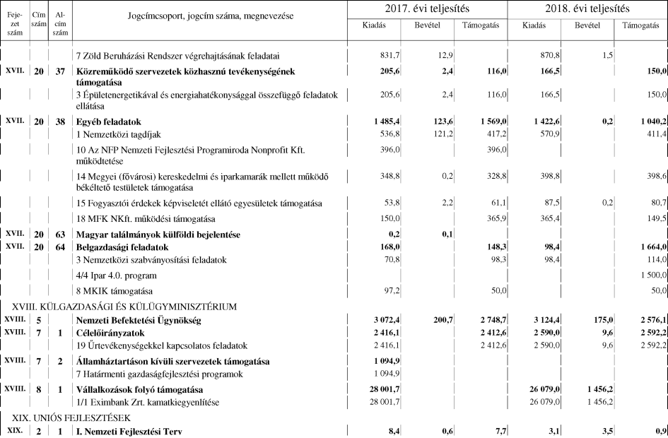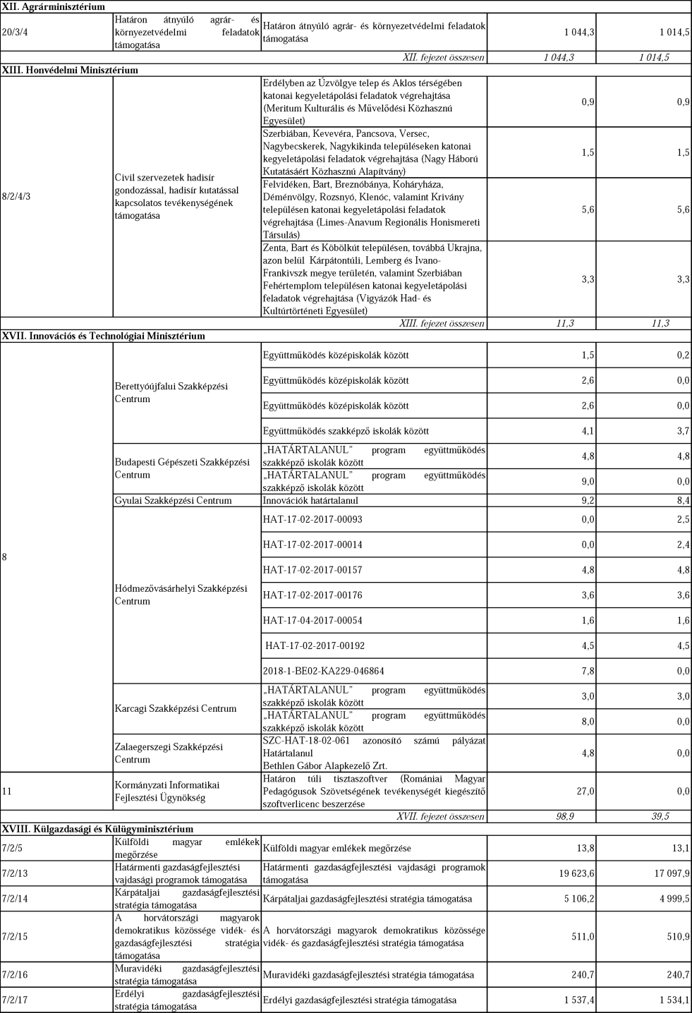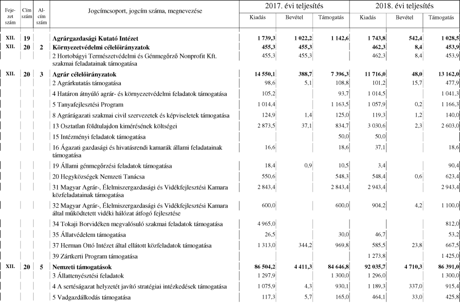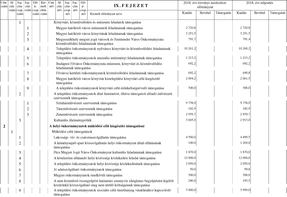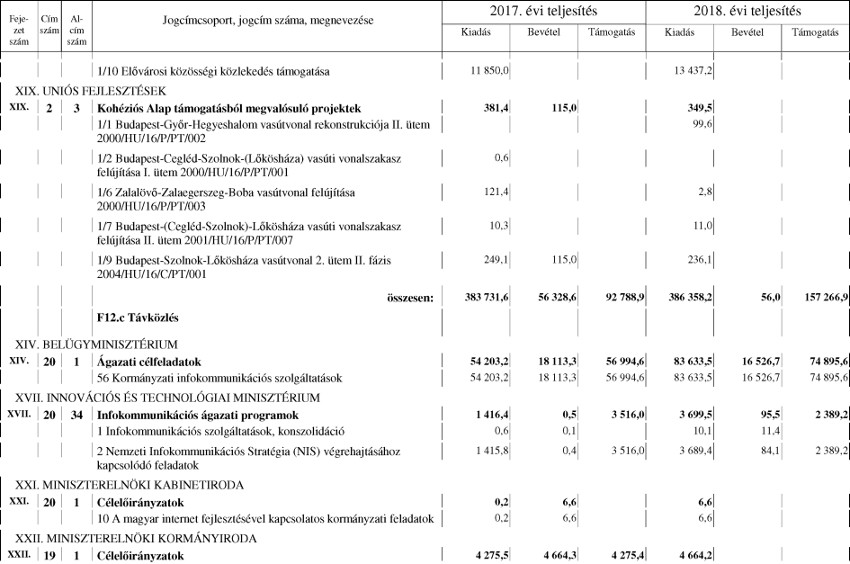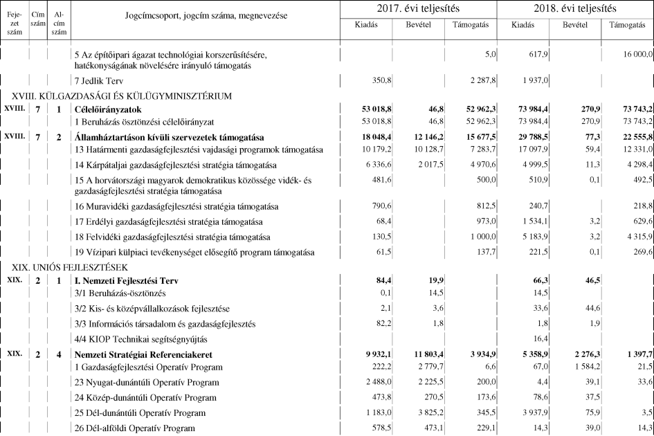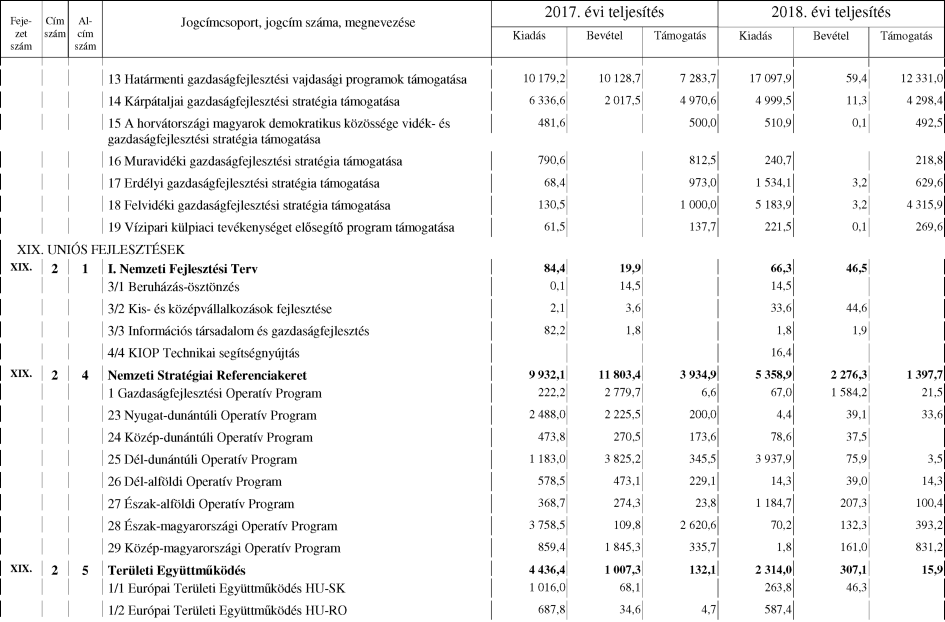 2019. évi ... törvény a Magyarország 2018. évi központi költségvetéséről szóló 2017. évi C. törvény végrehajtásáról
