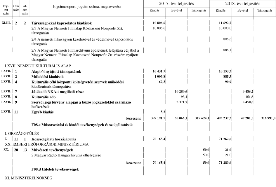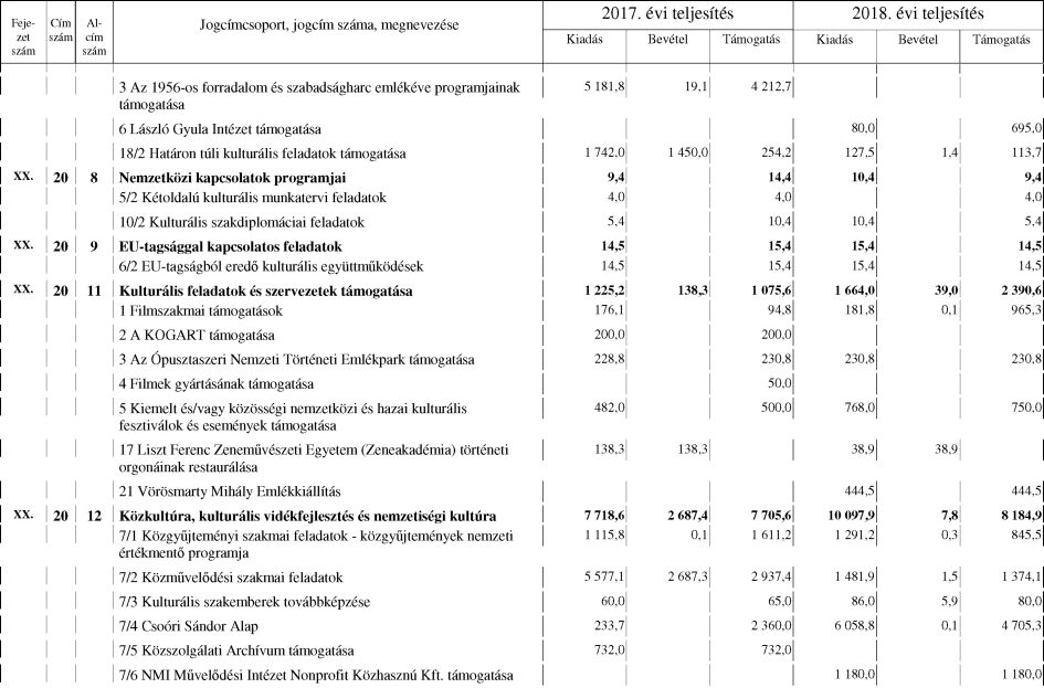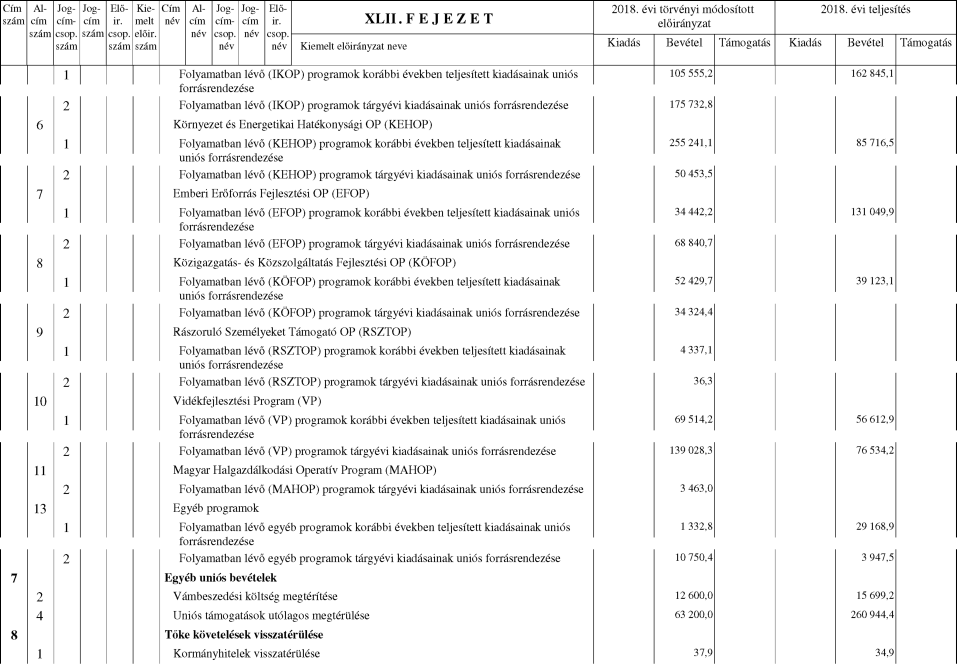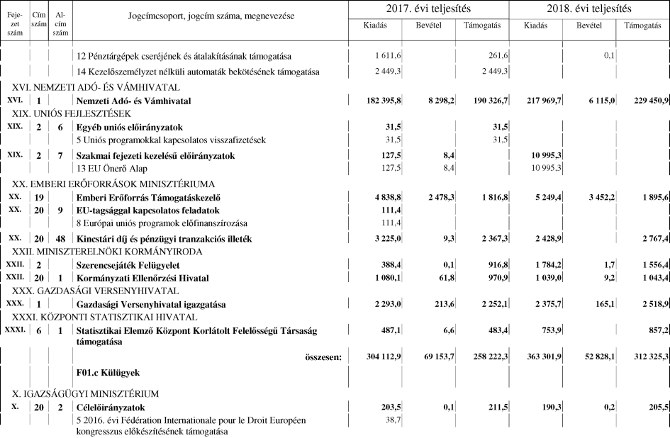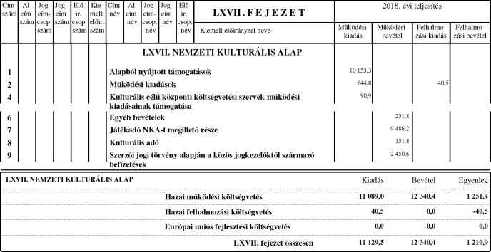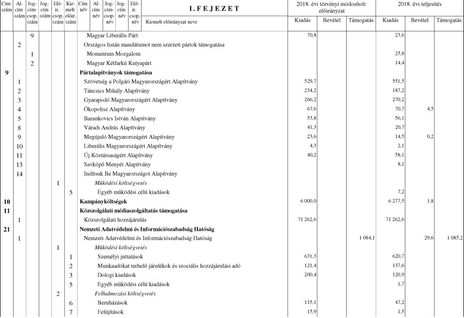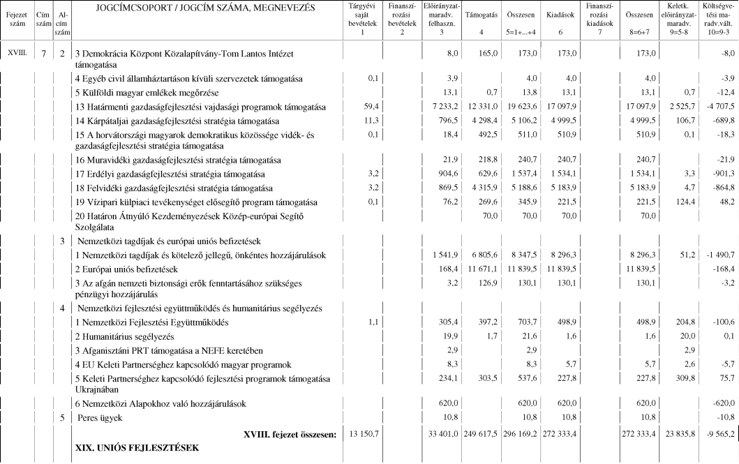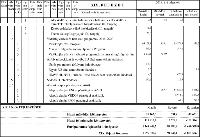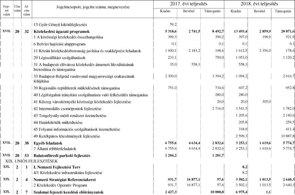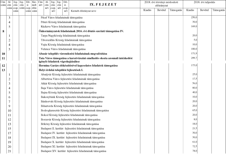 2019. évi ... törvény a Magyarország 2018. évi központi költségvetéséről szóló 2017. évi C. törvény végrehajtásáról