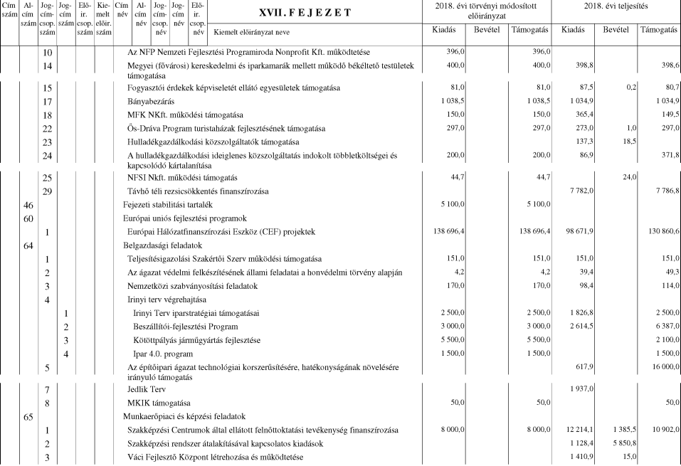 T/7556. számú törvényjavaslat indokolással - a Magyarország 2018. évi központi költségvetéséről szóló 2017. évi C. törvény végrehajtásáról